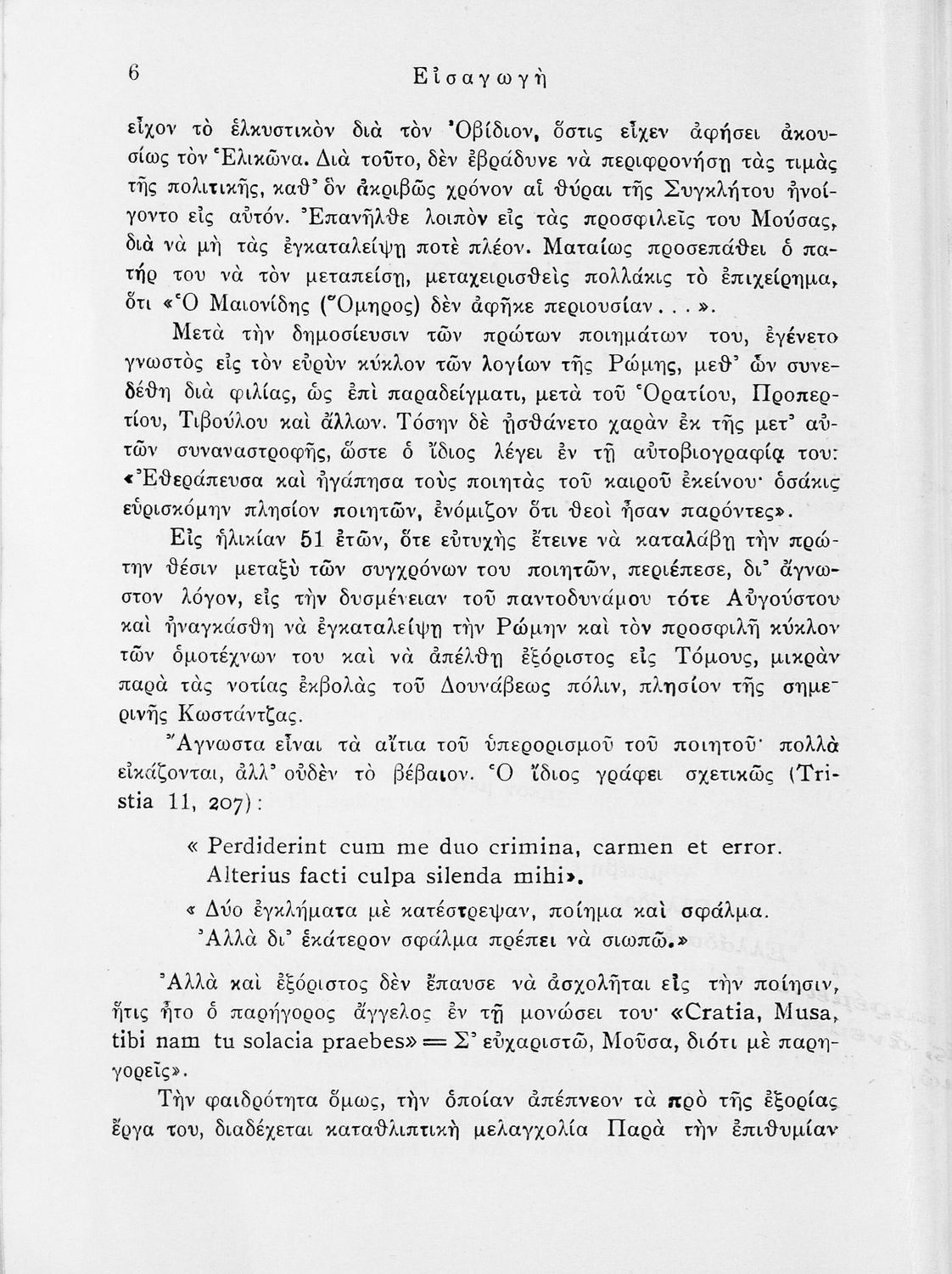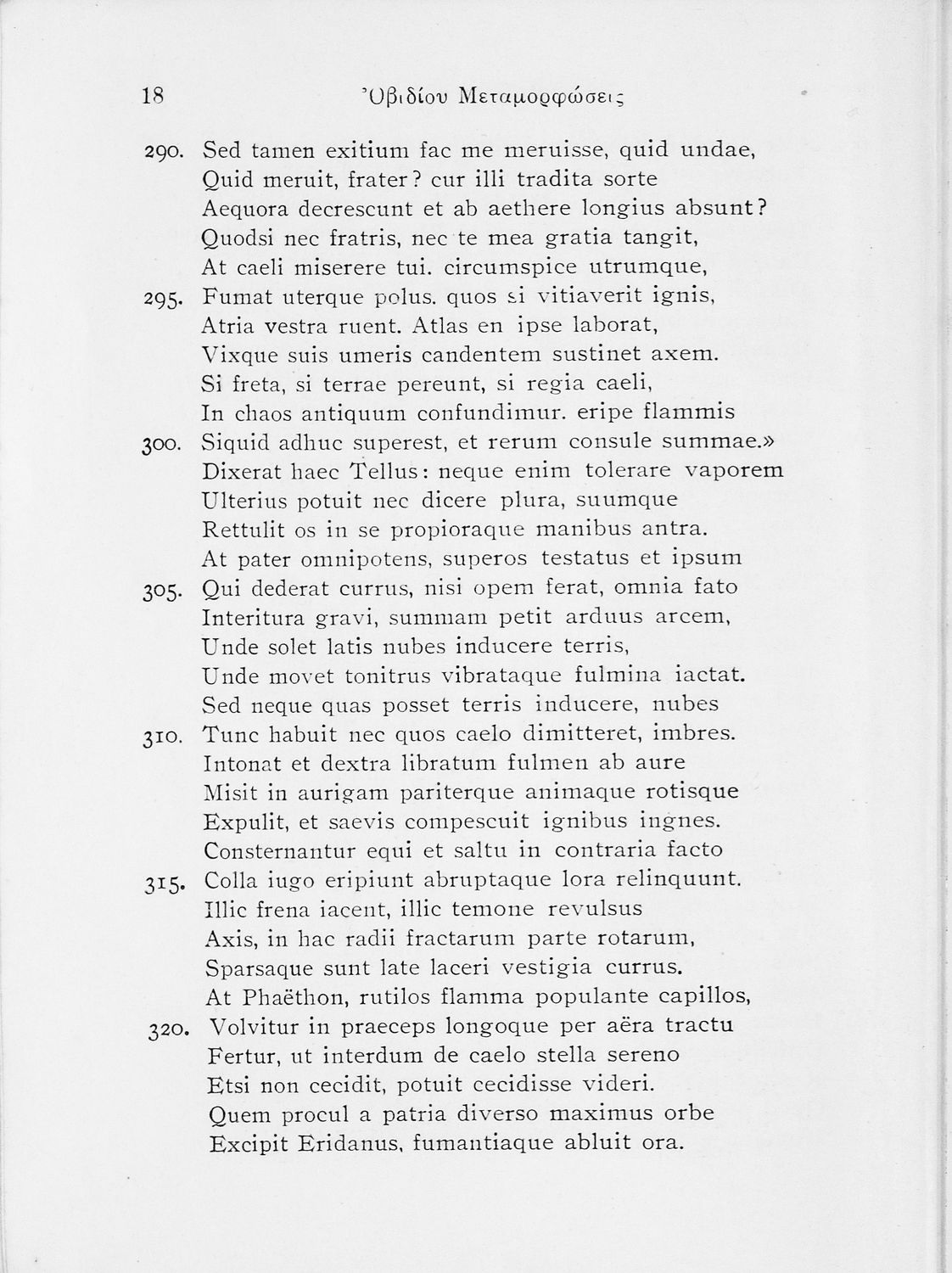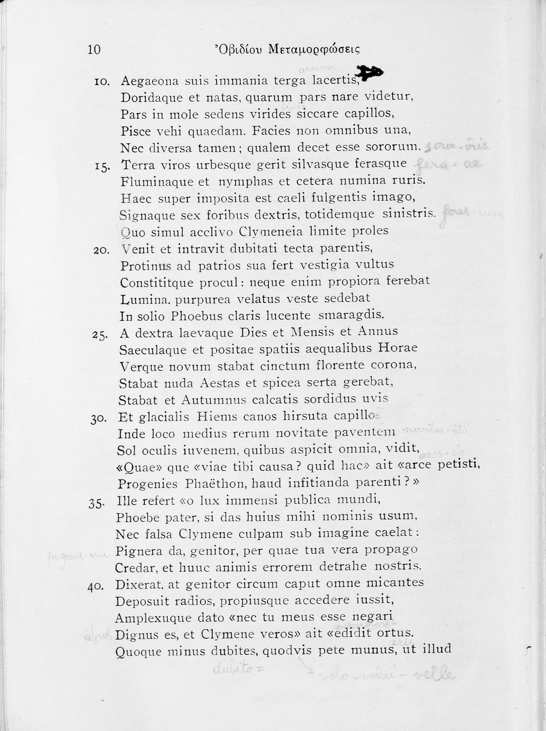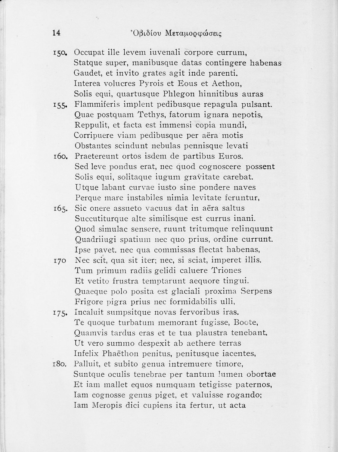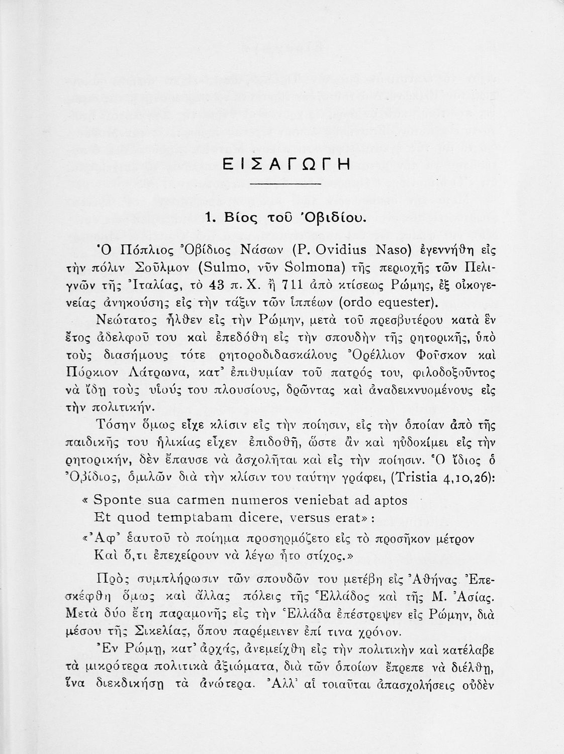 Σχολικό εγχειρίδιο Λατινικών για την Ε΄ Γυμνασίου παλαιού τύπου και την ΣΤ΄ Γυμνασίου νέου τύπου που περιέχει βιογραφικό σημείωμα του Οβίδιου, εισαγωγικά σχόλια, αποσπάσματα από τις Μεταμορφώσεις και ερμηνευτικές σημειώσεις.
