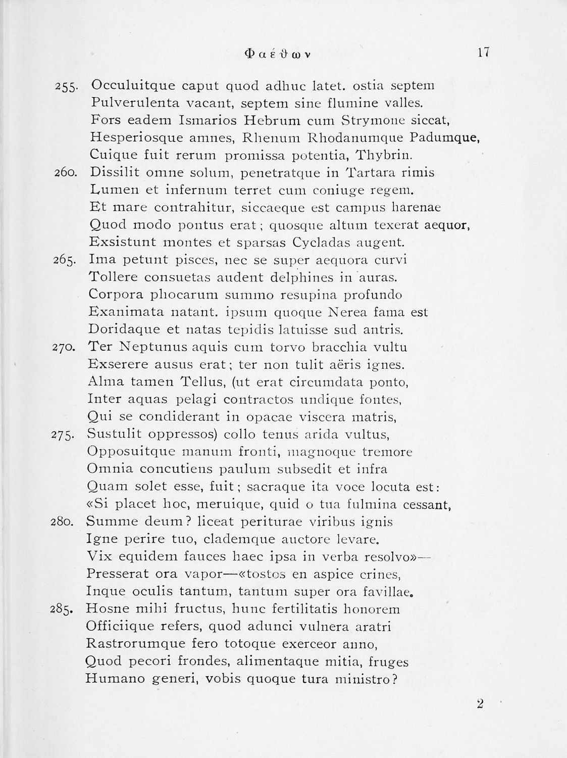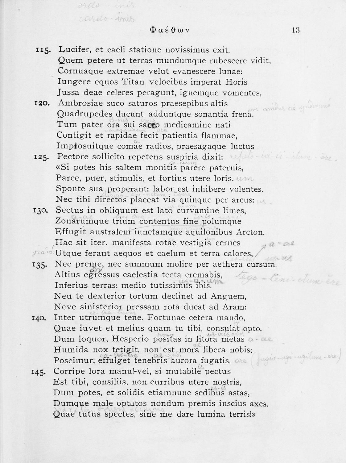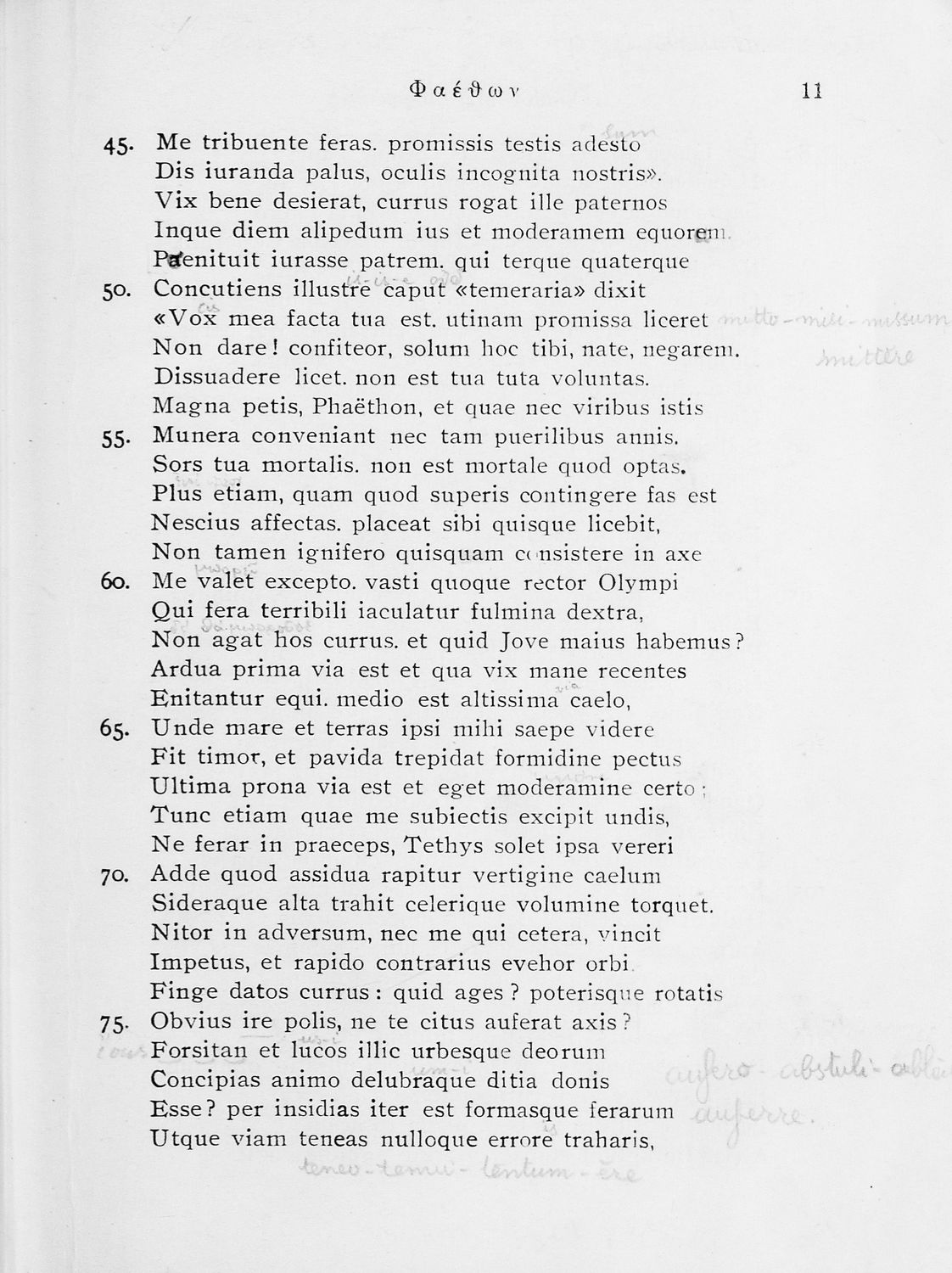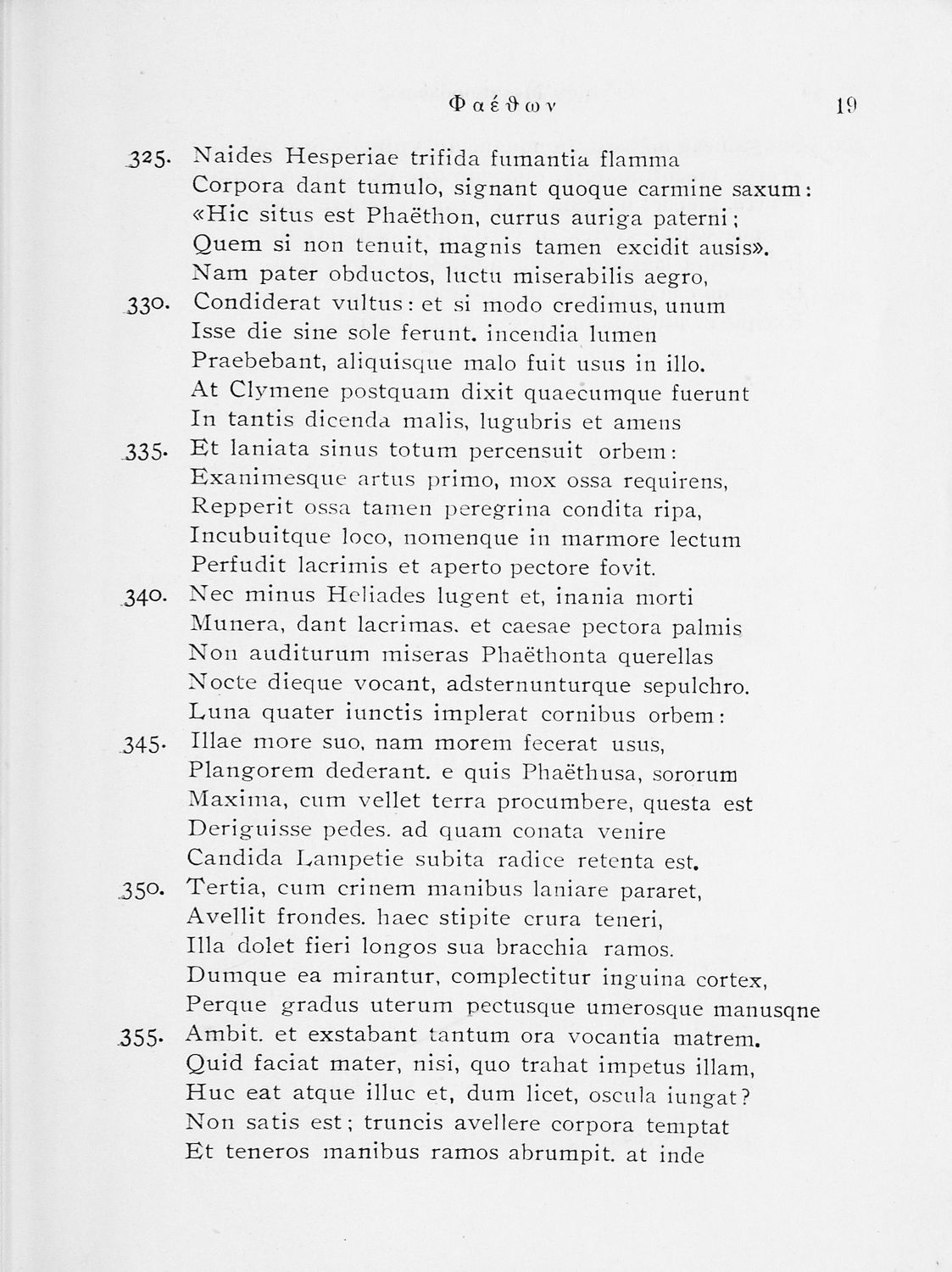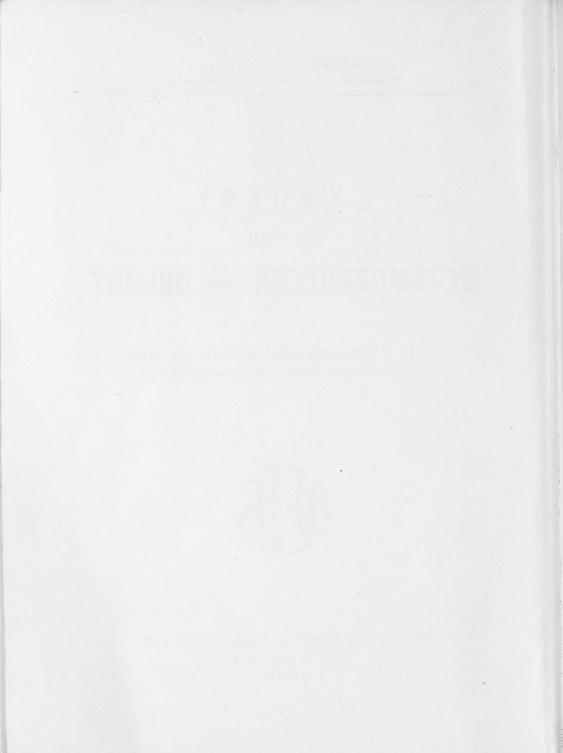 Σχολικό εγχειρίδιο Λατινικών για την Ε΄ Γυμνασίου παλαιού τύπου και την ΣΤ΄ Γυμνασίου νέου τύπου που περιέχει βιογραφικό σημείωμα του Οβίδιου, εισαγωγικά σχόλια, αποσπάσματα από τις Μεταμορφώσεις και ερμηνευτικές σημειώσεις.
