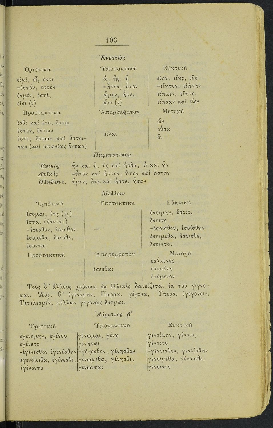 Μαθητικό βοήθημα Αρχαίων Ελληνικών για τα Ελληνικά Σχολεία, Παρθεναγωγεία και Γυμνάσια που περιλαμβάνει γραμματική της αρχαίας ελληνικής και κατάλογο ανωμάλων ρημάτων.