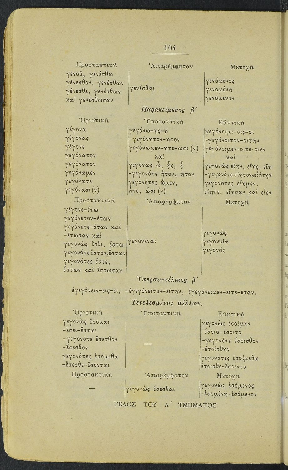 Μαθητικό βοήθημα Αρχαίων Ελληνικών Γυμνασίου, Ελληνικού Σχολείου και Παρθεναγωγείου που περιέχει τα ανώμαλα ρήματα της αττικής διαλέκτου και γραμματικές σημειώσεις.