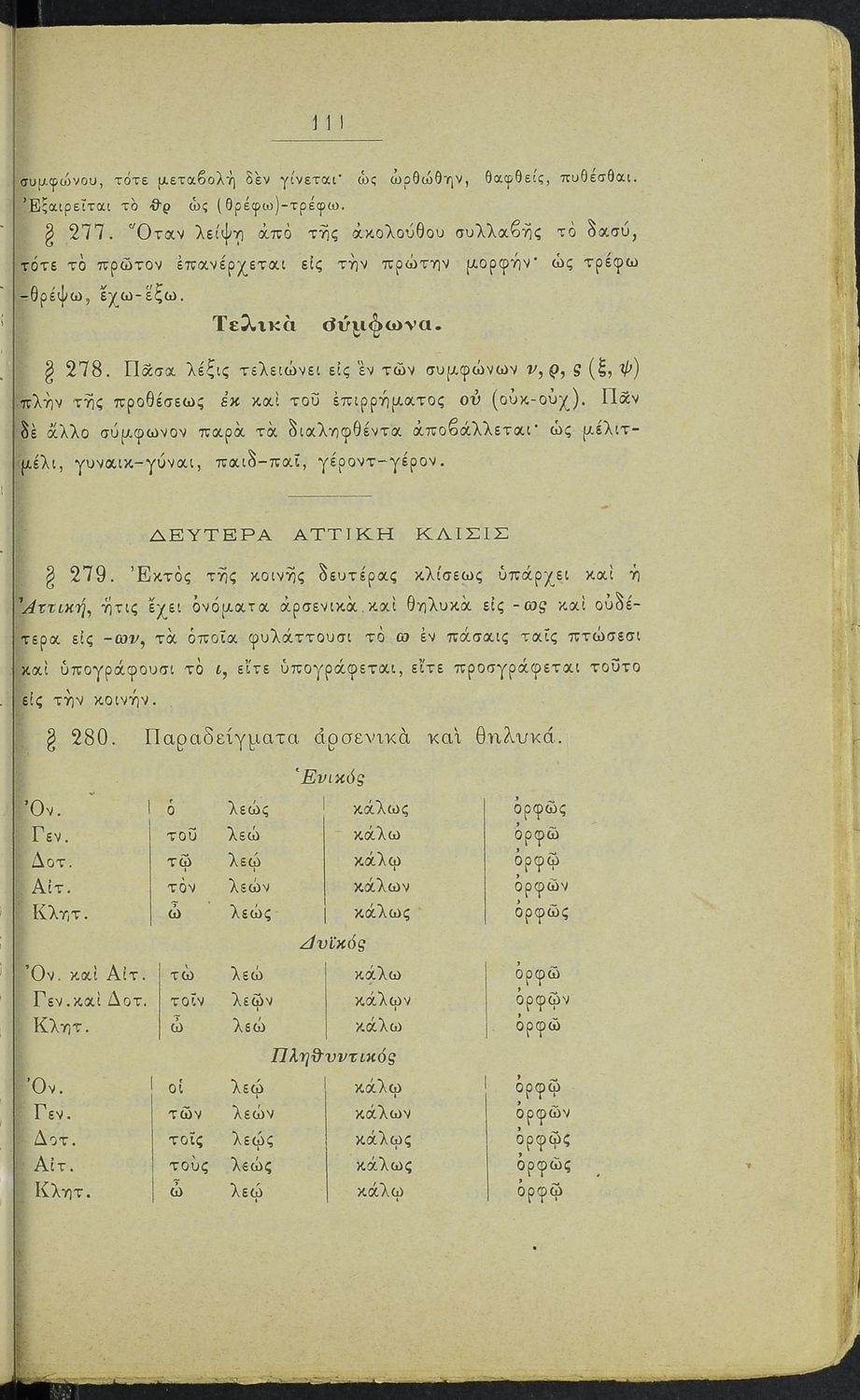 Σχολικό εγχειρίδιο Αρχαίων Ελληνικών για τα Ελληνικά Σχολεία, Παρθεναγωγεία και Γυμνάσια που περιέχει τους κανόνες γραμματικής και είναι χωρισμένο σε φθογγολογικό, τυπολογικό και ετυμολογικό μέρος.