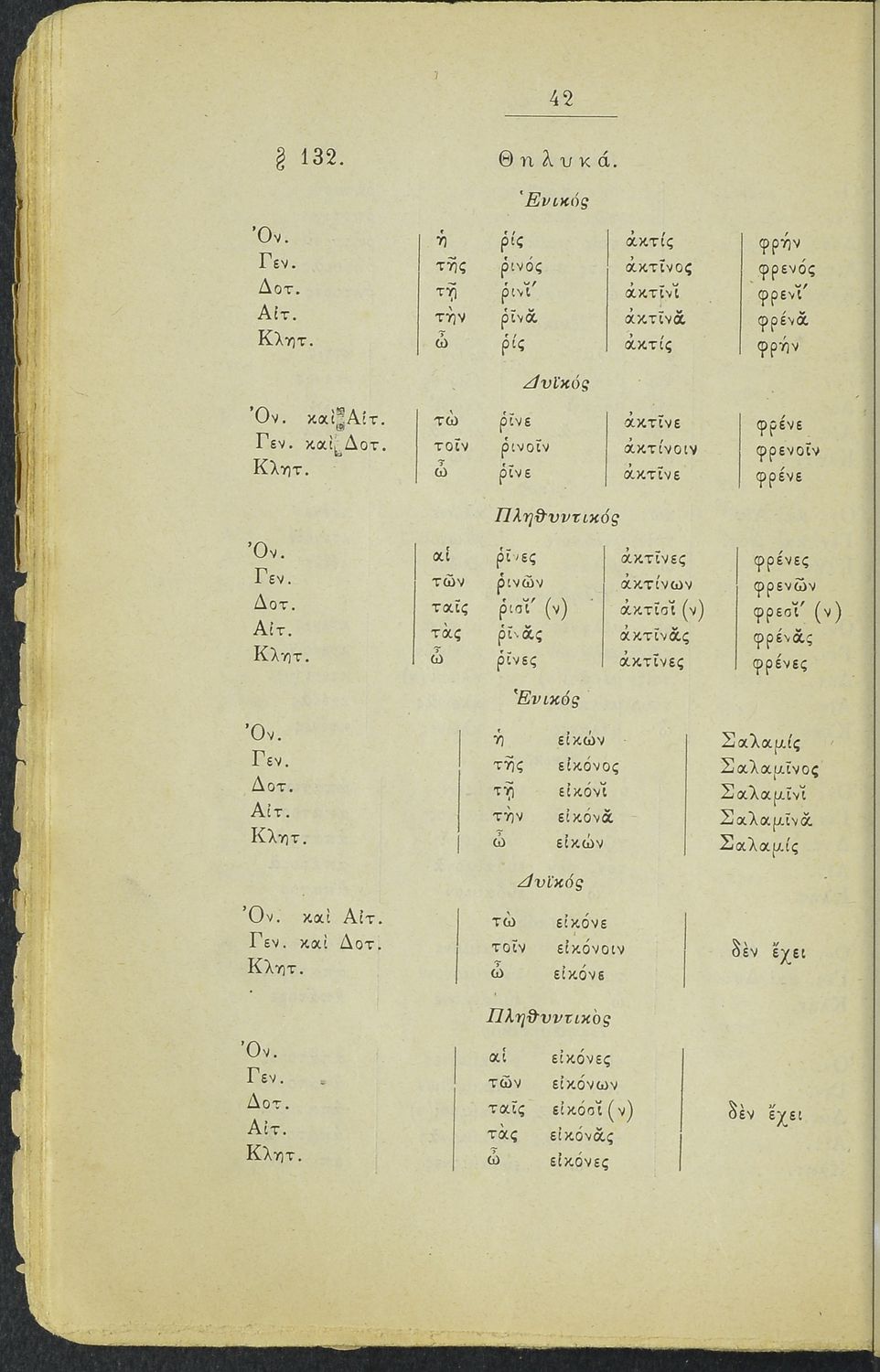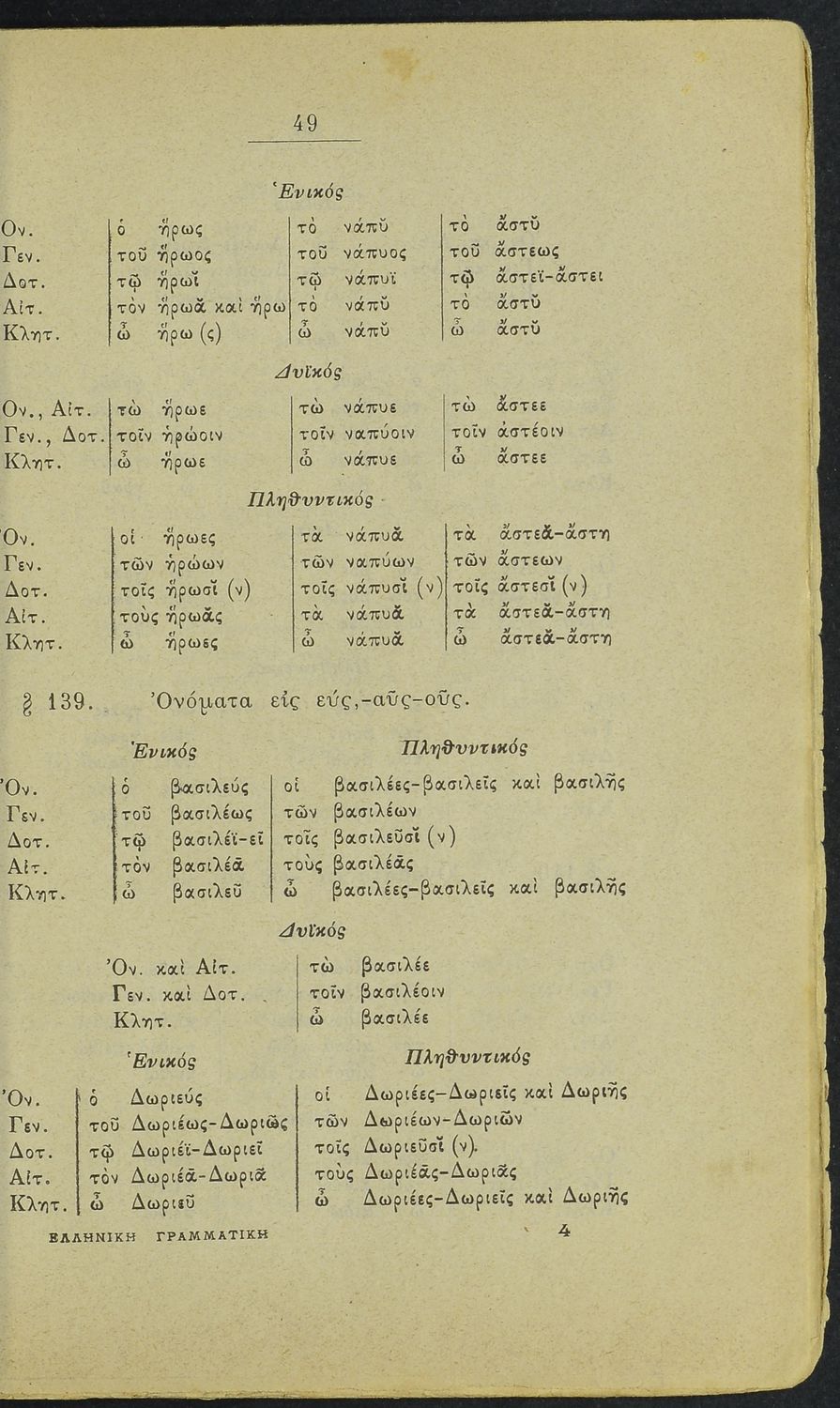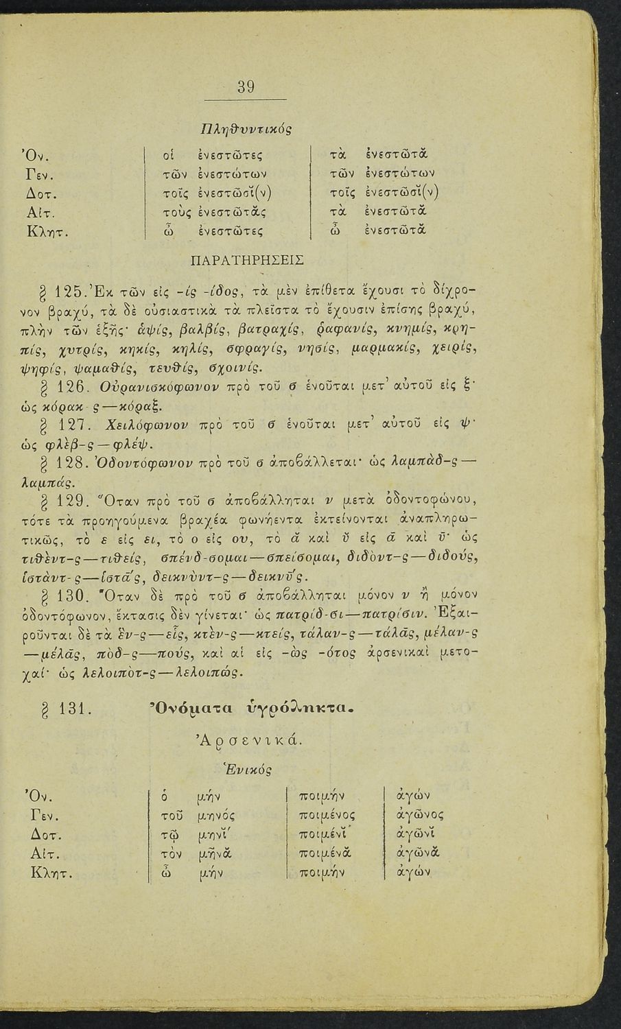 Σχολικό εγχειρίδιο Αρχαίων Ελληνικών για τα Ελληνικά Σχολεία και Παρθεναγωγεία που περιέχει τους κανόνες γραμματικής και είναι χωρισμένο σε φθογγολογικό, τυπολογικό και ετυμολογικό μέρος.