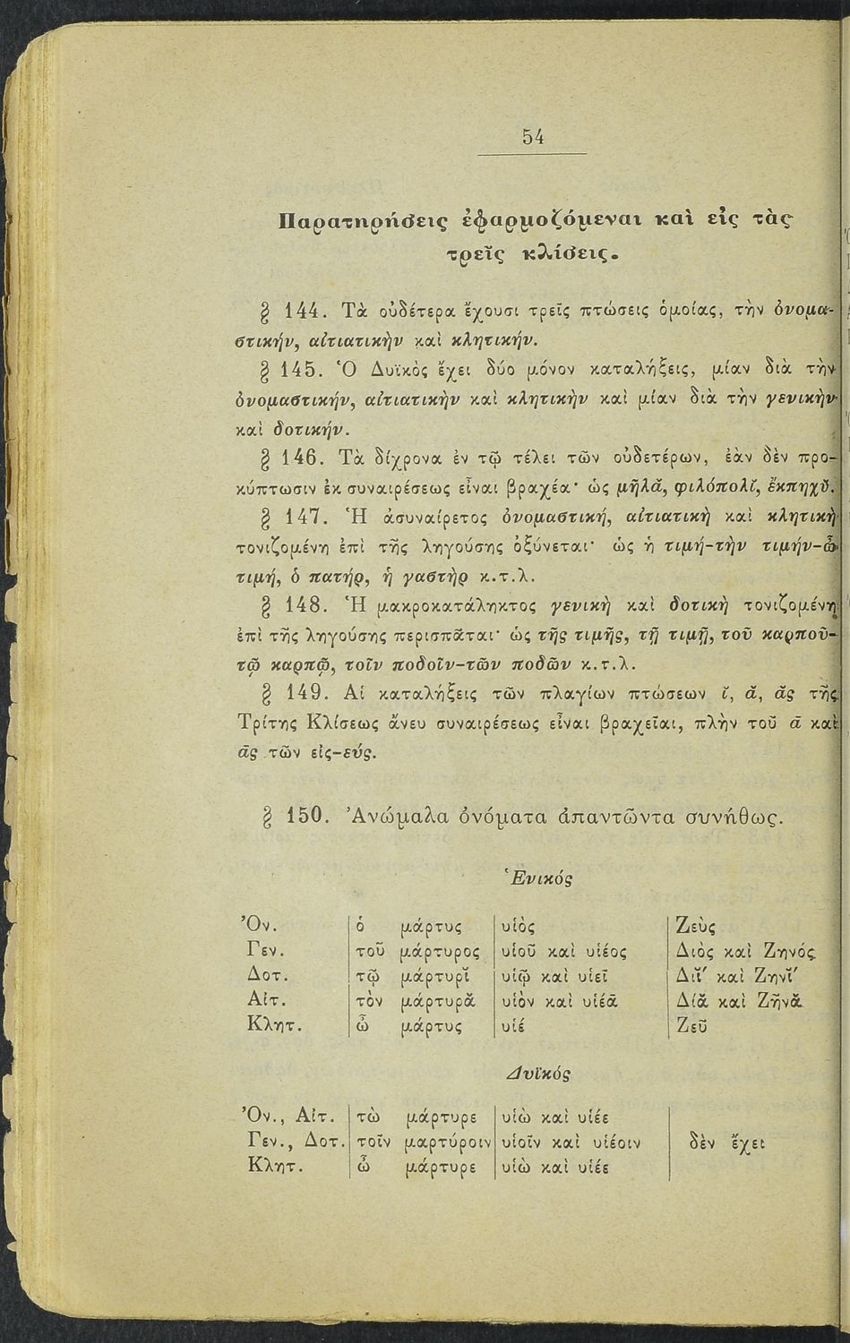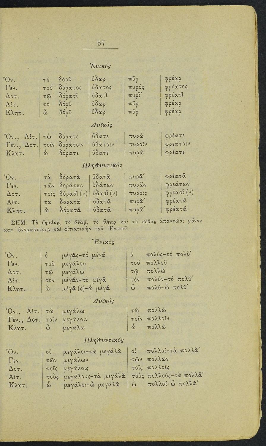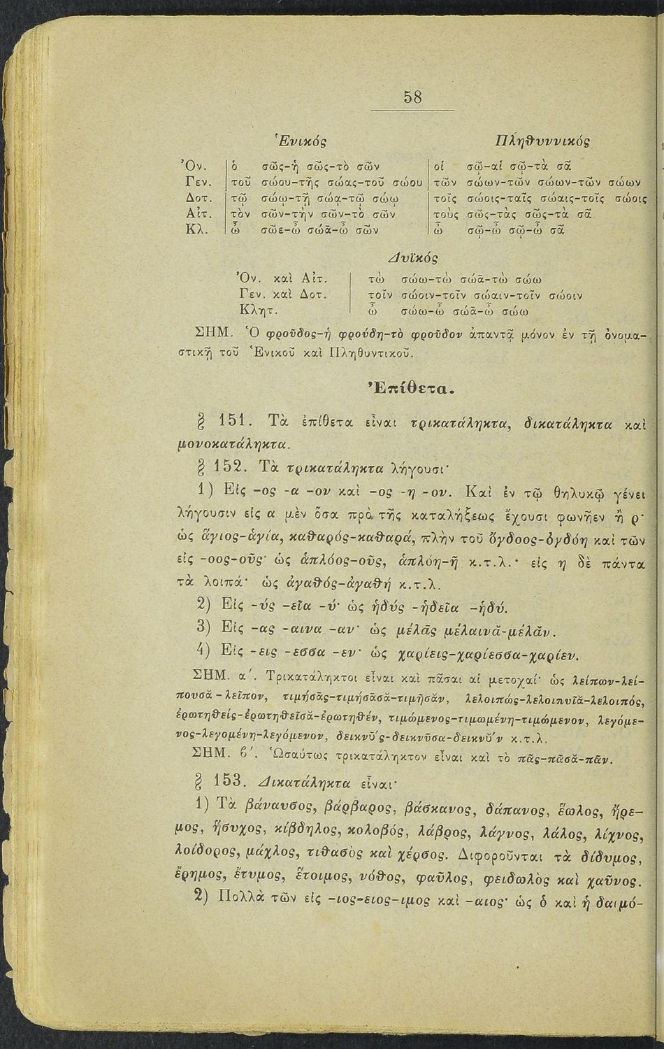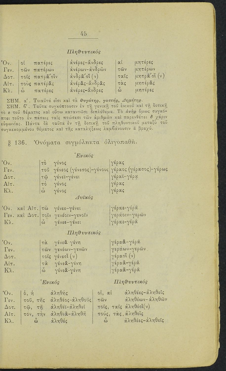 Σχολικό εγχειρίδιο Αρχαίων Ελληνικών για τα Ελληνικά Σχολεία, Παρθεναγωγεία και Γυμνάσια που περιέχει τους κανόνες γραμματικής και είναι χωρισμένο σε φθογγολογικό, τυπολογικό και ετυμολογικό μέρος.