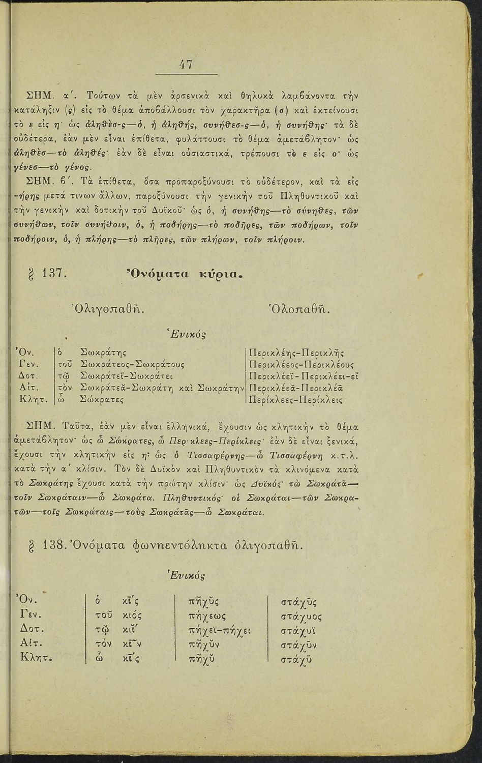 Σχολικό εγχειρίδιο Αρχαίων Ελληνικών για τα Ελληνικά Σχολεία και Παρθεναγωγεία που περιλαμβάνει κανόνες της γραμματικής της αρχαίας ελληνικής και είναι χωρισμένη στο φθογγολογικό και στο τυπολογικό μέρος.