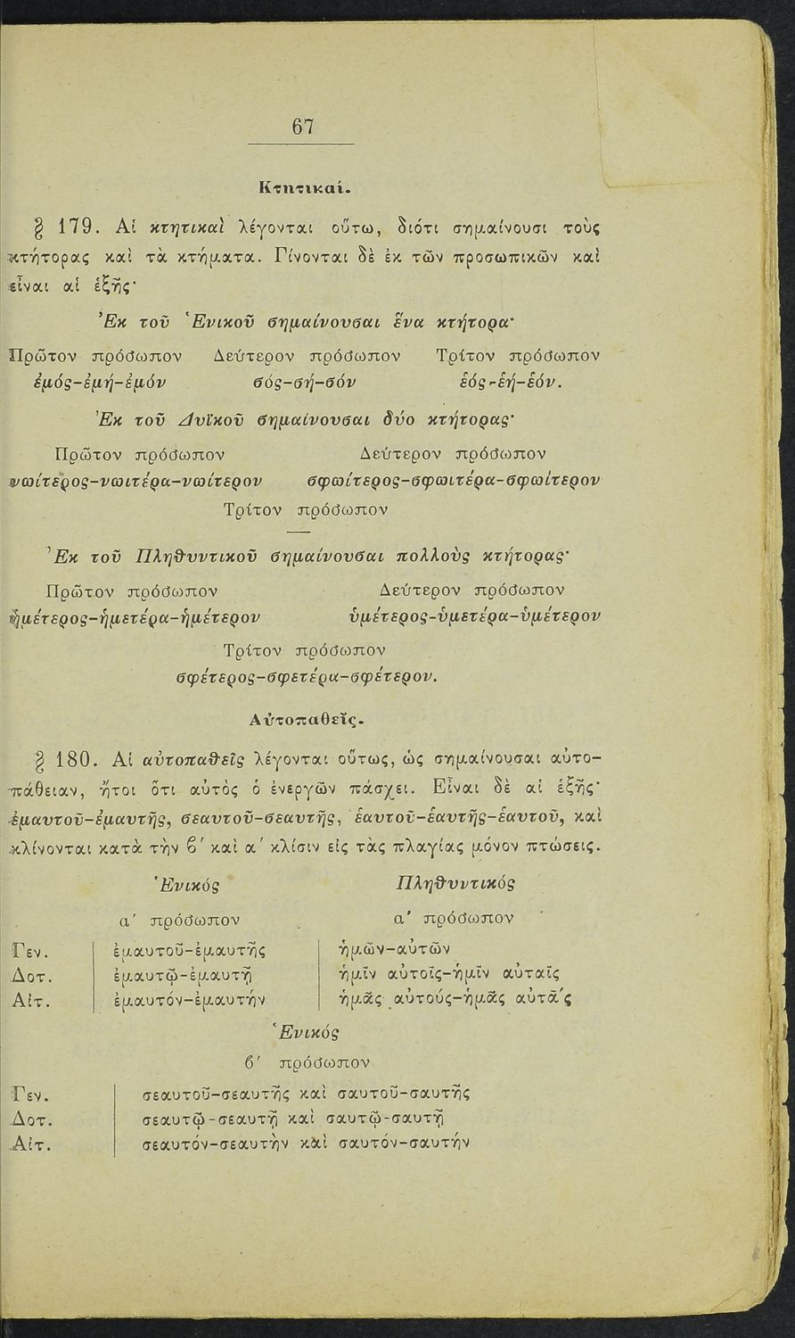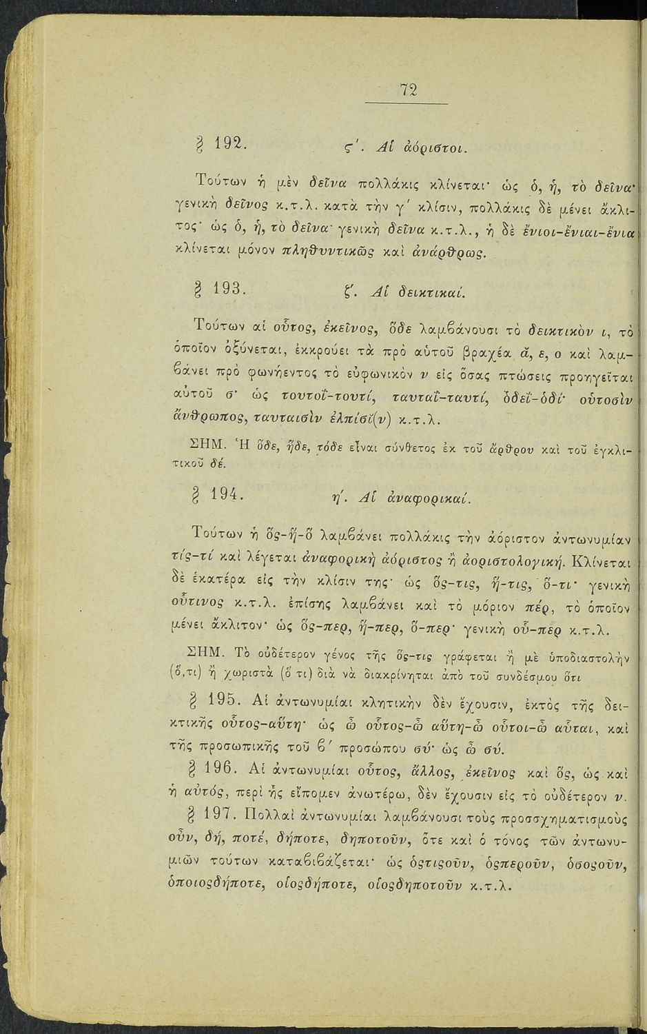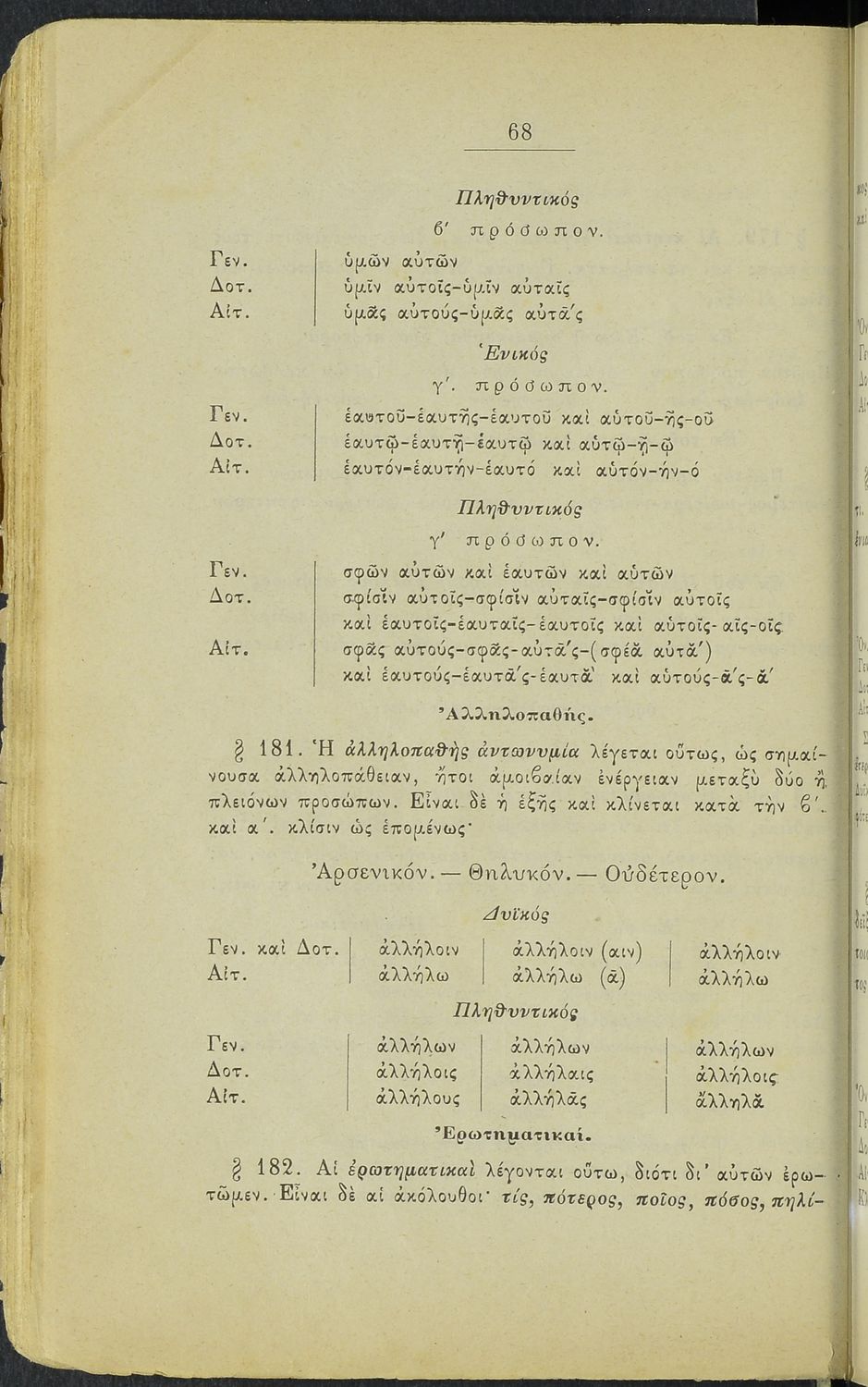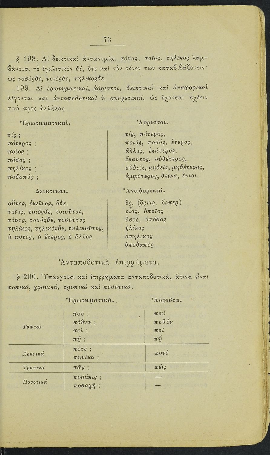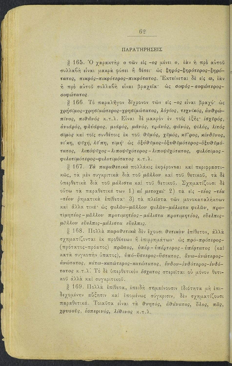 Σχολικό εγχειρίδιο Αρχαίων Ελληνικών για τα Ελληνικά Σχολεία και Παρθεναγωγεία που περιέχει τους κανόνες γραμματικής και είναι χωρισμένο σε φθογγολογικό, τυπολογικό και ετυμολογικό μέρος.