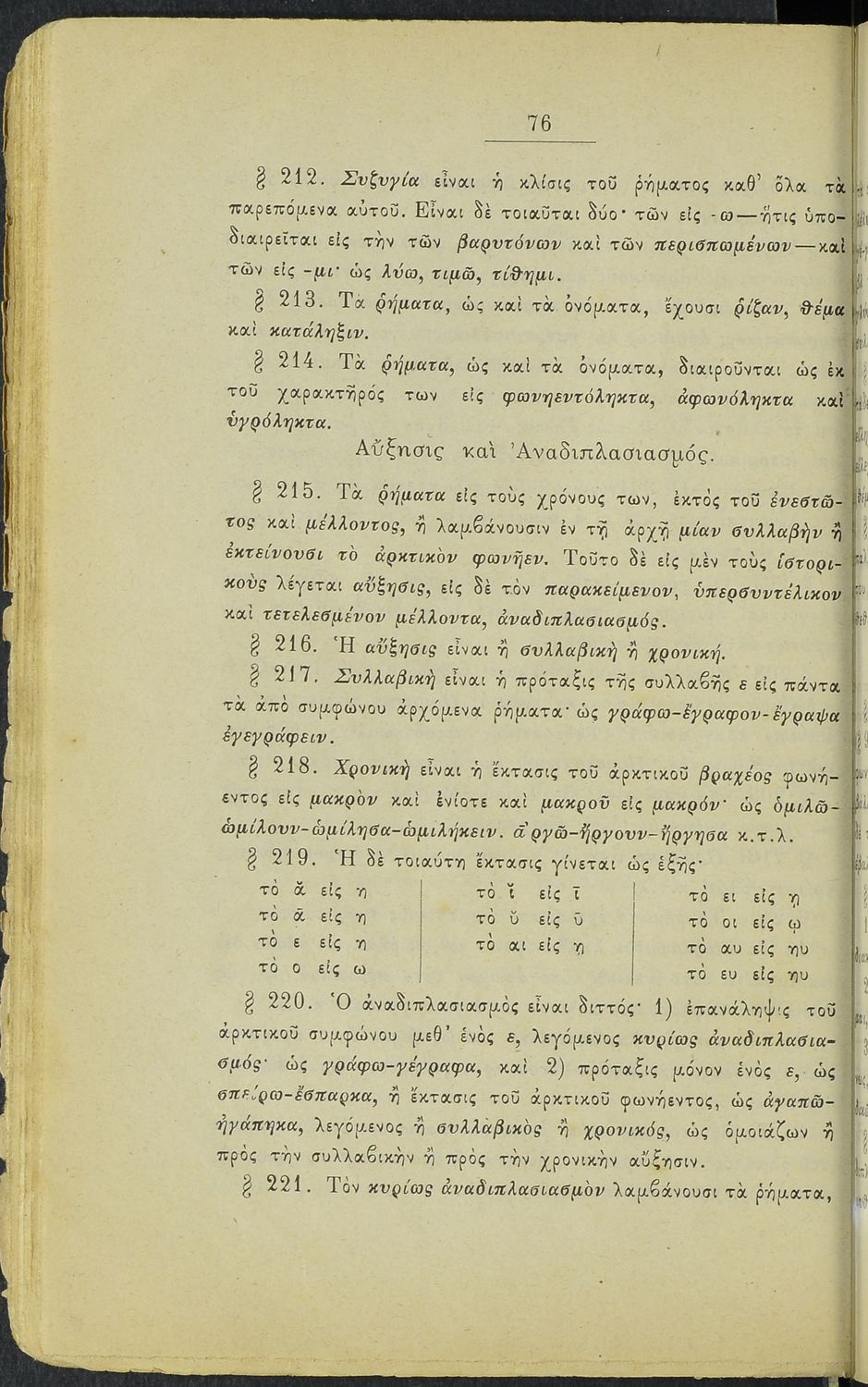 Σχολικό εγχειρίδιο Αρχαίων Ελληνικών για τα Ελληνικά Σχολεία και Παρθεναγωγεία που περιλαμβάνει κανόνες της γραμματικής της αρχαίας ελληνικής και είναι χωρισμένη στο φθογγολογικό και στο τυπολογικό μέρος.