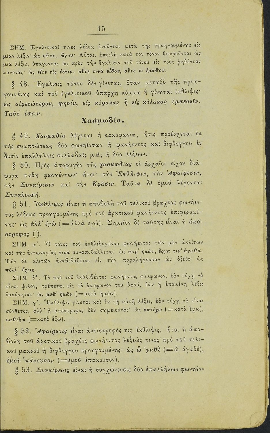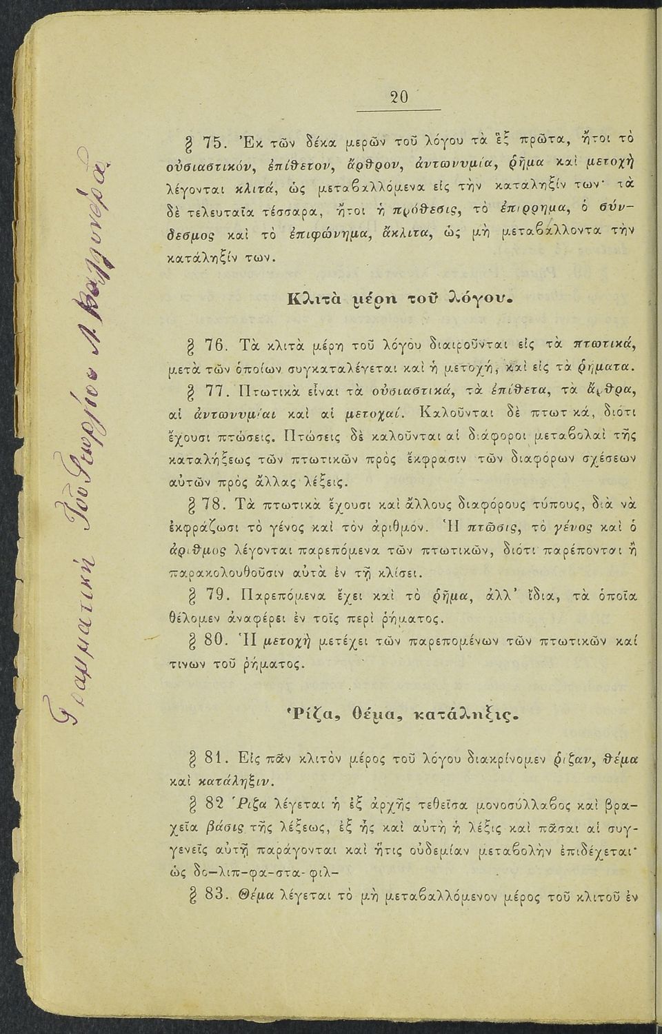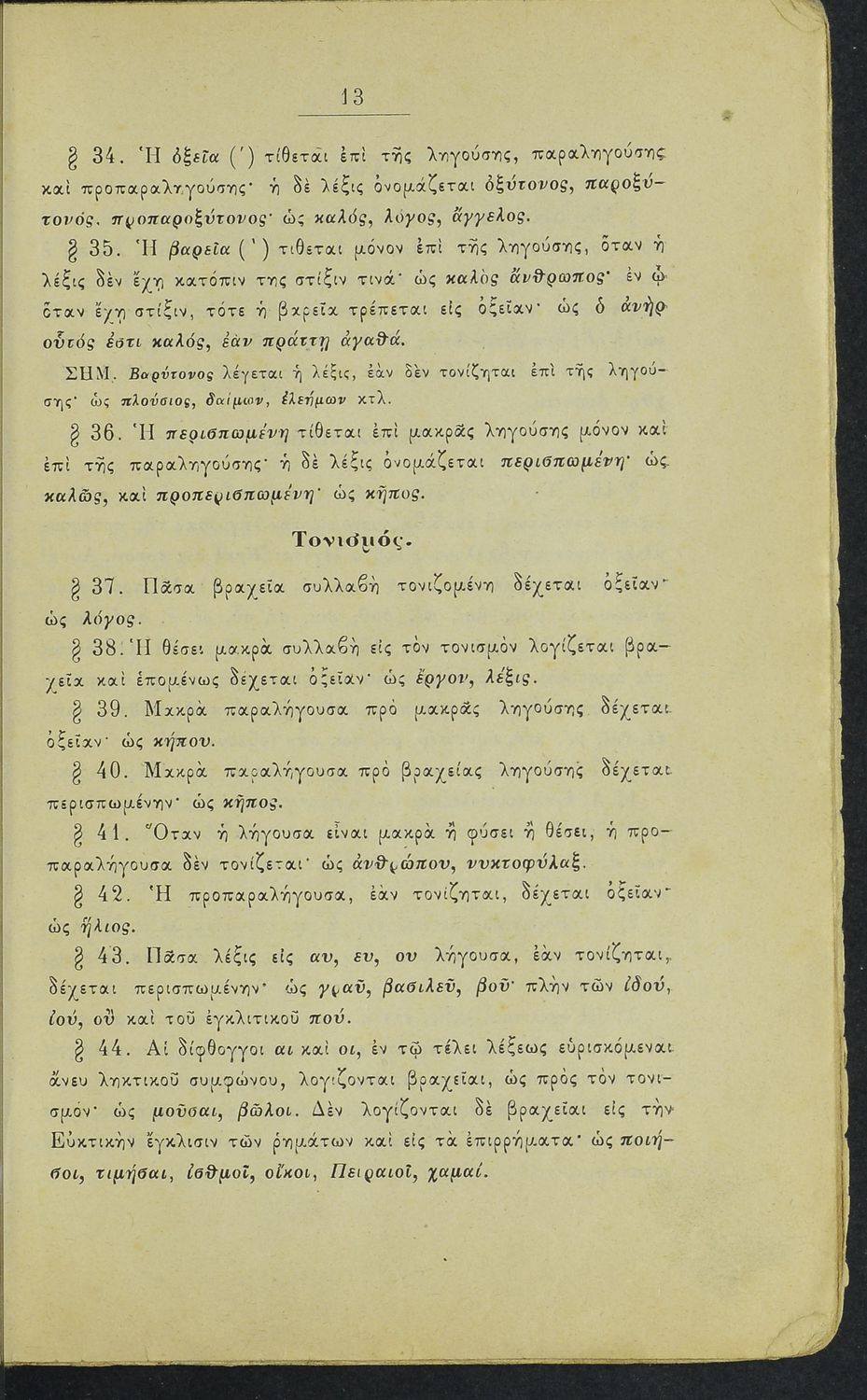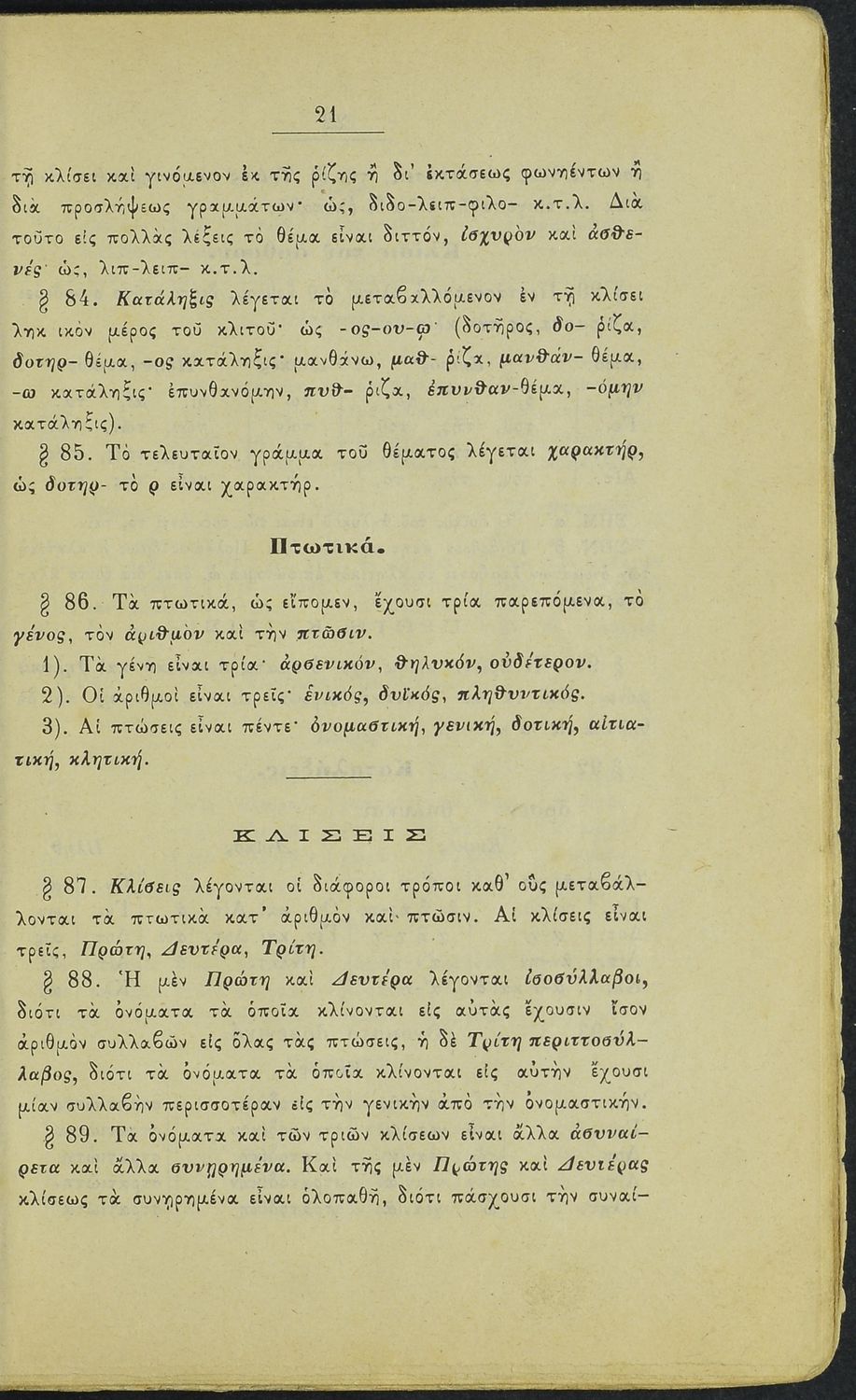 Σχολικό εγχειρίδιο Αρχαίων Ελληνικών για τα Ελληνικά Σχολεία και Παρθεναγωγεία που περιέχει τους κανόνες γραμματικής και είναι χωρισμένο σε φθογγολογικό, τυπολογικό και ετυμολογικό μέρος.