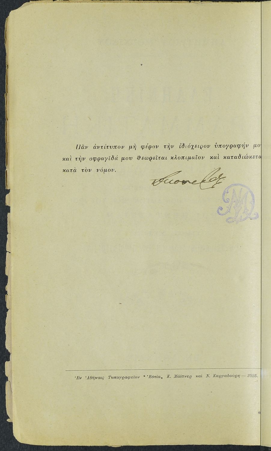 Τίτλος: Ελληνική Γραμματική της Αττικής Διαλέκτου η μόνη εγκριθείσα κατά τον τελευταίον διαγωνισμόν του 1901 επί πενταετίαν. Προς χρήσιν των Ελληνικών Σχολείων και Παρθεναγωγείων.