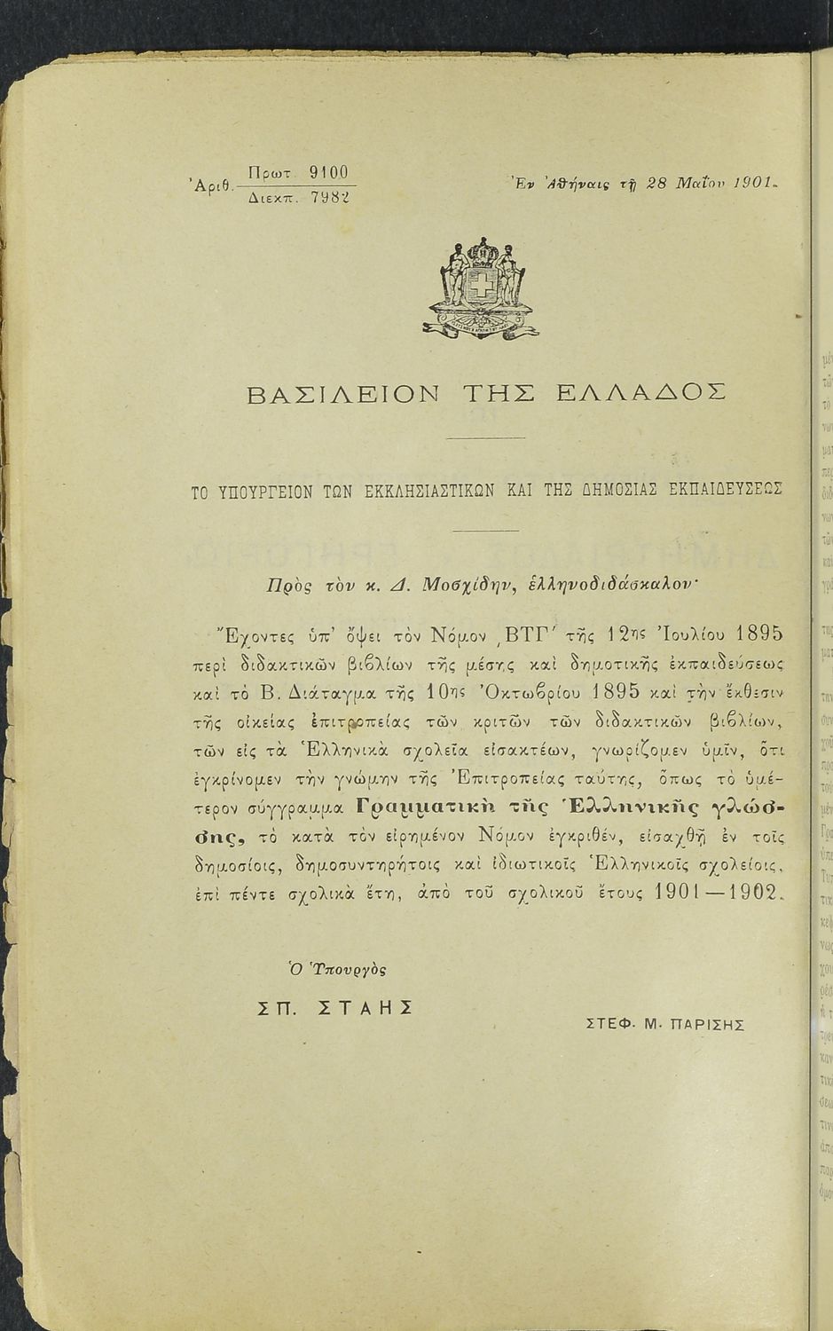 Υπουργική απόφαση / Σύμβαση: 9100/28-5-1901