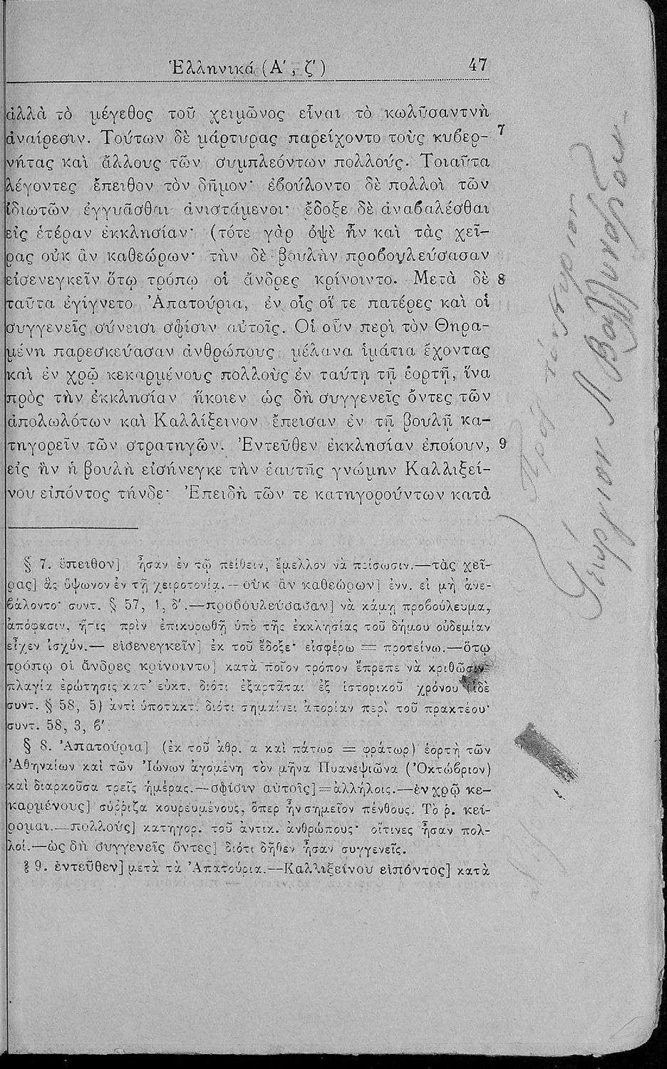 Μαθητικό βοήθημα Αρχαίων Ελληνικών για τα Ελληνικά Σχολεία και Παρθεναγωγεία που περιέχει αποσπάσματα από τα έργα του Ξενοφώντα Ελληνικά (βιβλία Α΄ έως Δ΄ ) σημειώσεις και ερμηνευτικά σχόλια.