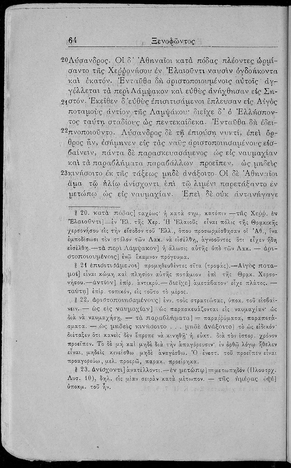 Σχολικό εγχειρίδιο Αρχαίων Ελληνικών για τα Ελληνικά Σχολεία, Γυμνάσια και Παρθεναγωγεία που περιλαμβάνει αποσπάσματα από το έργο του Ξενοφώντα Κύρου Ανάβασις, και λεξικογραφικές παρατηρήσεις.