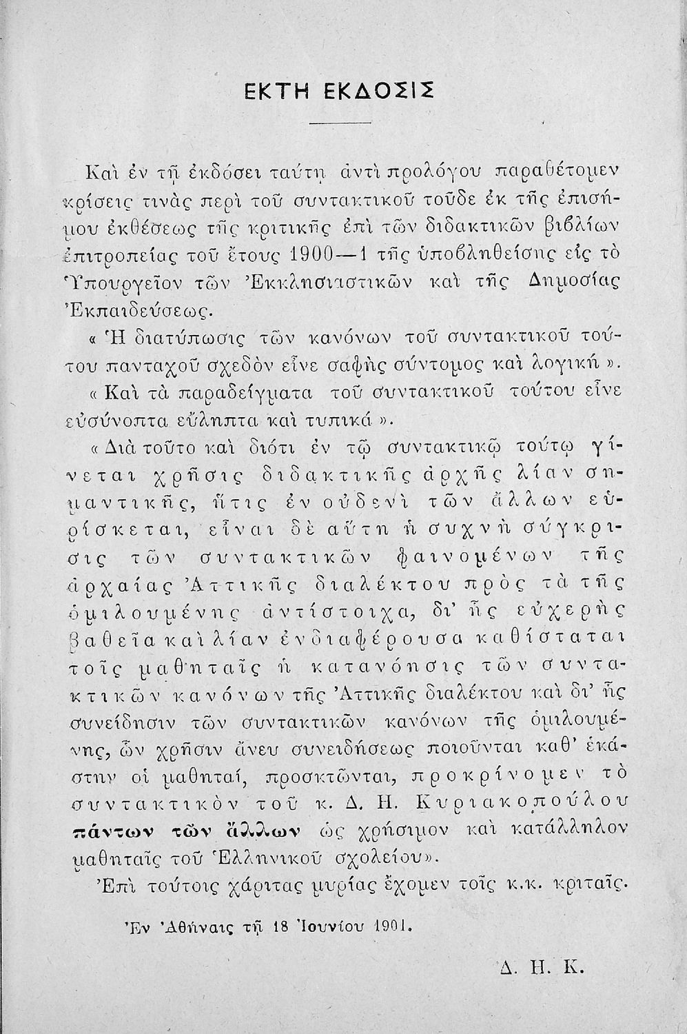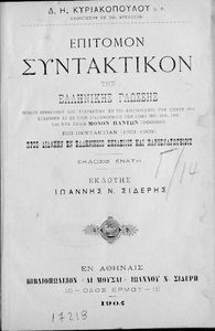 Επίτομον συντακτικόν της ελληνικής γλώσσης προς διδαχήν εν Ελληνικοίς Σχολείοις και Παρθεναγωγείοις