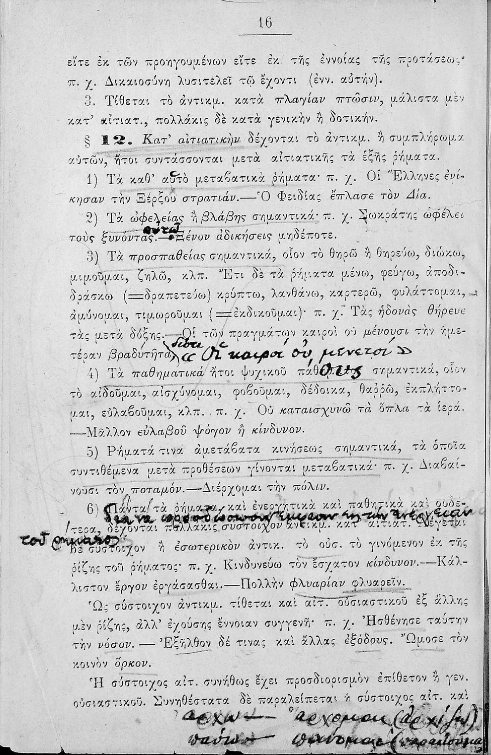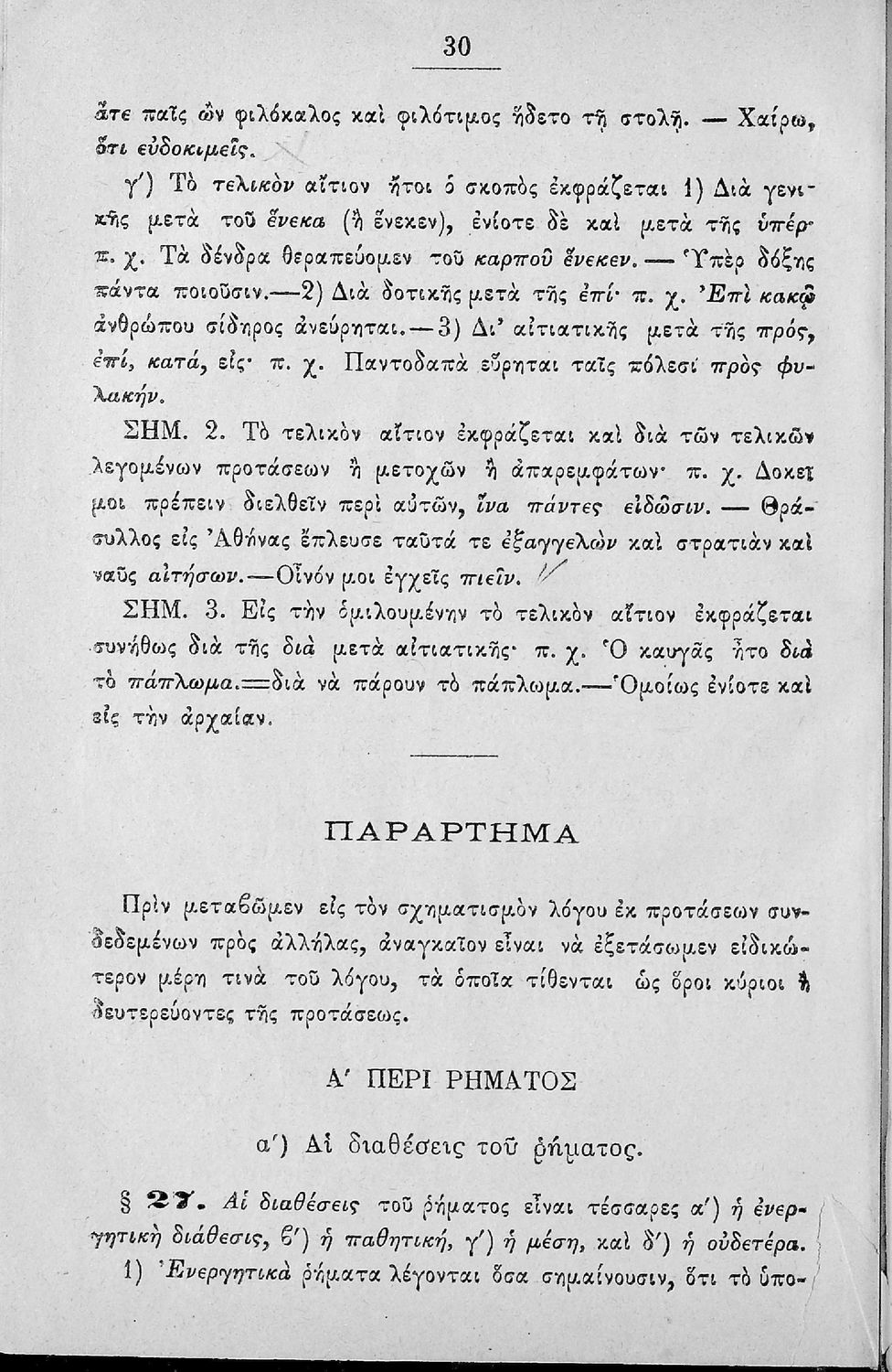 Σχολικό εγχειρίδιο Αρχαίων Ελληνικών για τους μαθητές των Ελληνικών Σχολείων και Παρθεναγωγείων που περιέχει τους συντακτικούς κανόνες.