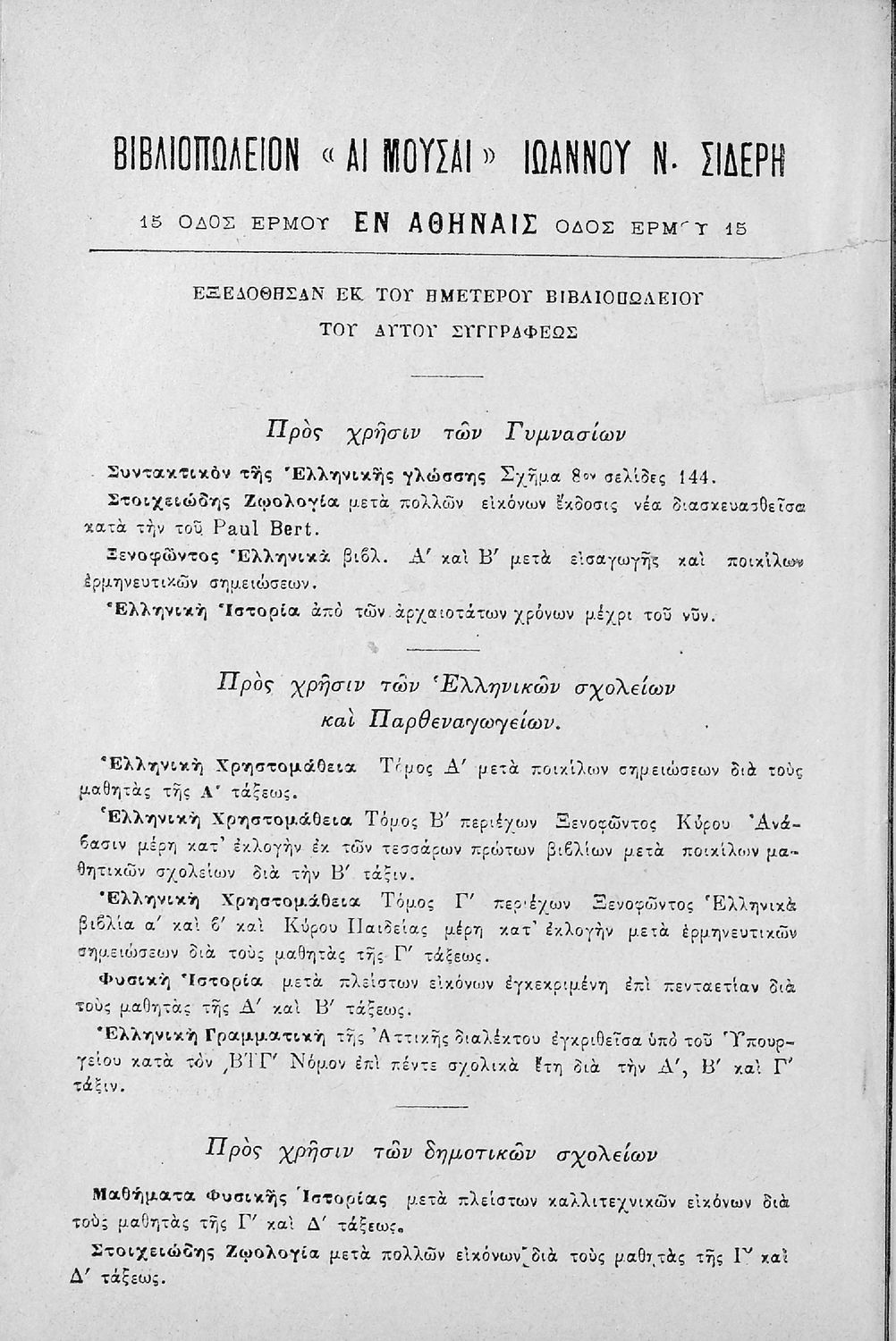 Εκδότης: Ιωάννης Ν. Σιδέρης