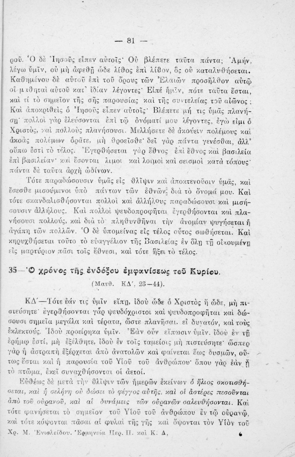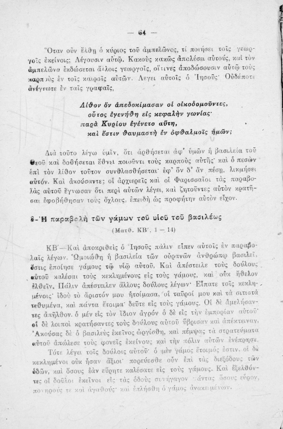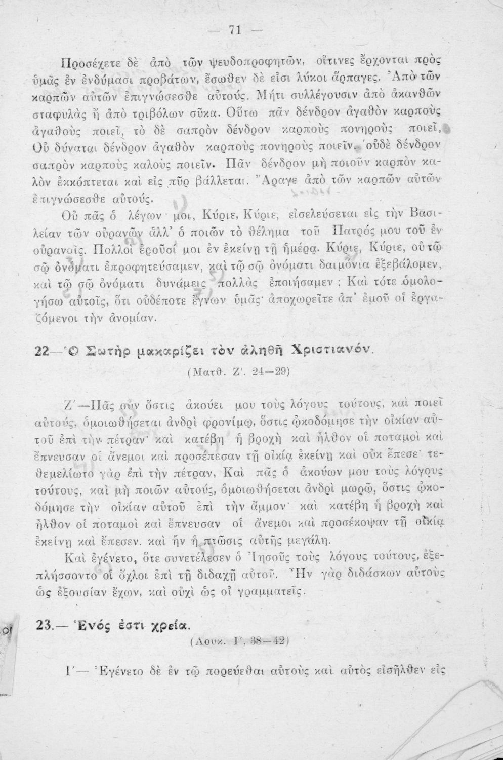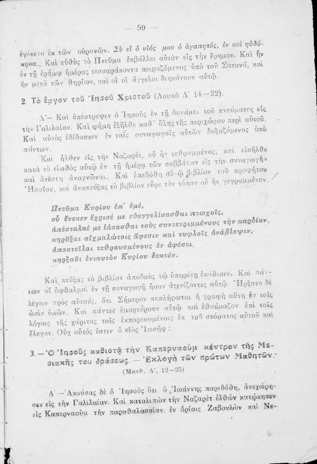Σχολικό εγχειρίδιο Θρησκευτικών για την Γ΄ Γυμνασίου, τα Διδασκαλεία και τα Ανώτερα Παρθεναγωγεία που περιέχει περικοπές από τα βιβλία της Καινής Διαθήκης και ερμηνευτικές σημειώσεις.