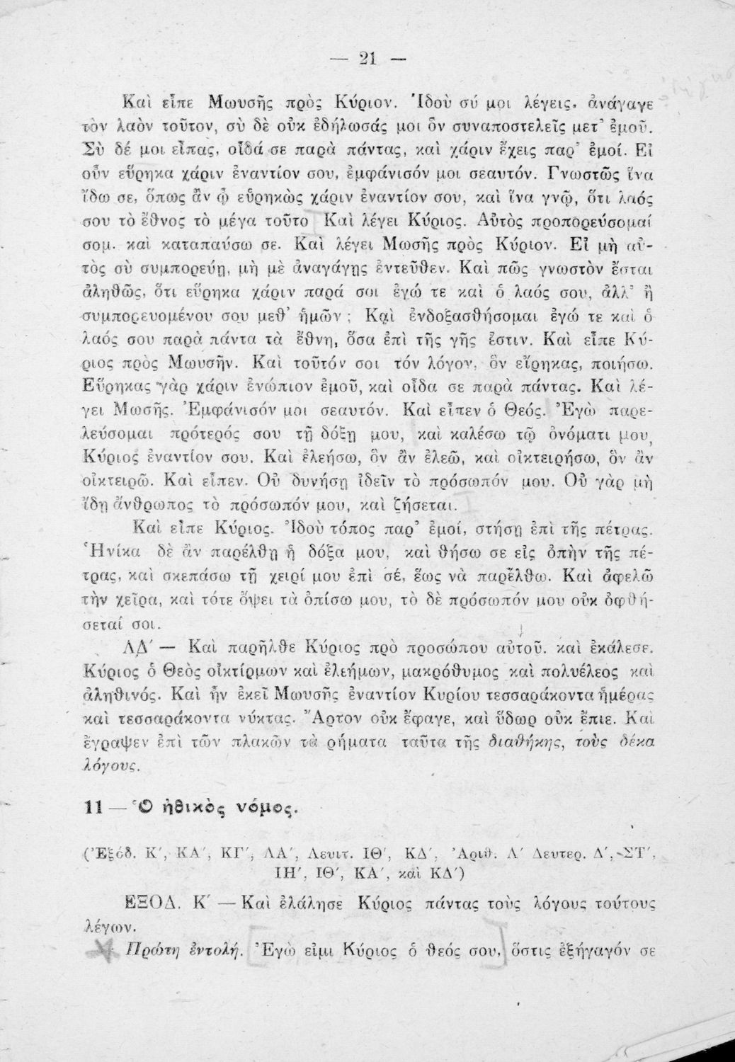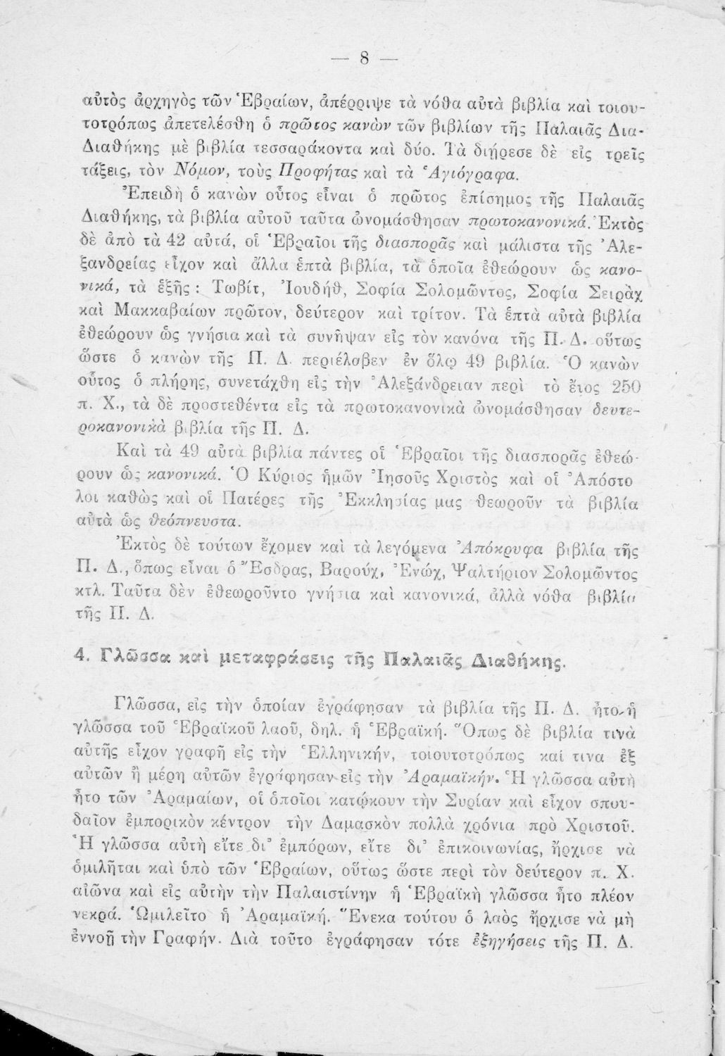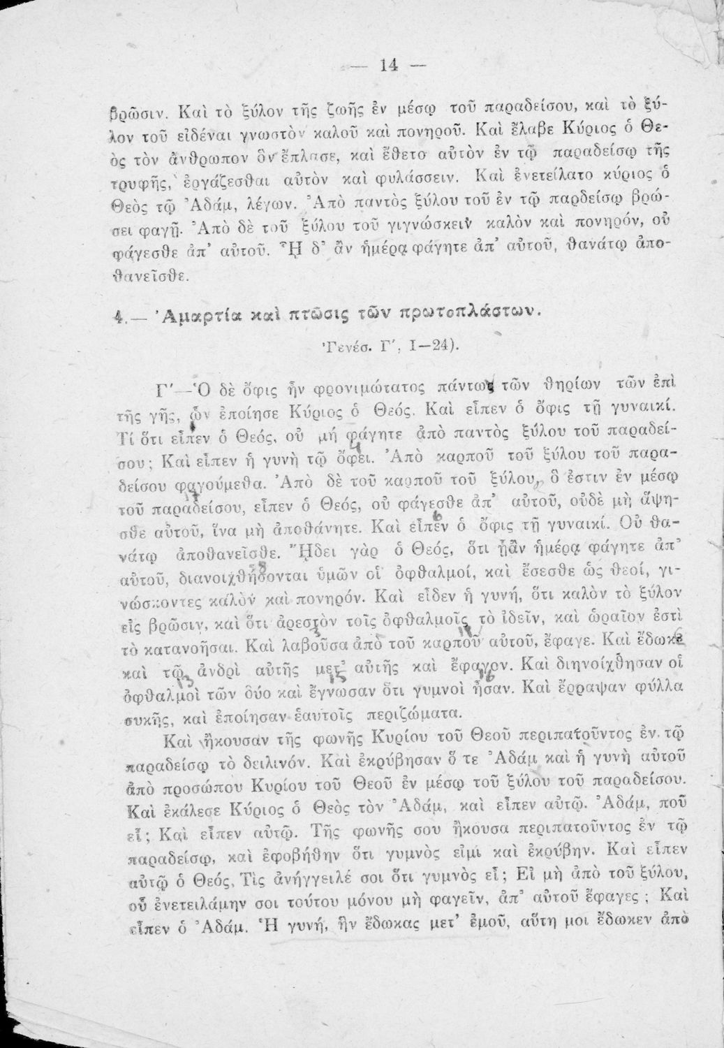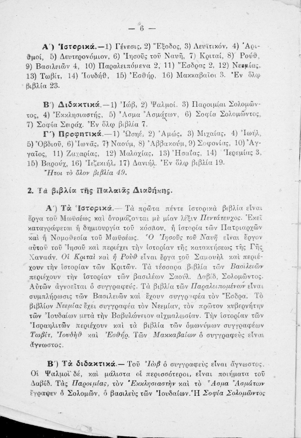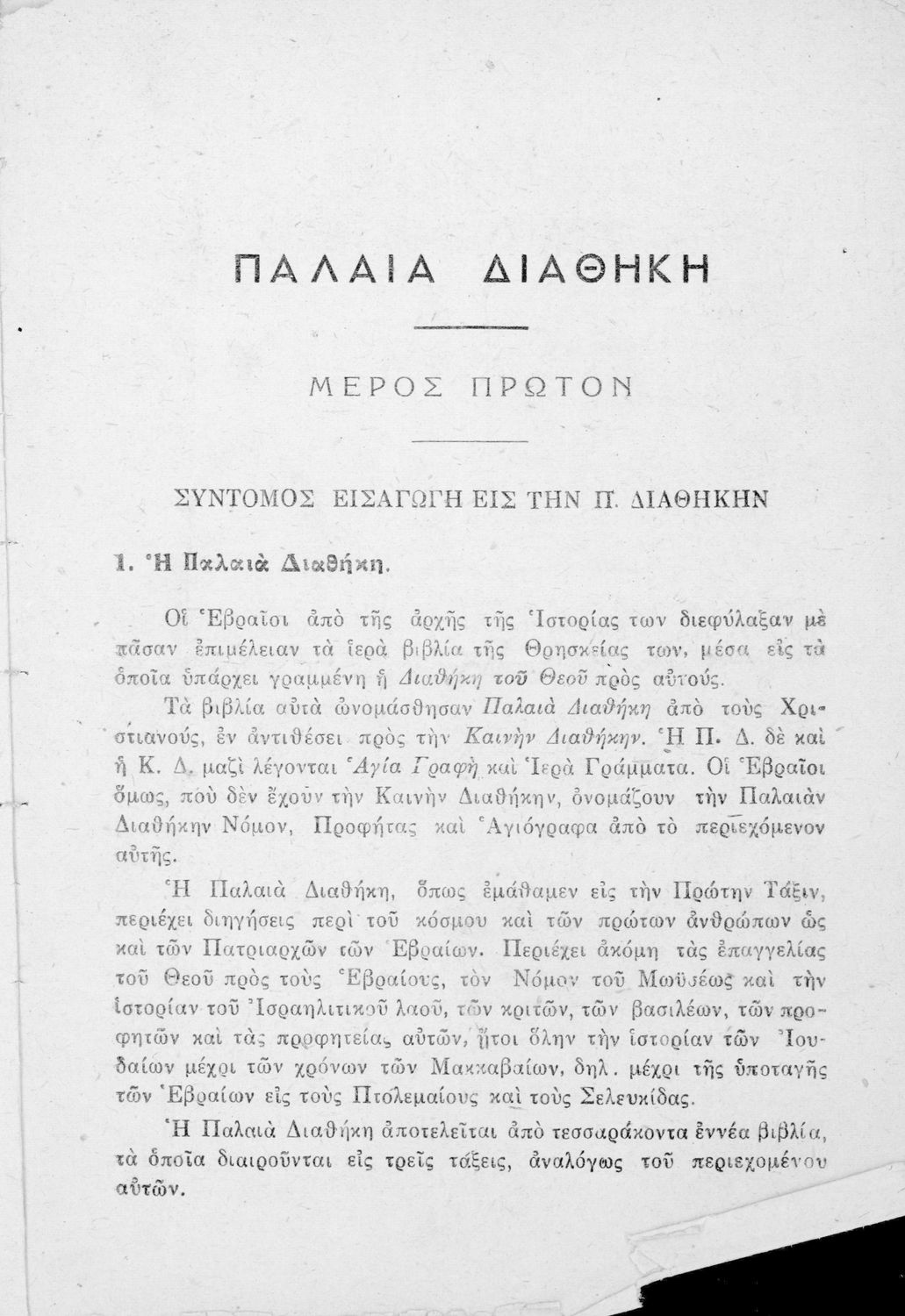 Βαθμίδα εκπαίδευσης: Δευτεροβάθμια Τάξη: Ε' Οκταταξίου Γυμνασίου / Γ' Εξαταξίου Γυμνασίου Μάθημα: Θρησκευτικά Γλώσσα: Καθαρεύουσα Παρουσίαση περιεχομένου: Σχολικό εγχειρίδιο Θρησκευτικών για την Ε΄ Οκταταξίου και Εξατάξιου Γυμνασίου που περιέχει εισαγωγικά σχόλια στα βιβλία της Παλαιάς και Καινής Διαθήκης, περικοπές, ερμηνευτικές και πραγματολογικές σημειώσεις |