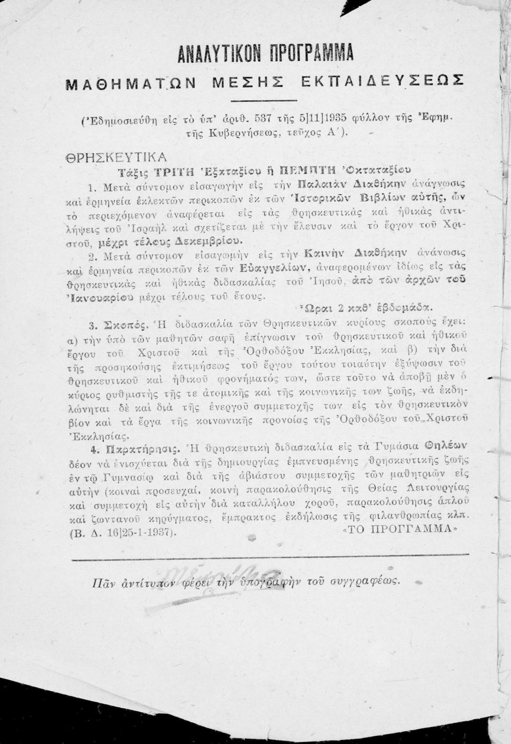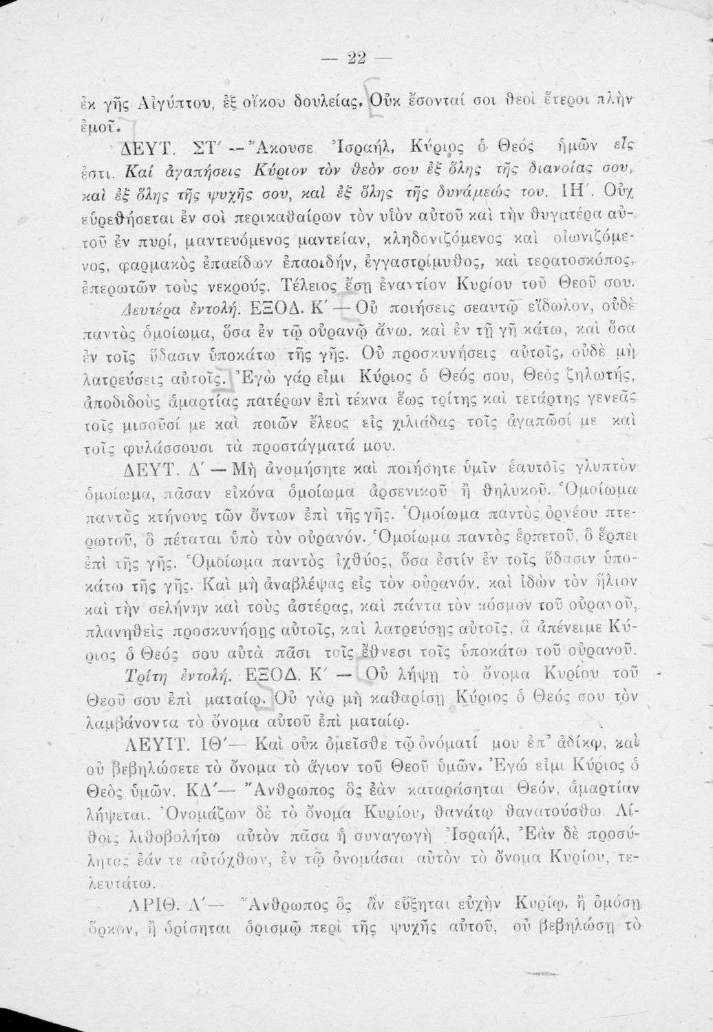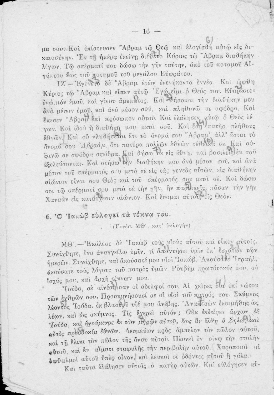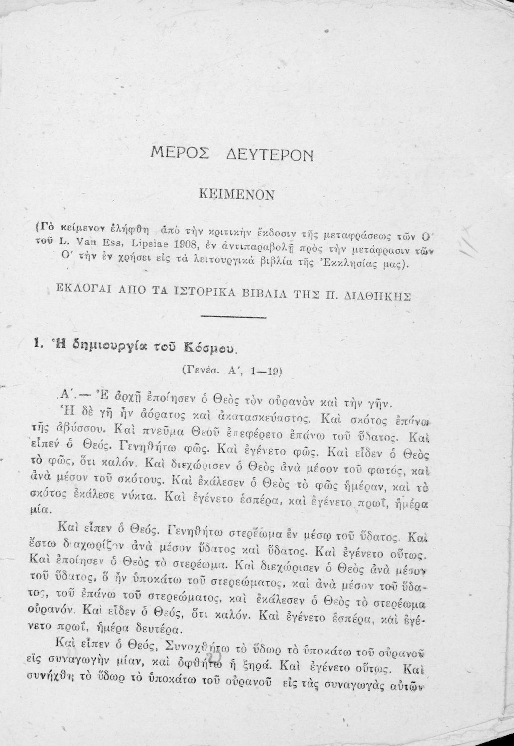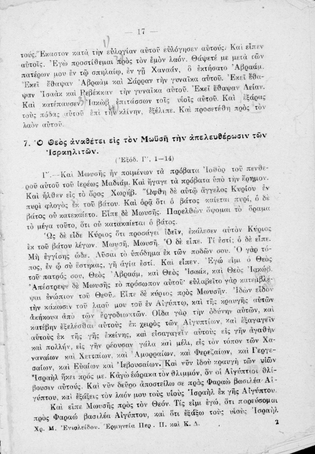 Βαθμίδα εκπαίδευσης: Δευτεροβάθμια Τάξη: Ε' Οκταταξίου Γυμνασίου / Γ' Εξαταξίου Γυμνασίου Μάθημα: Θρησκευτικά Γλώσσα: Καθαρεύουσα Παρουσίαση περιεχομένου: Σχολικό εγχειρίδιο Θρησκευτικών για την Ε΄ Οκταταξίου και Εξατάξιου Γυμνασίου που περιέχει εισαγωγικά σχόλια στα βιβλία της Παλαιάς και Καινής Διαθήκης, περικοπές, ερμηνευτικές και πραγματολογικές σημειώσεις |