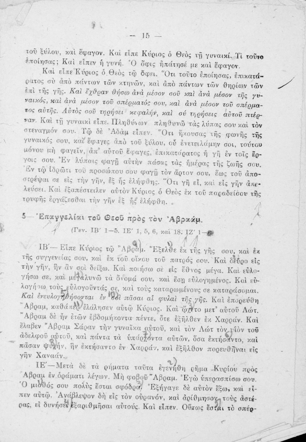Σχολικό εγχειρίδιο Θρησκευτικών για την Ε΄ Οκταταξίου και Εξατάξιου Γυμνασίου που περιέχει εισαγωγικά σχόλια στα βιβλία της Παλαιάς και Καινής Διαθήκης, περικοπές, ερμηνευτικές και πραγματολογικές σημειώσεις