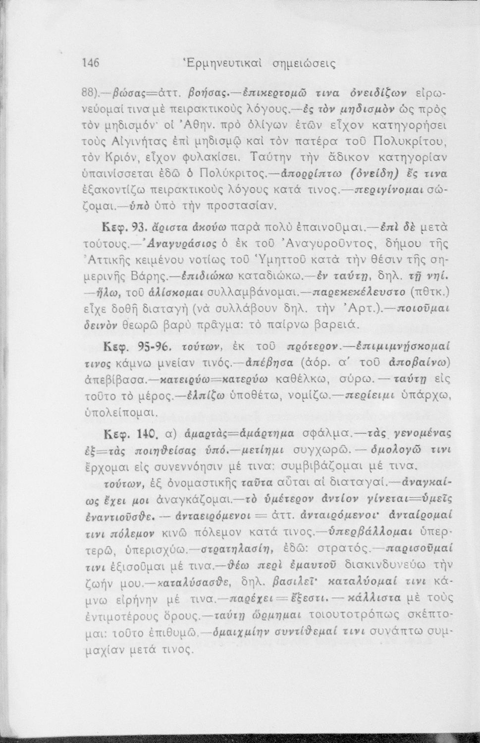 Σχολικό εγχειρίδιο Αρχαίων Ελληνικών Δ΄, Ε΄ και ΣΤ΄ Γυμνασίου που περιέχει αποσπάσματα από το έργο του Θουκυδίδη Ιστορία, ερμηνευτικά και πραγματολογικά σχόλια, και γραμματικές παρατηρήσεις.