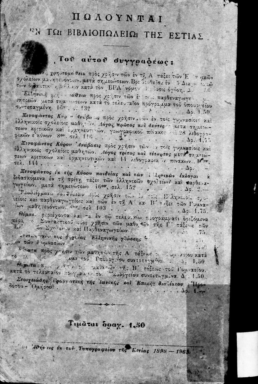 Εκδότης: Γεώργιος Κασδόνης Έτος έκδοσης: 1898 Τόπος έκδοσης: Αθήνα |