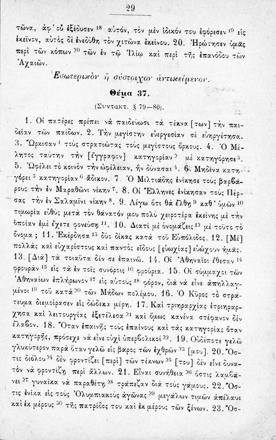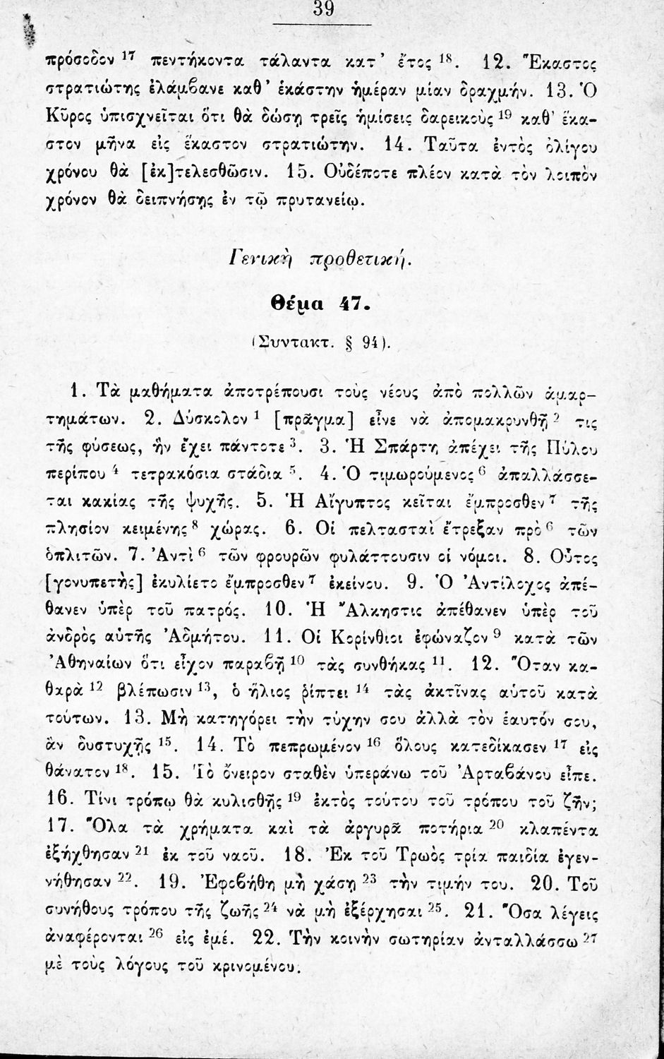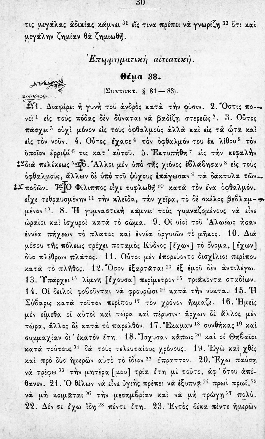 Μαθητικό βοήθημα Αρχαίων Ελληνικών για την Α΄ Γυμνασίου που περιέχει θέματα από την αρχαία ελληνική για την εκμάθηση της γραμματικής και του συντακτικού.
