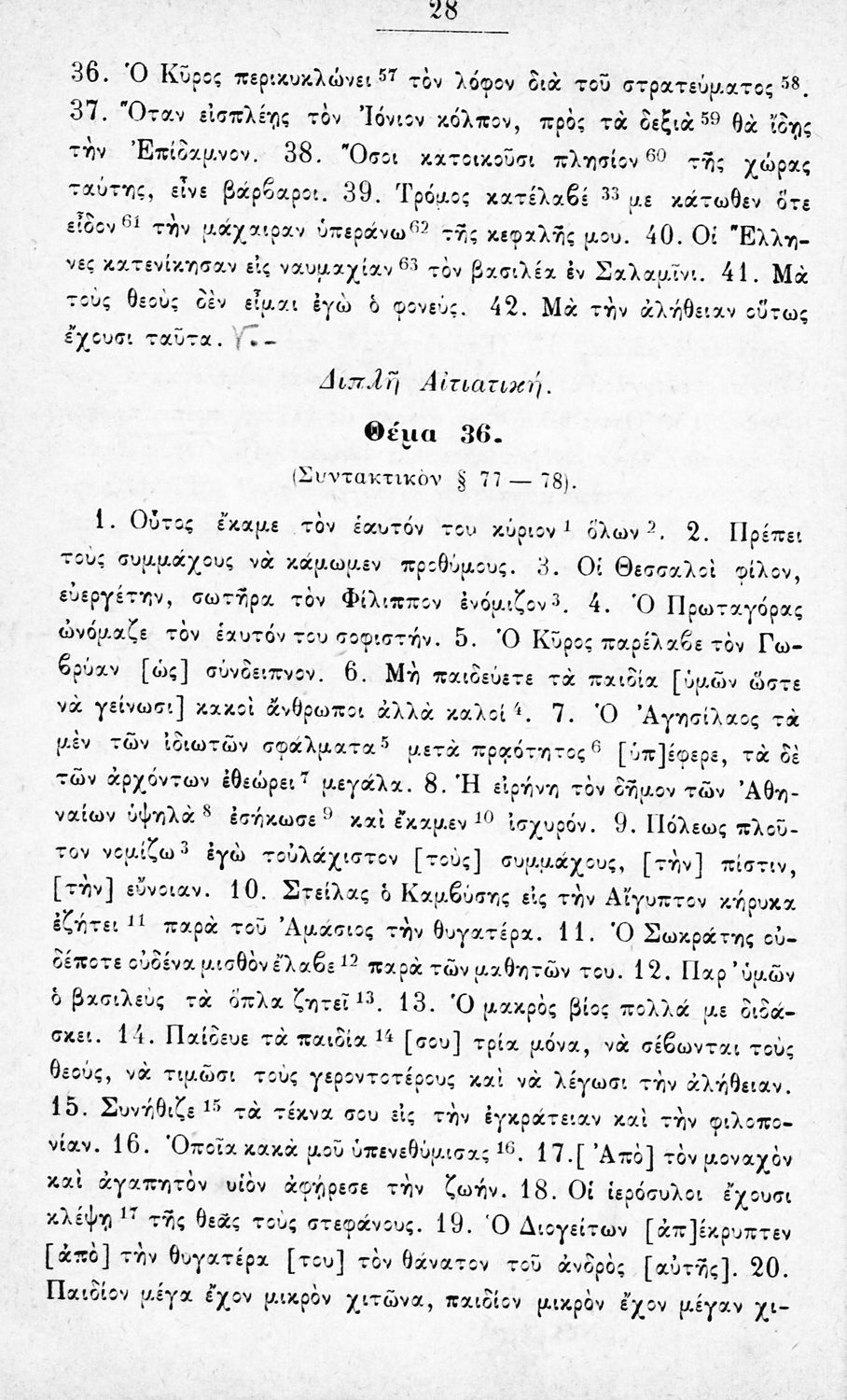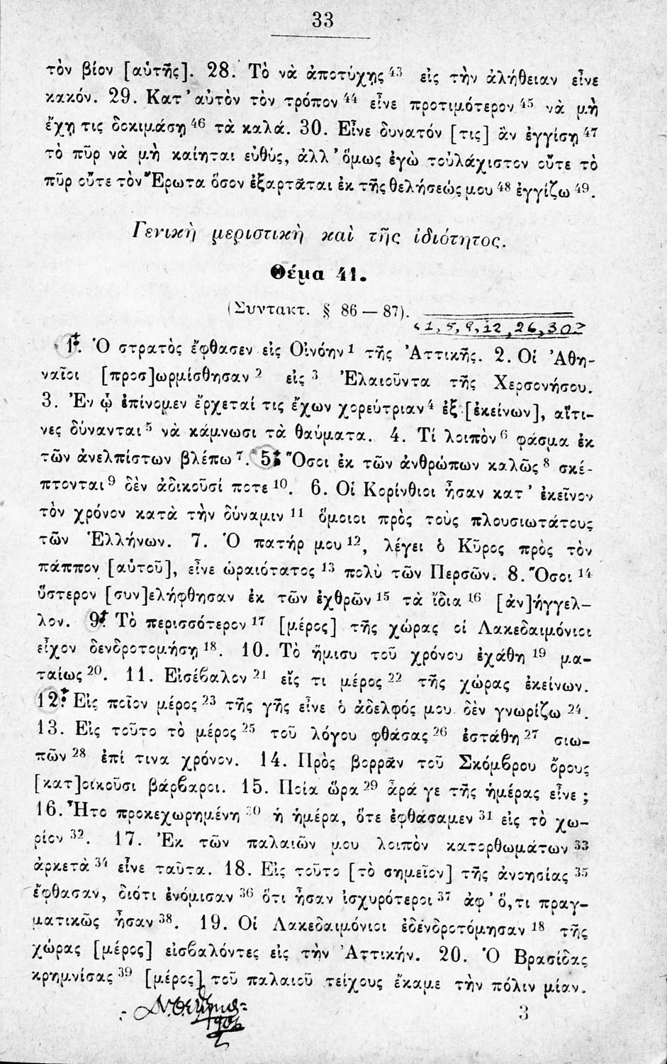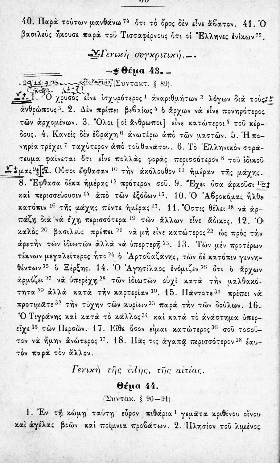 Μαθητικό βοήθημα Αρχαίων Ελληνικών για την Α΄ Γυμνασίου που περιέχει θέματα από την αρχαία ελληνική για την εκμάθηση της γραμματικής και του συντακτικού.
