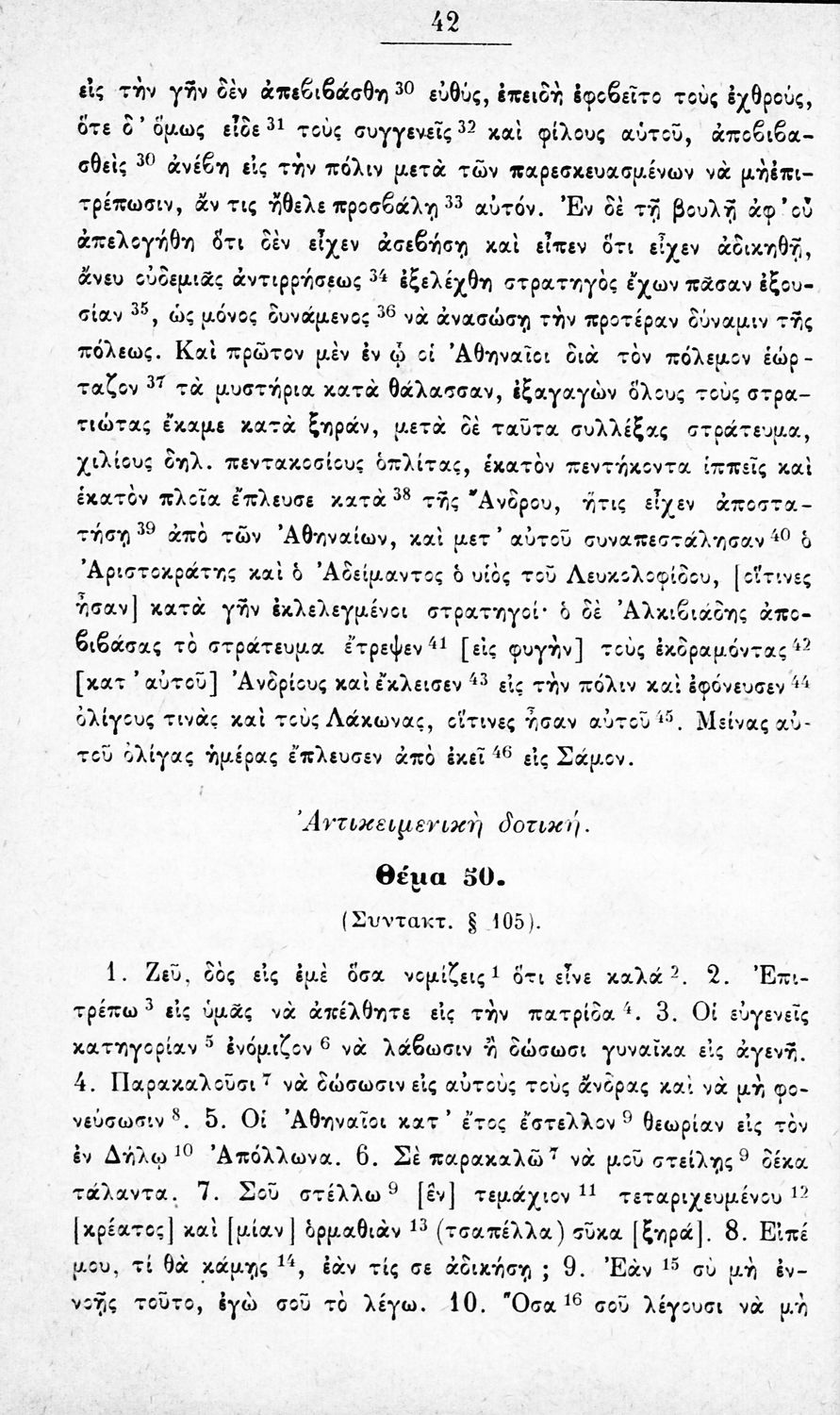 Μαθητικό βοήθημα Αρχαίων Ελληνικών για την Α΄ Γυμνασίου που περιέχει θέματα από την αρχαία ελληνική για την εκμάθηση της γραμματικής και του συντακτικού.