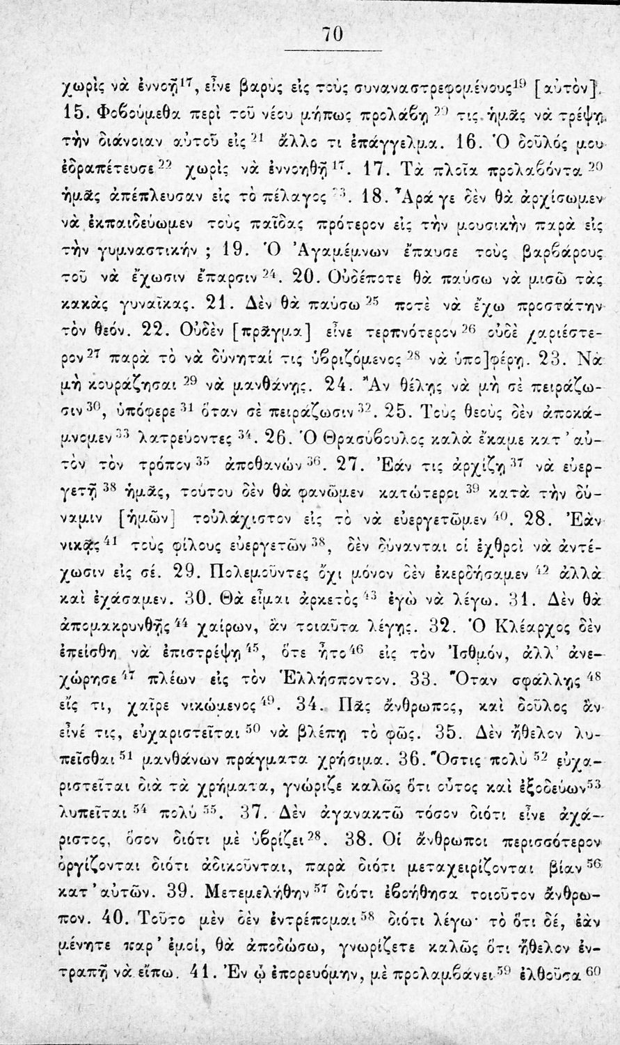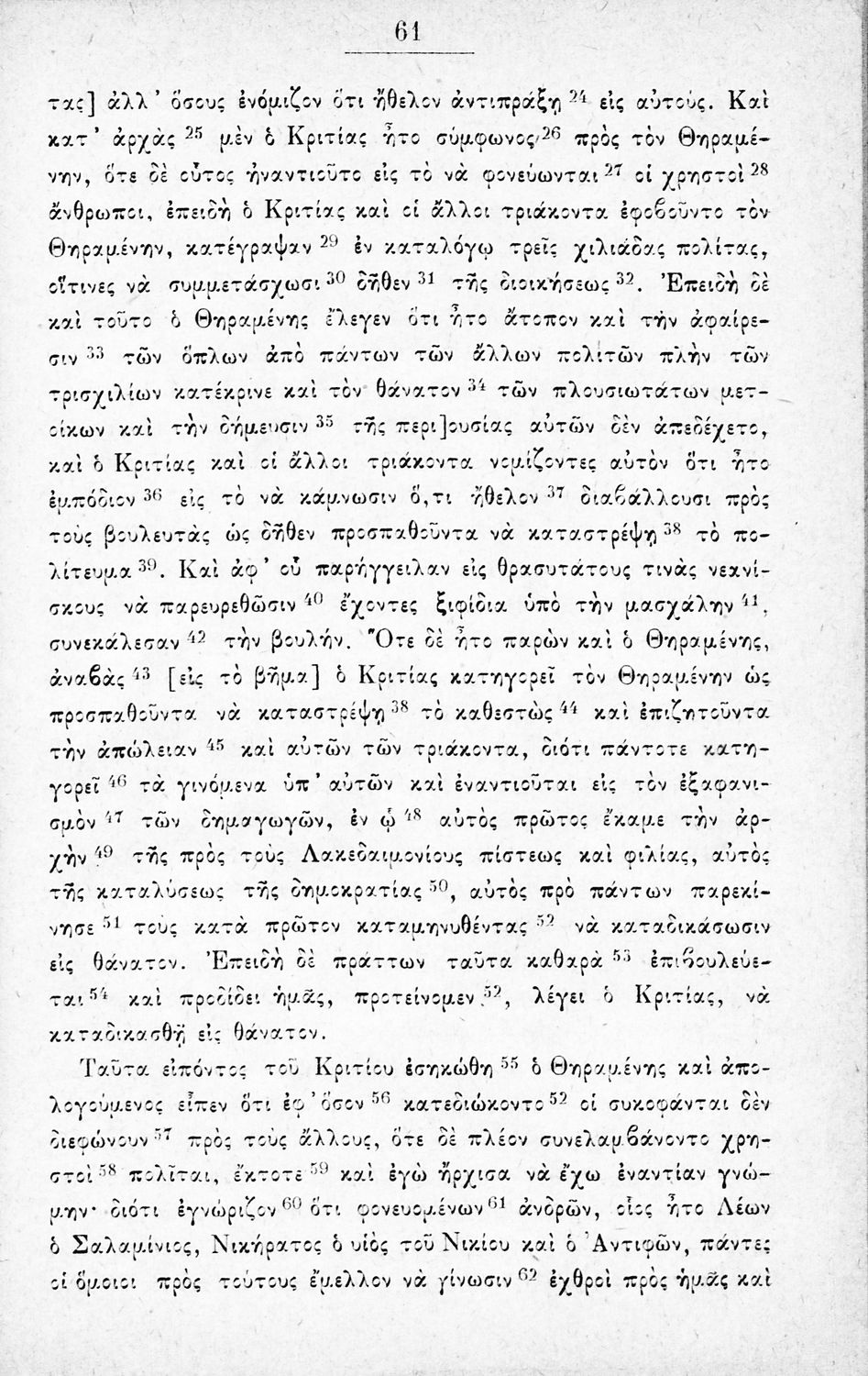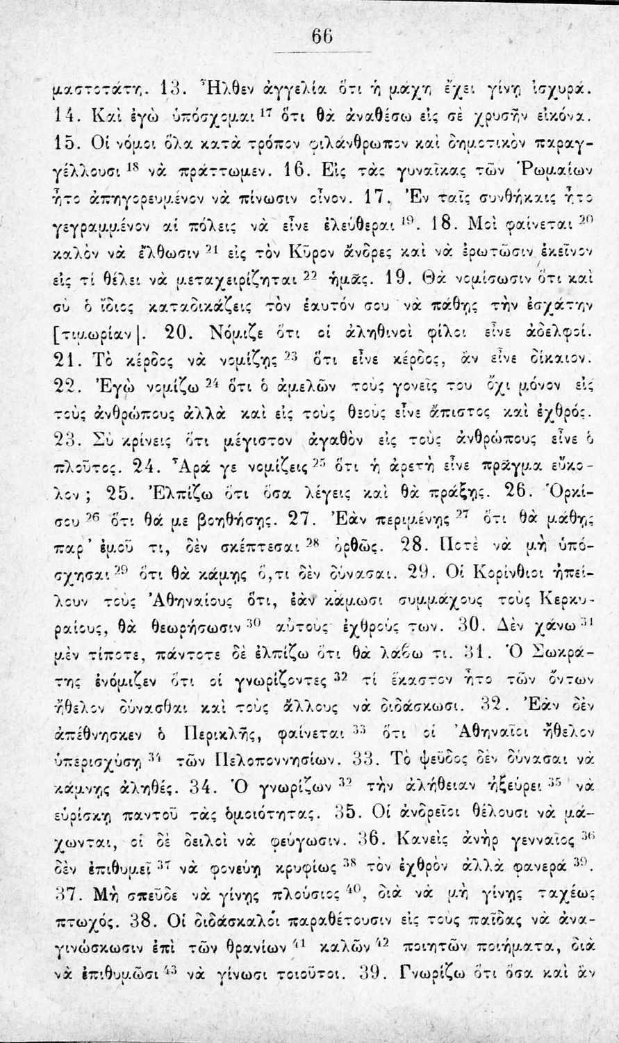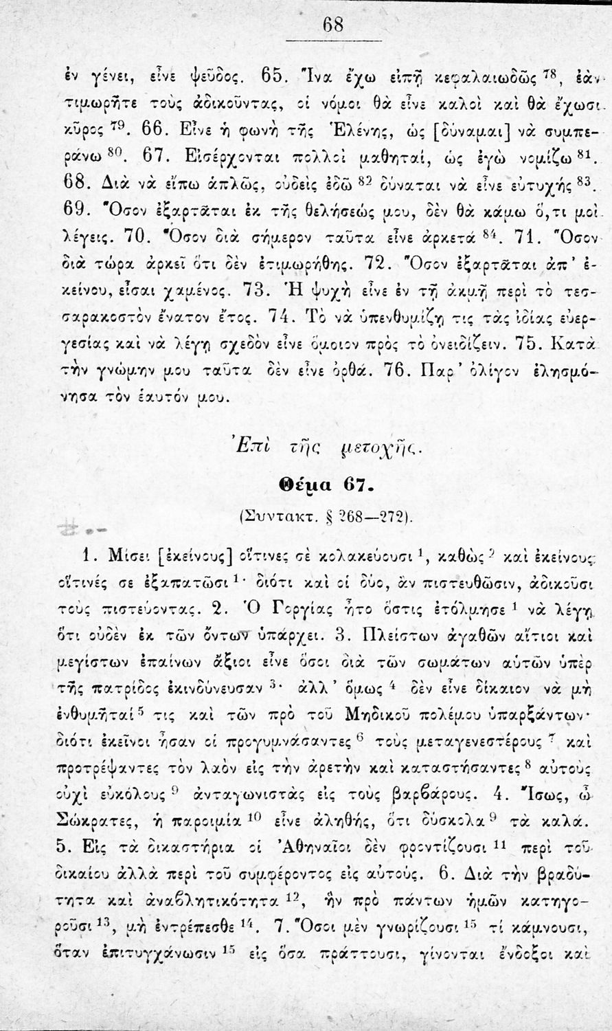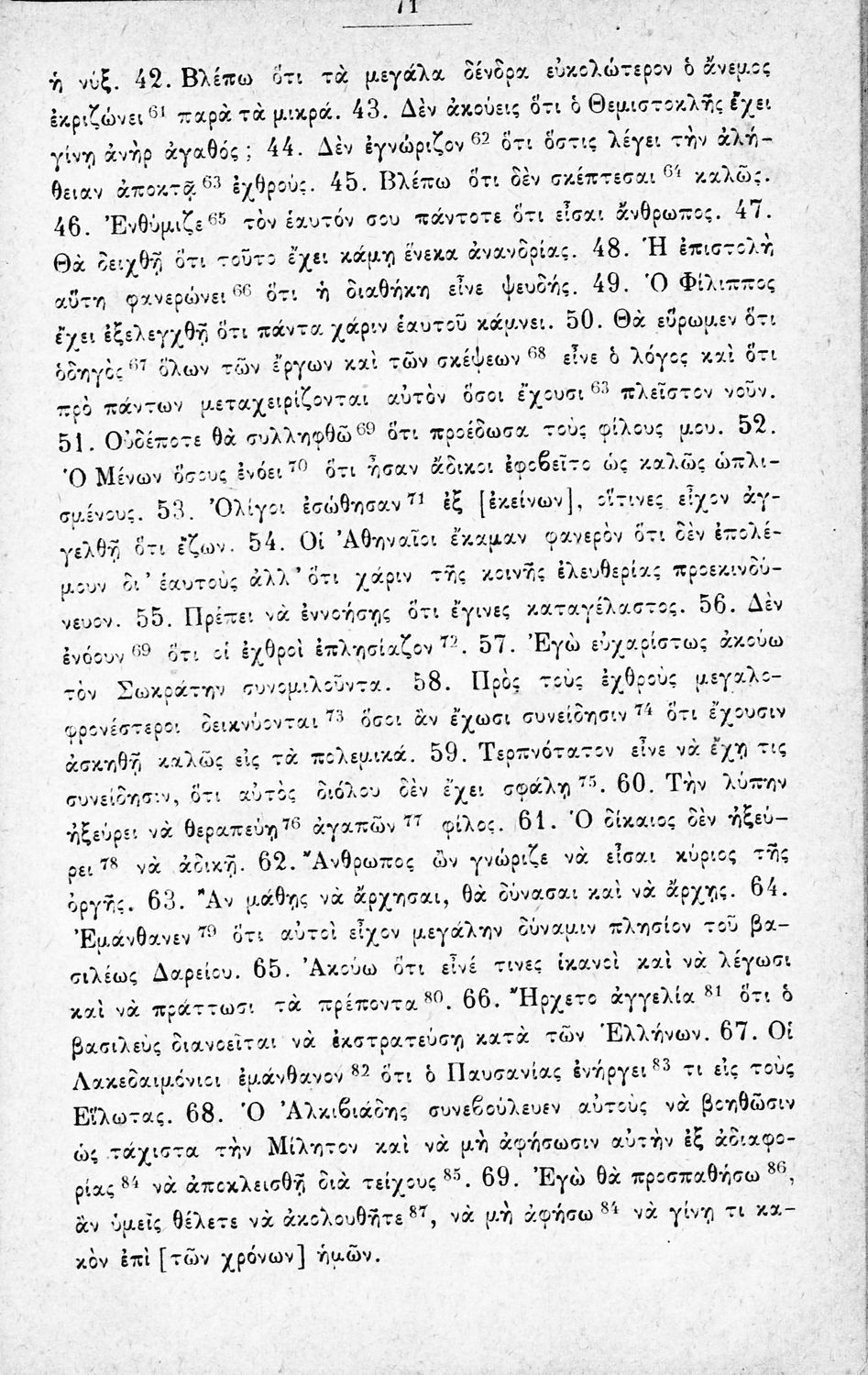 Μαθητικό βοήθημα Αρχαίων Ελληνικών της τρίτης τάξης των τετρατάξιων Γυμνασίων. Το βιβλίο περιέχει τα έργα του Δημοσθένη, Περί της ειρήνης και Α΄ Φιλιππικός από μετάφραση.