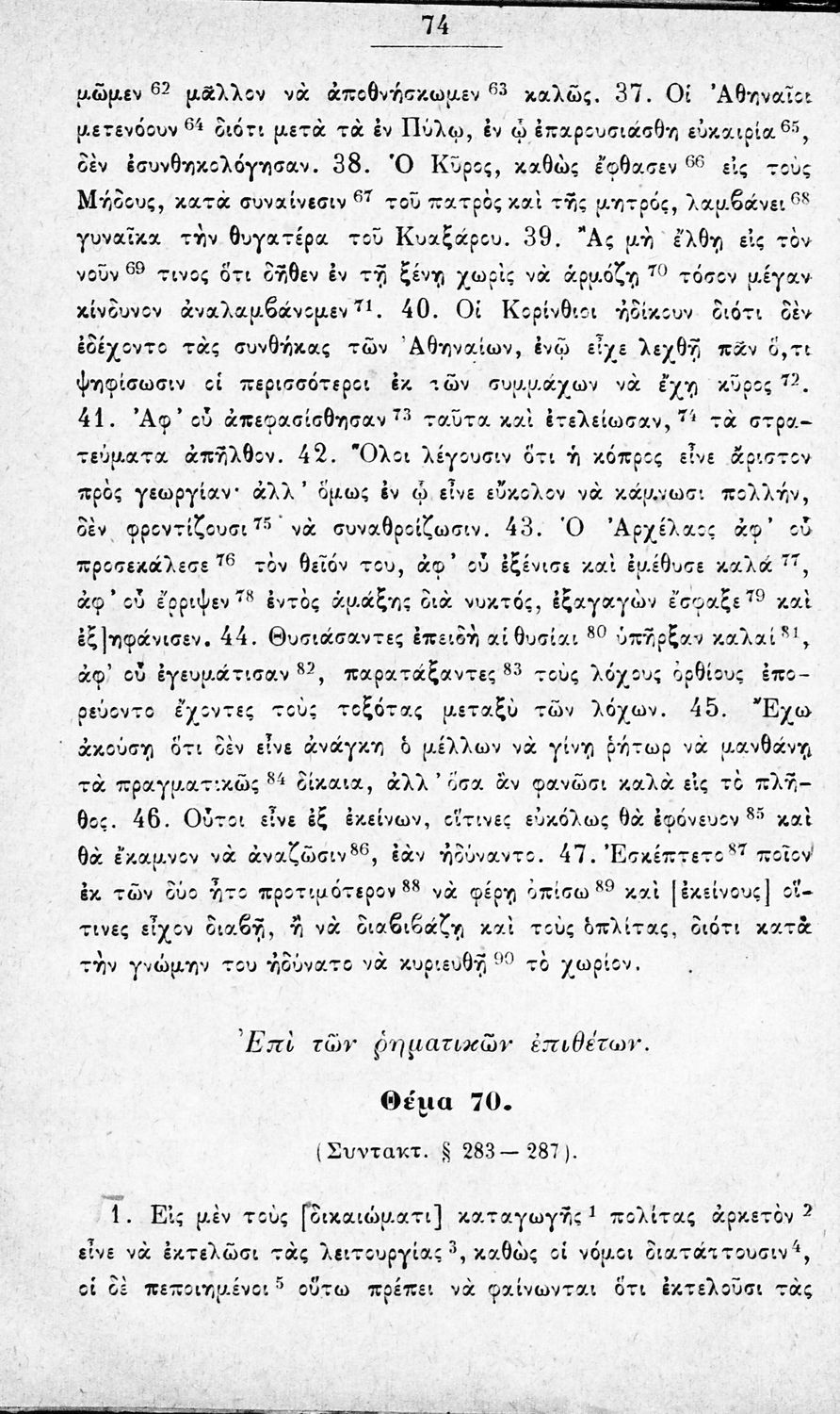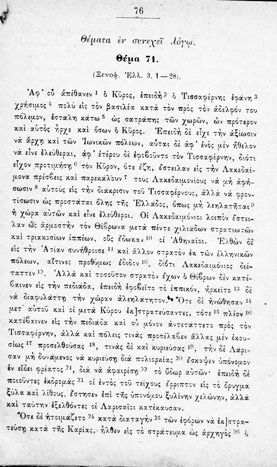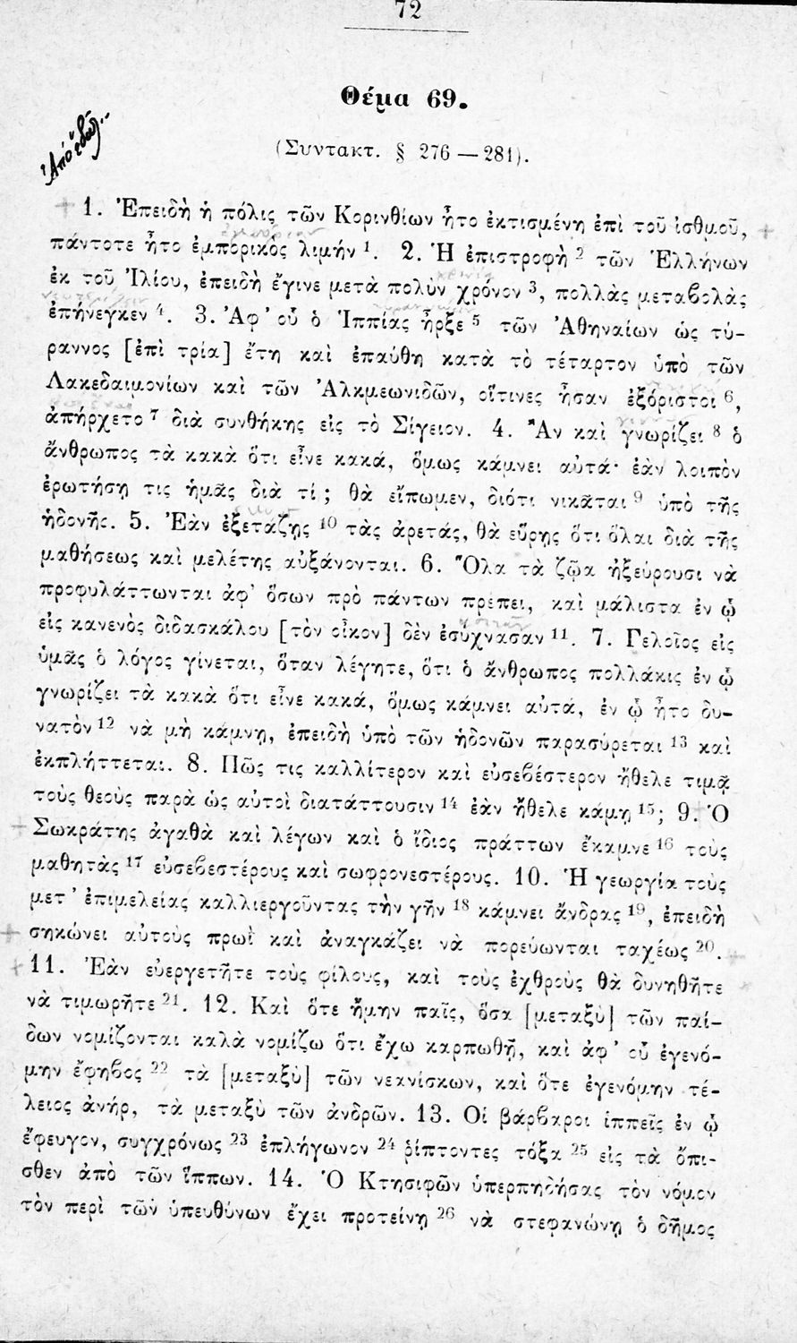 Μαθητικό βοήθημα Αρχαίων Ελληνικών για την Α΄ Γυμνασίου που περιέχει θέματα από την αρχαία ελληνική για την εκμάθηση της γραμματικής και του συντακτικού.