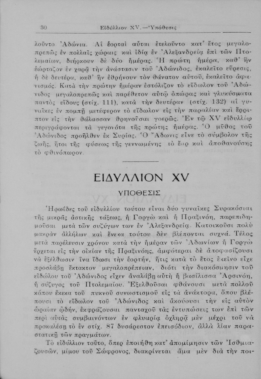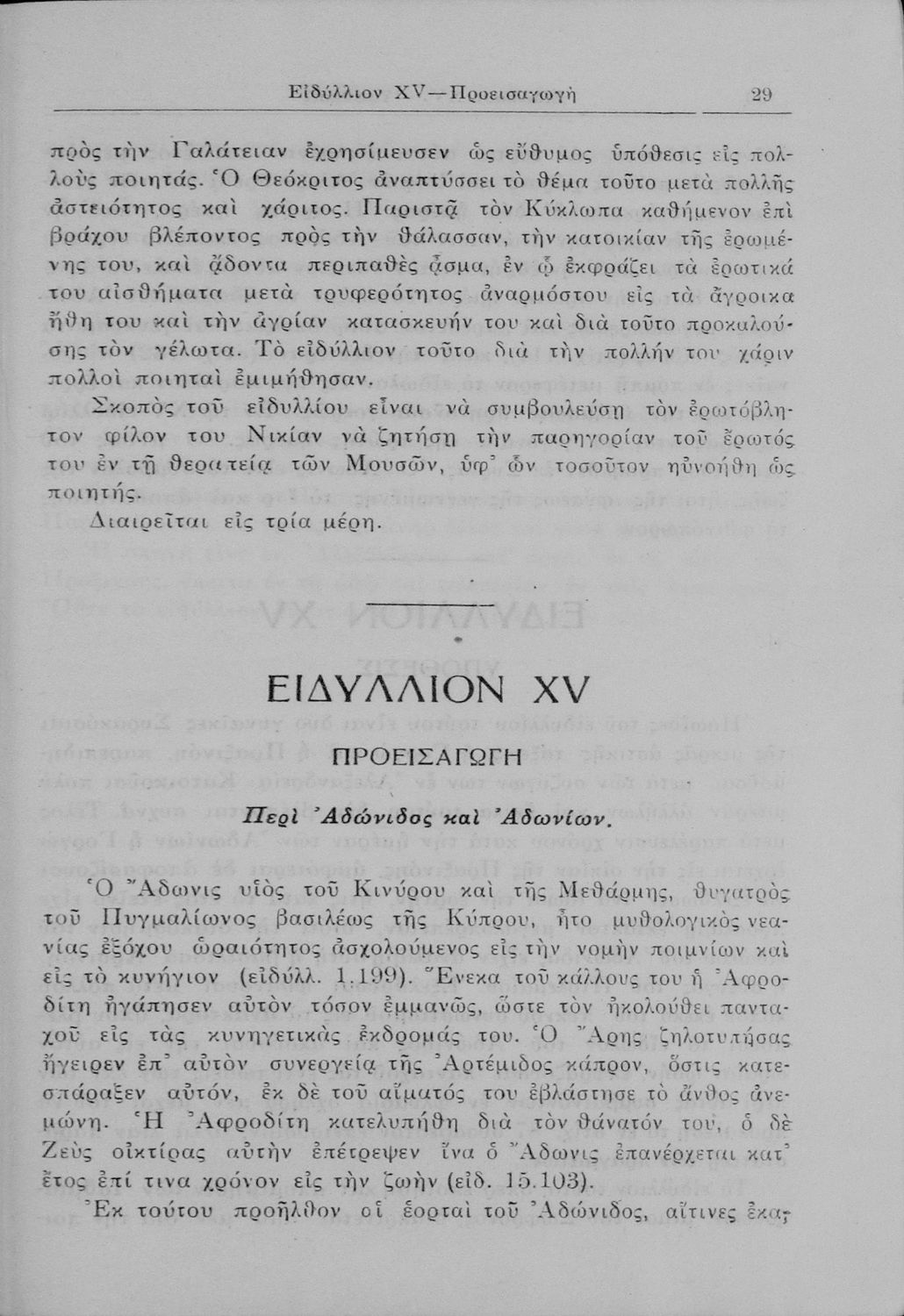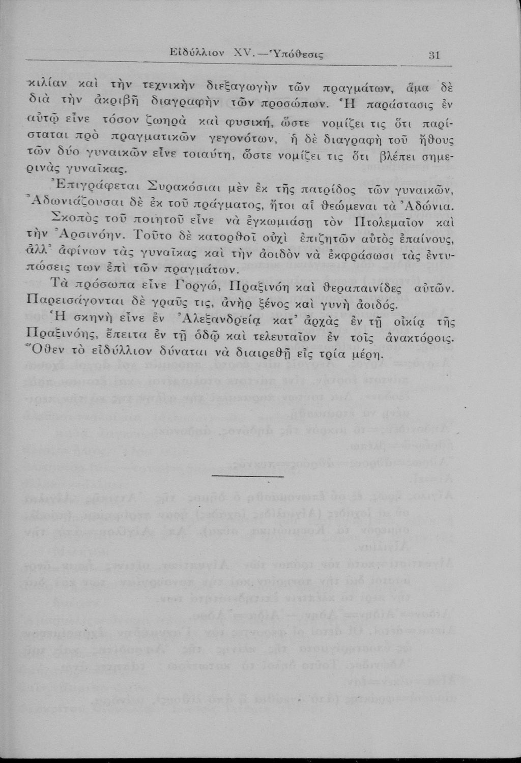 Σχετιζόμενοι όροι:  Θεόκριτος, Ειδύλλια Α΄ -Γ-ΙΑ΄ -ΙΕ΄