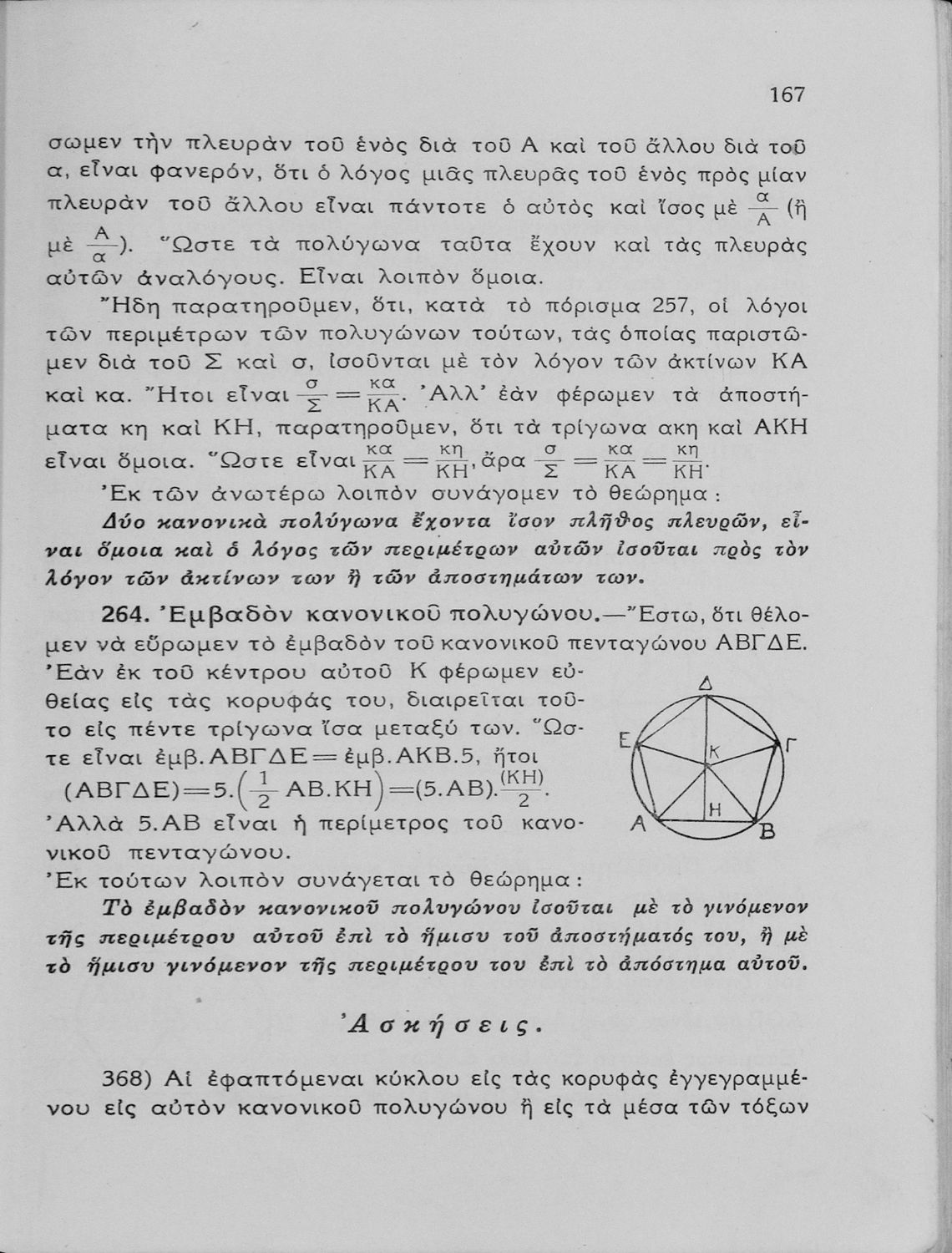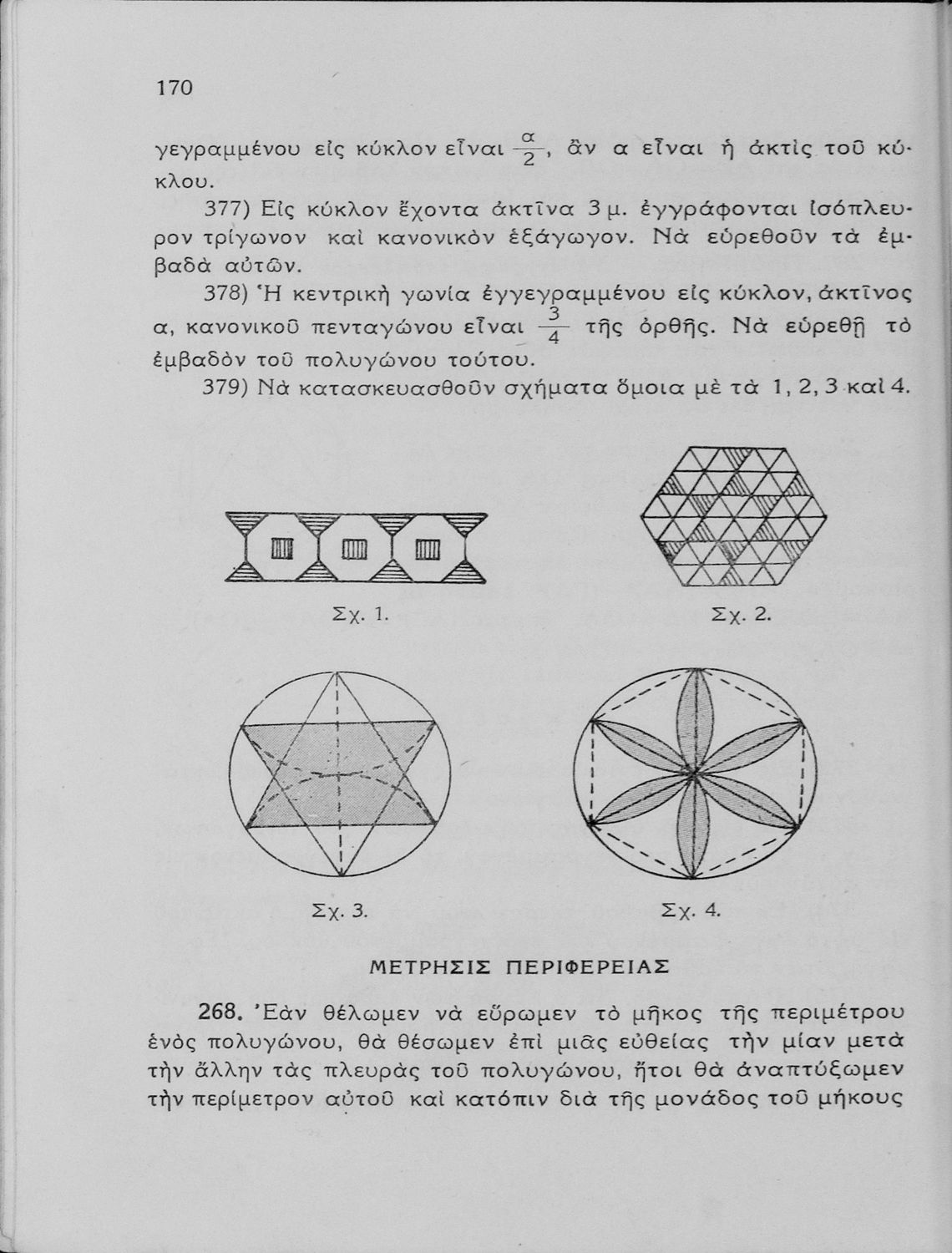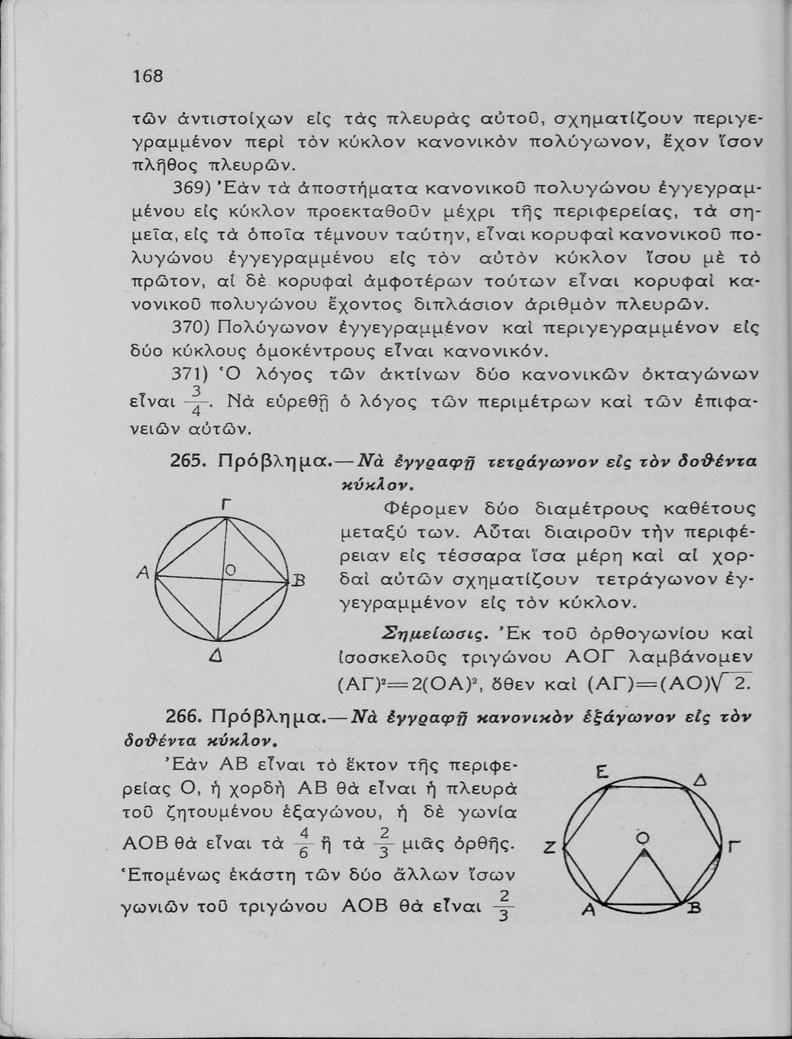 Σχολικό εγχειρίδιο Γεωμετρίας για τις Α΄, Β΄, Γ΄ Γυμνασίου που είναι χωρισμένο σε Επιπεδομετρία και Στερεομετρία και περιλαμβάνει θεωρία και ασκήσεις.