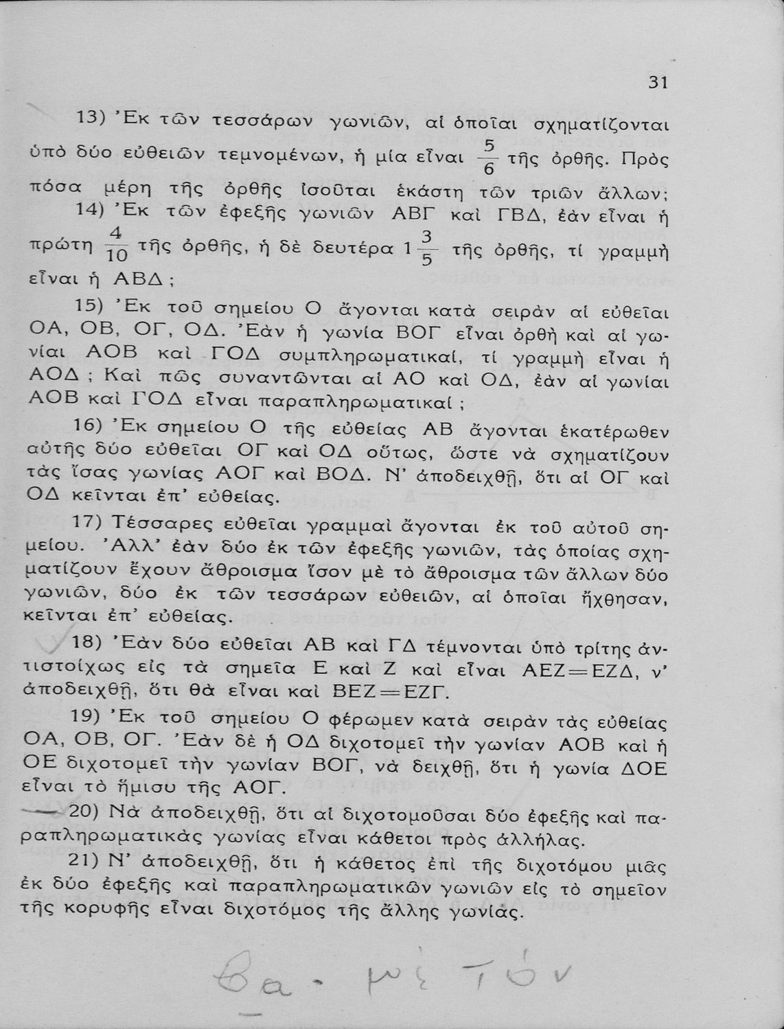 Τάξη:  Δ' Γυμνασίου παλαιού τύπου / Ε' Γυμνασίου παλαιού τύπου / ΣΤ' Γυμνασίου παλαιού τύπου