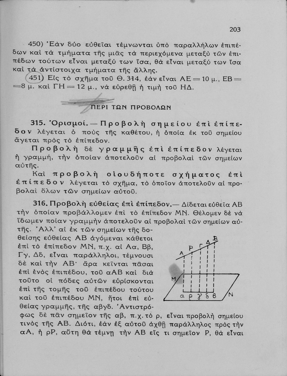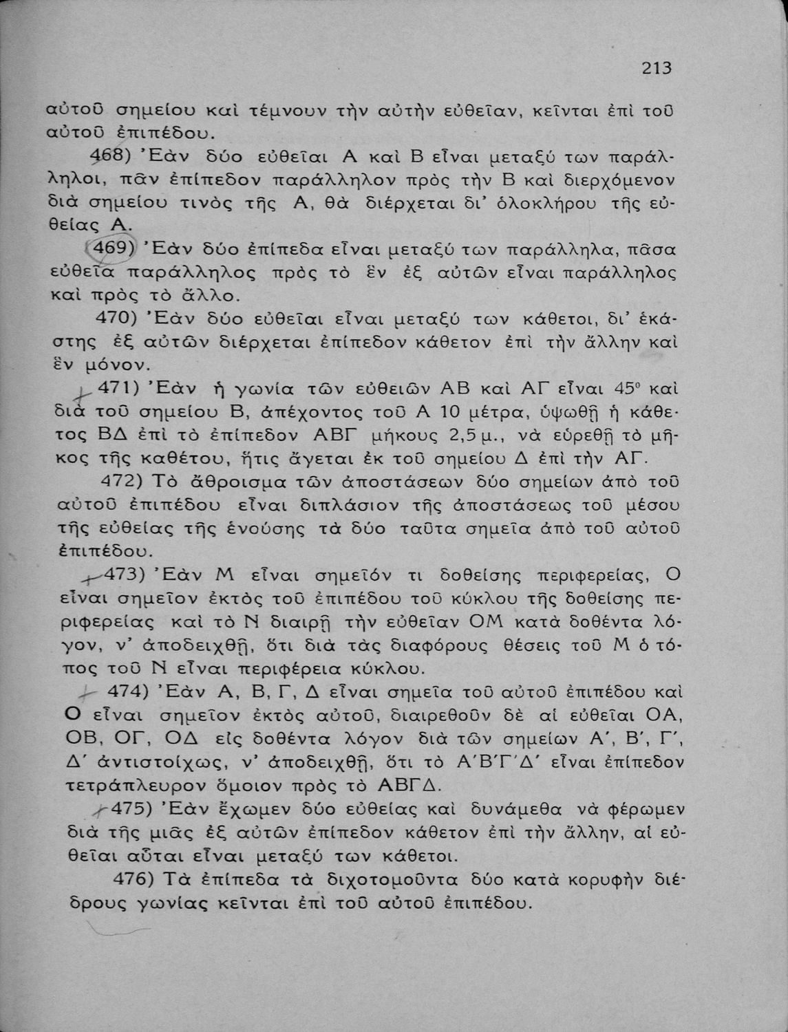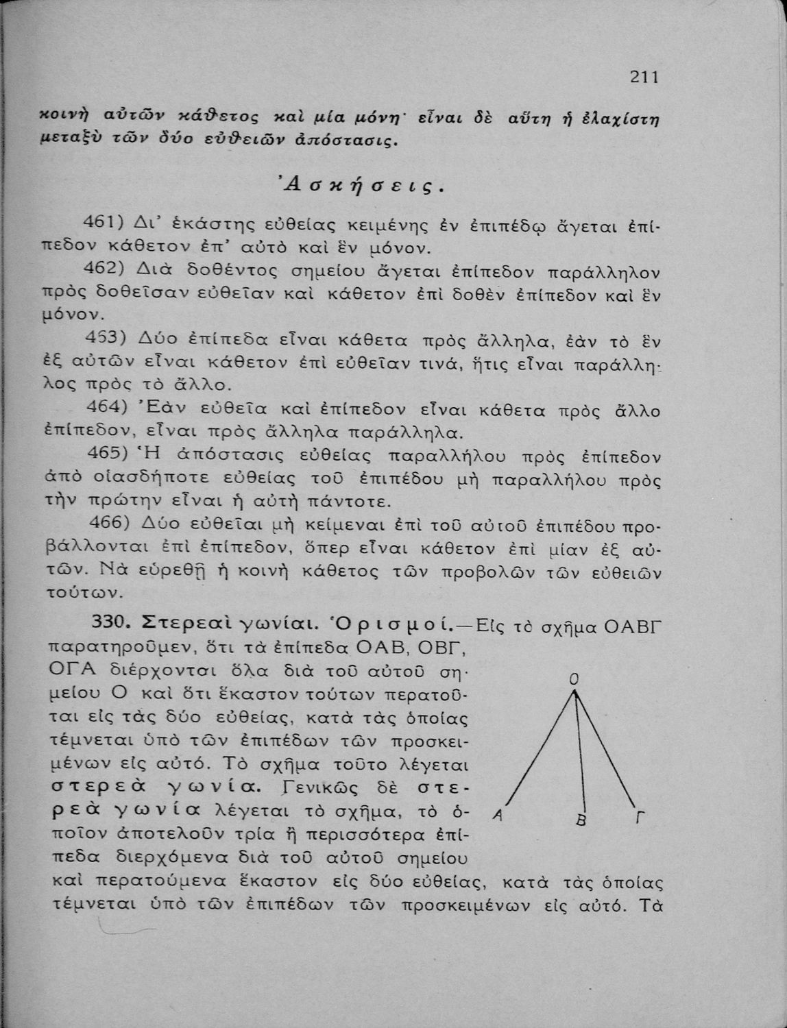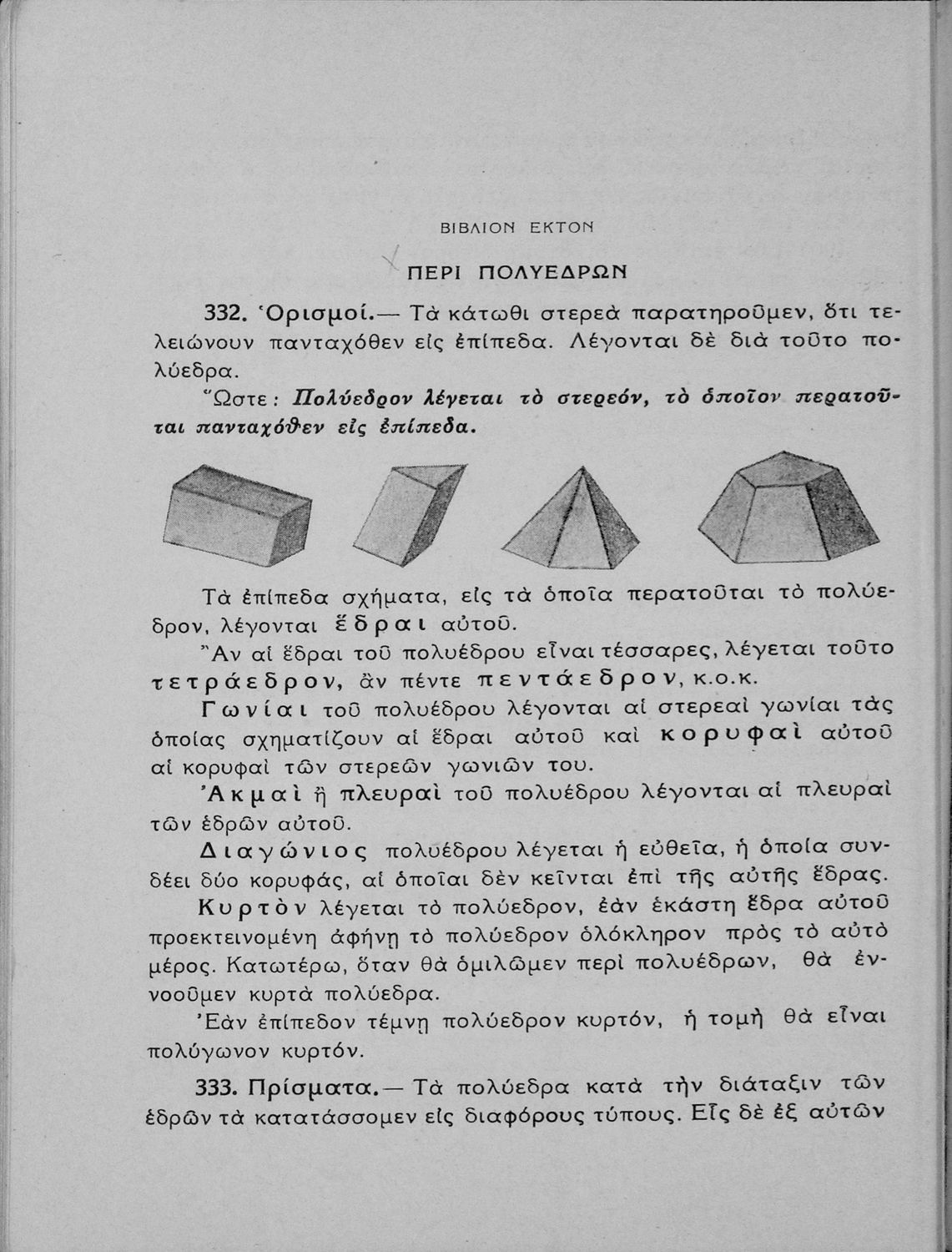 Βαθμίδα εκπαίδευσης: Δευτεροβάθμια Τάξη: Δ' Γυμνασίου / Ε' Γυμνασίου / ΣΤ' Γυμνασίου Μάθημα: Μαθηματικά Γλώσσα: Απλή καθαρεύουσα Παρουσίαση περιεχομένου: Σχολικό εγχειρίδιο Γεωμετρίας για τις Α΄, Β΄, Γ΄ Γυμνασίου που είναι χωρισμένο σε Επιπεδομετρία και Στερεομετρία και περιλαμβάνει θεωρία και ασκήσεις. |