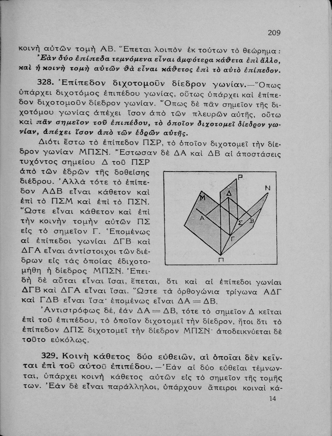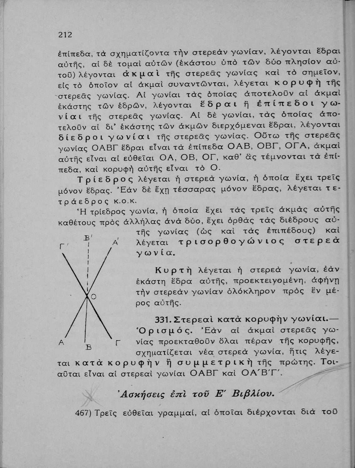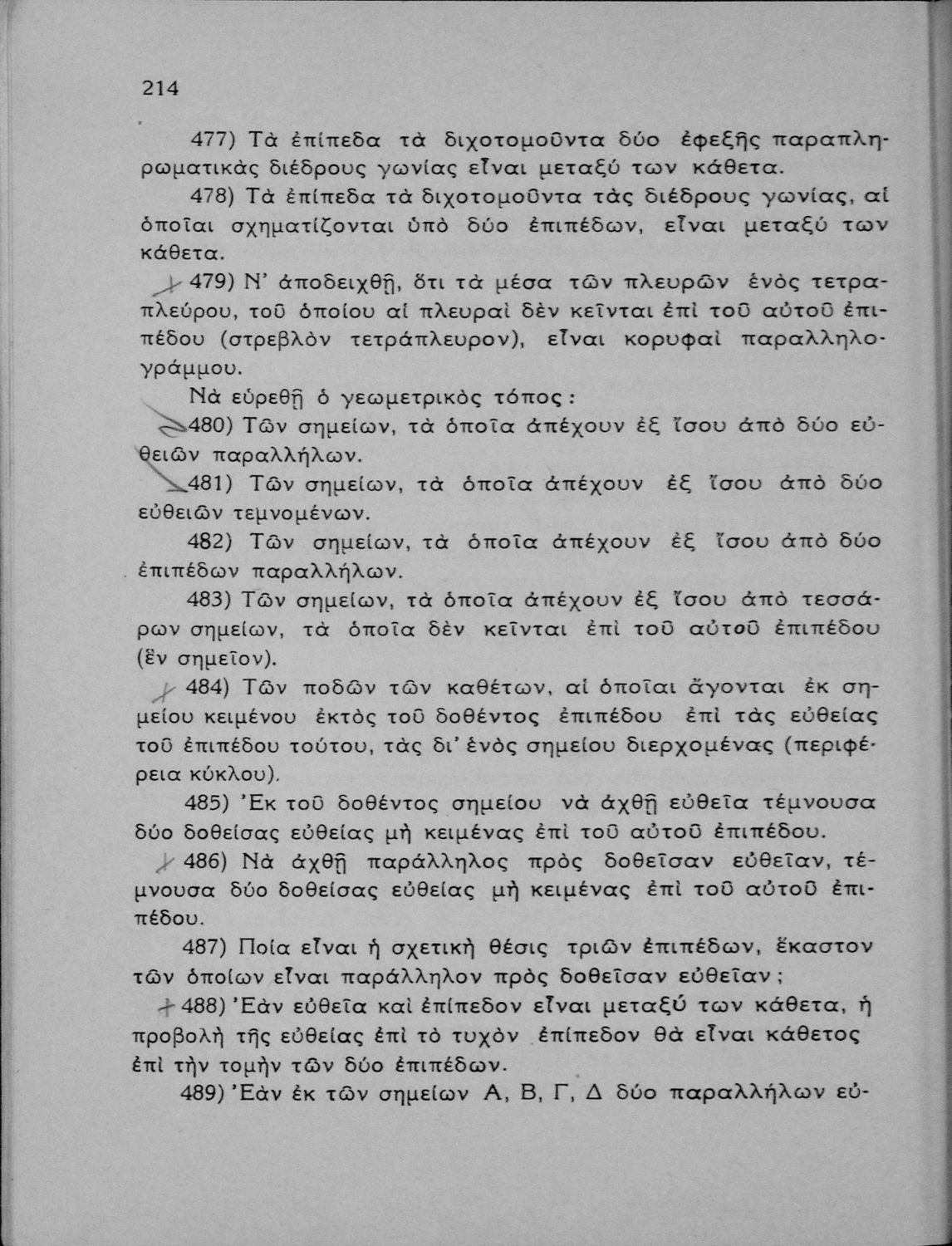 Σχολικό εγχειρίδιο Γεωμετρίας για τις Α΄, Β΄, Γ΄ Γυμνασίου που είναι χωρισμένο σε Επιπεδομετρία και Στερεομετρία και περιλαμβάνει θεωρία και ασκήσεις.