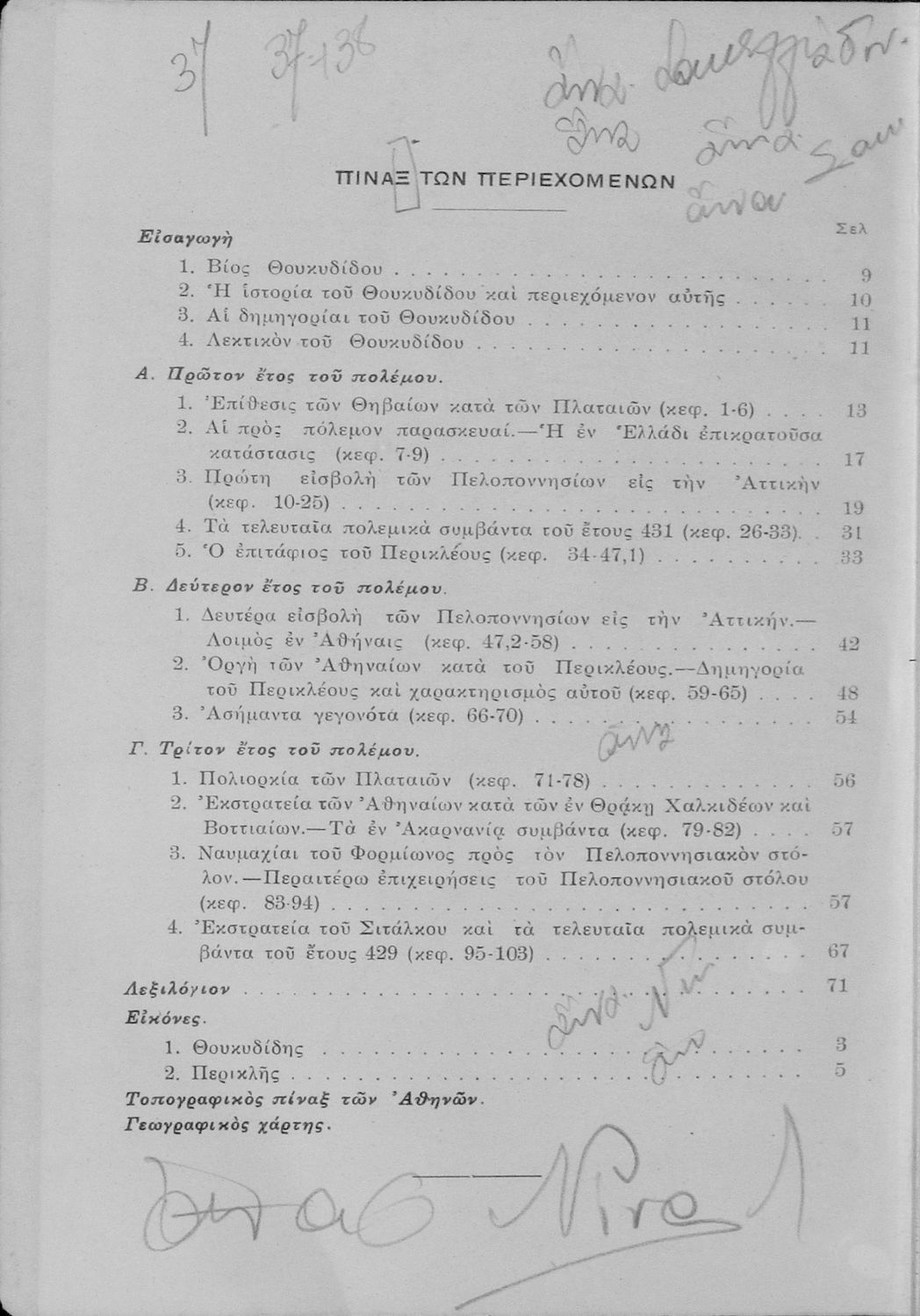 Σχολικό εγχειρίδιο Αρχαίων Ελληνικών για τις Β΄ και Γ΄ Γυμνασίου που περιλαμβάνει σύντομο βιογραφικό σημείωμα του Θουκυδίδη, εισαγωγικά σχόλια στο έργο, κείμενο και ετυμολογικό λεξιλόγιο.
