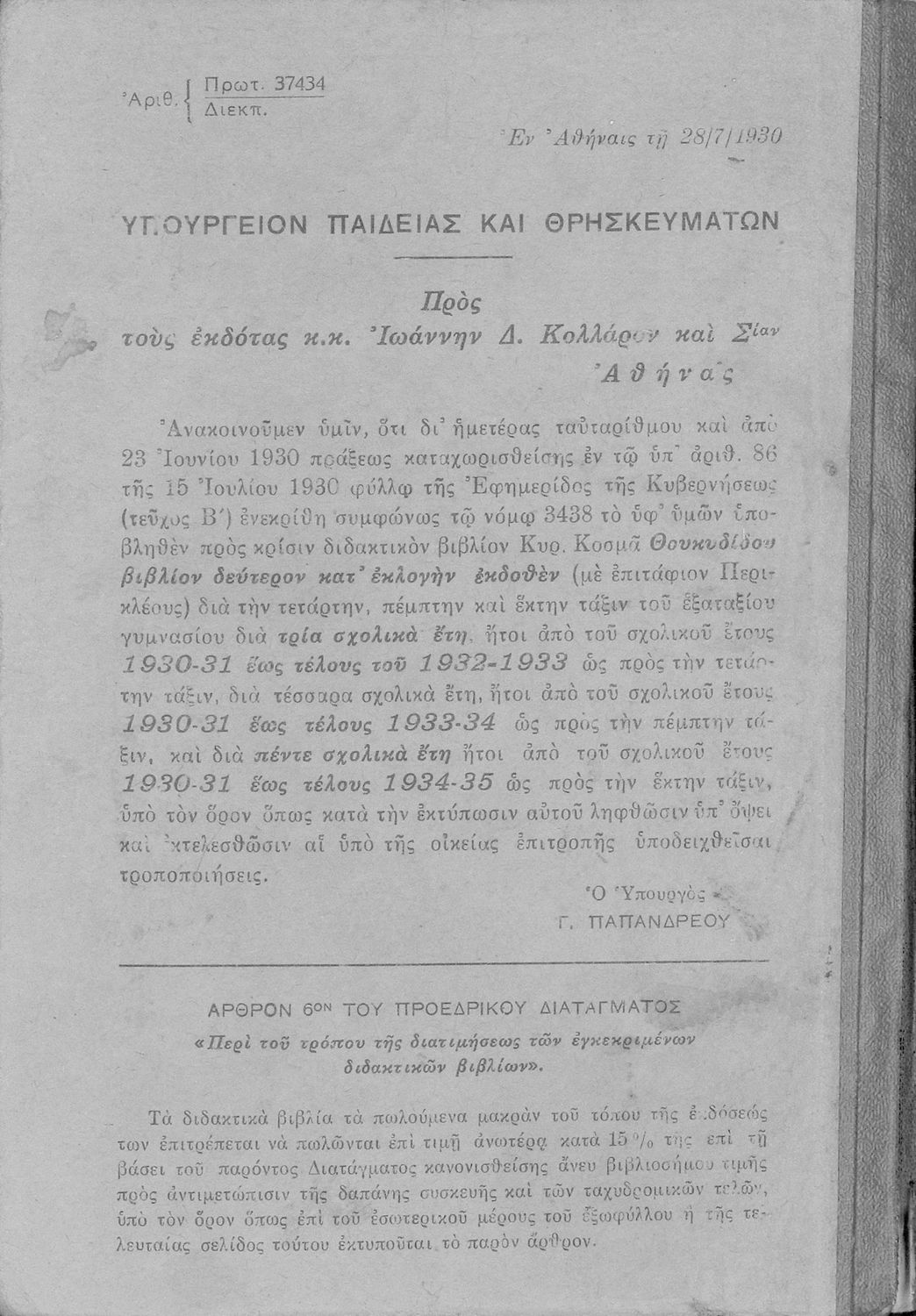 Υπουργική απόφαση / Σύμβαση: 37434/28/7/1930