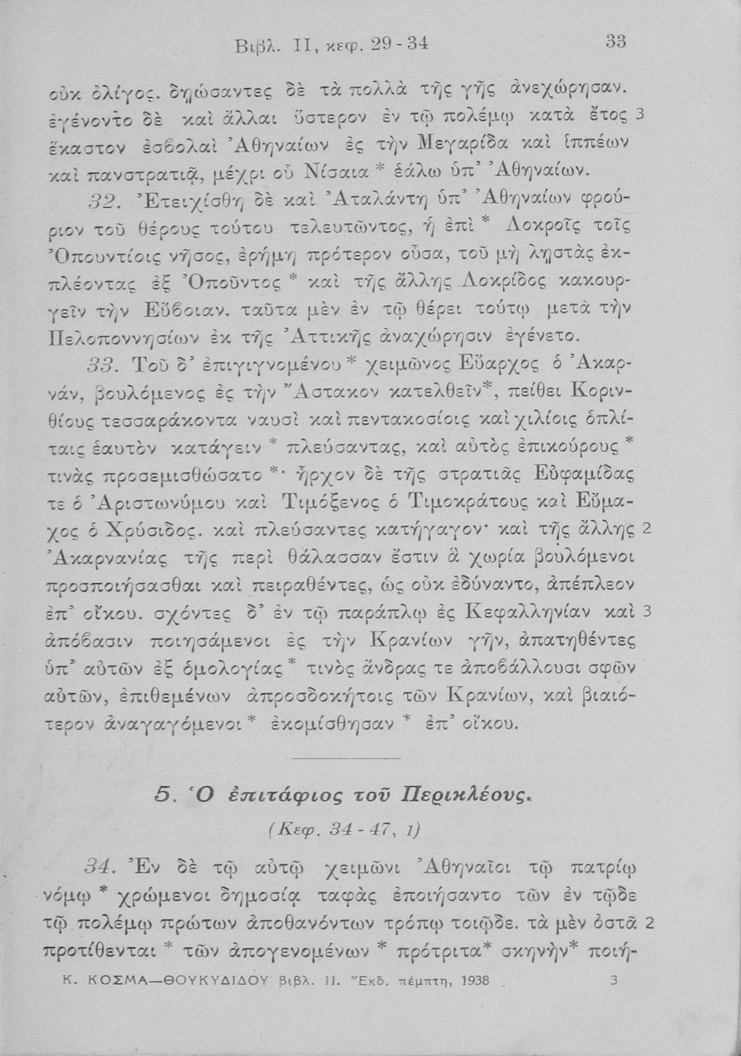 Σχολικό εγχειρίδιο Αρχαίων Ελληνικών για τις Δ΄, Ε΄ και ΣΤ΄ Γυμνασίου που περιλαμβάνει εισαγωγή στη ζωή και το έργο του Θουκυδίδη, αποσπάσματα από το δεύτερο βιβλίο της Ιστορίας, πραγματολογικές παρατηρήσεις και ετυμολογικό λεξιλόγιο.