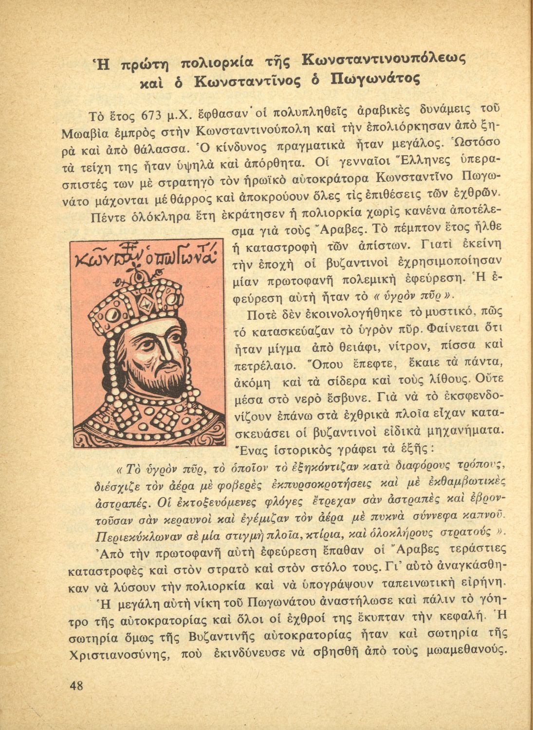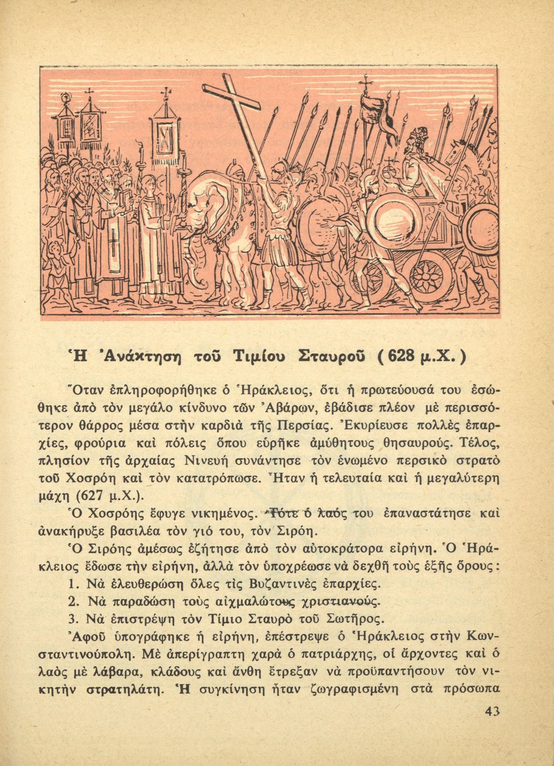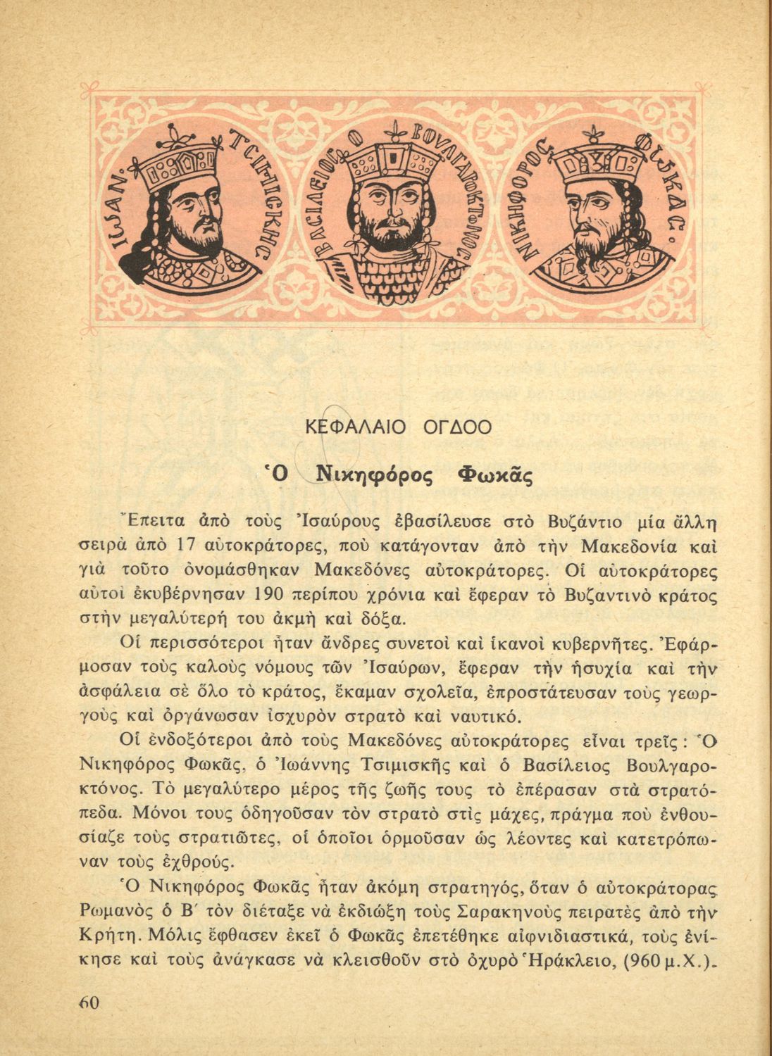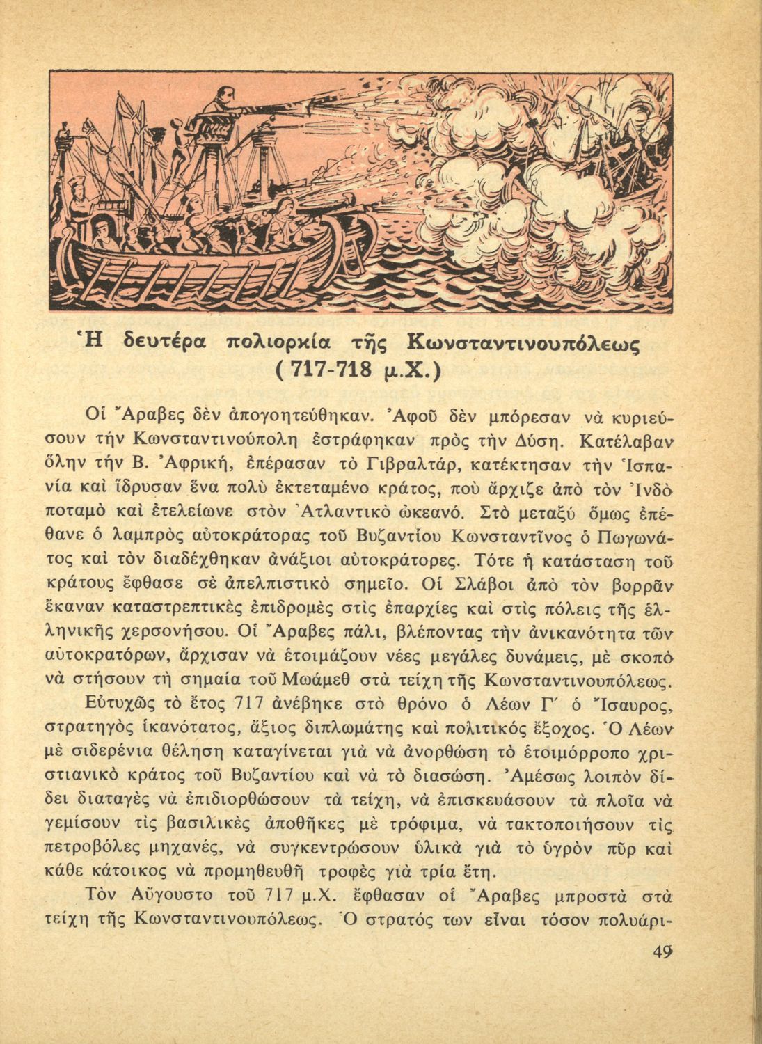 Σχολικό εγχειρίδιο για το μάθημα της Ιστορίας στους μαθητές του Δημοτικού. Αναφέρεται στα χρόνια της Βυζαντινής Αυτοκρατορίας μέχρι και την άλωση της Πόλης. Το τελευταίο κεφάλαιο αναφέρεται στα επιτεύγματα της