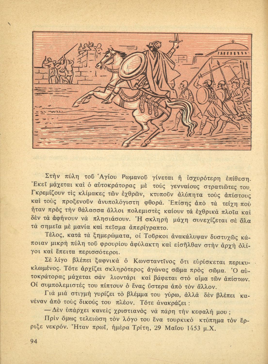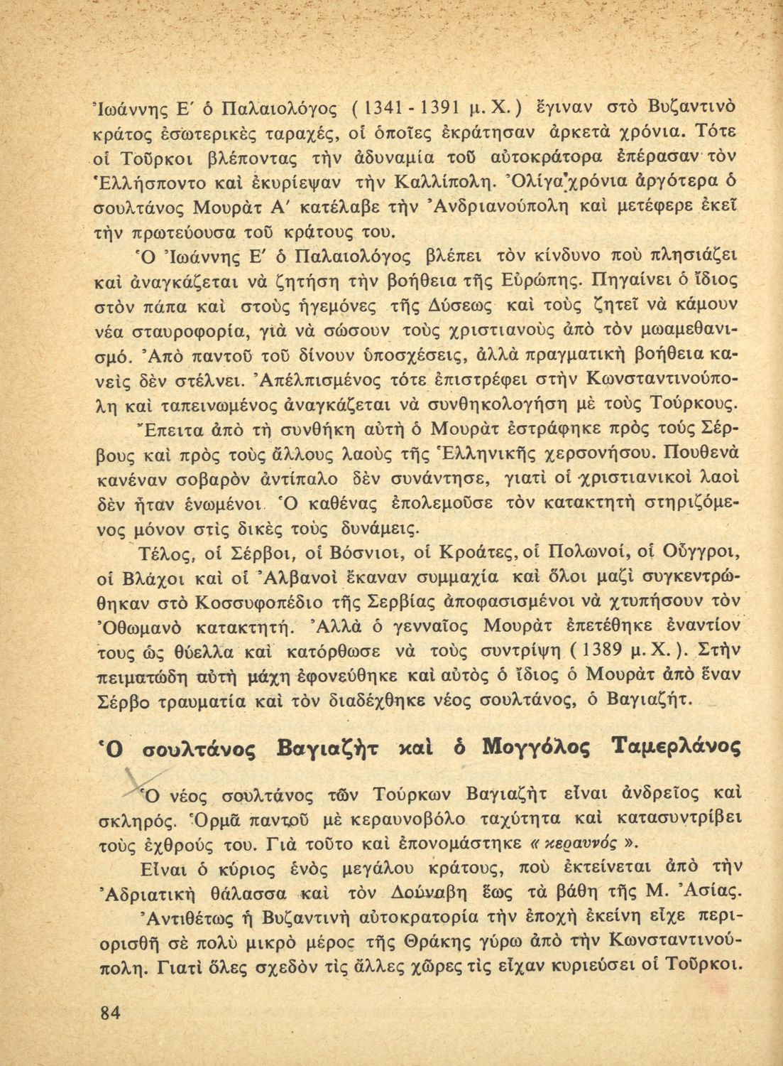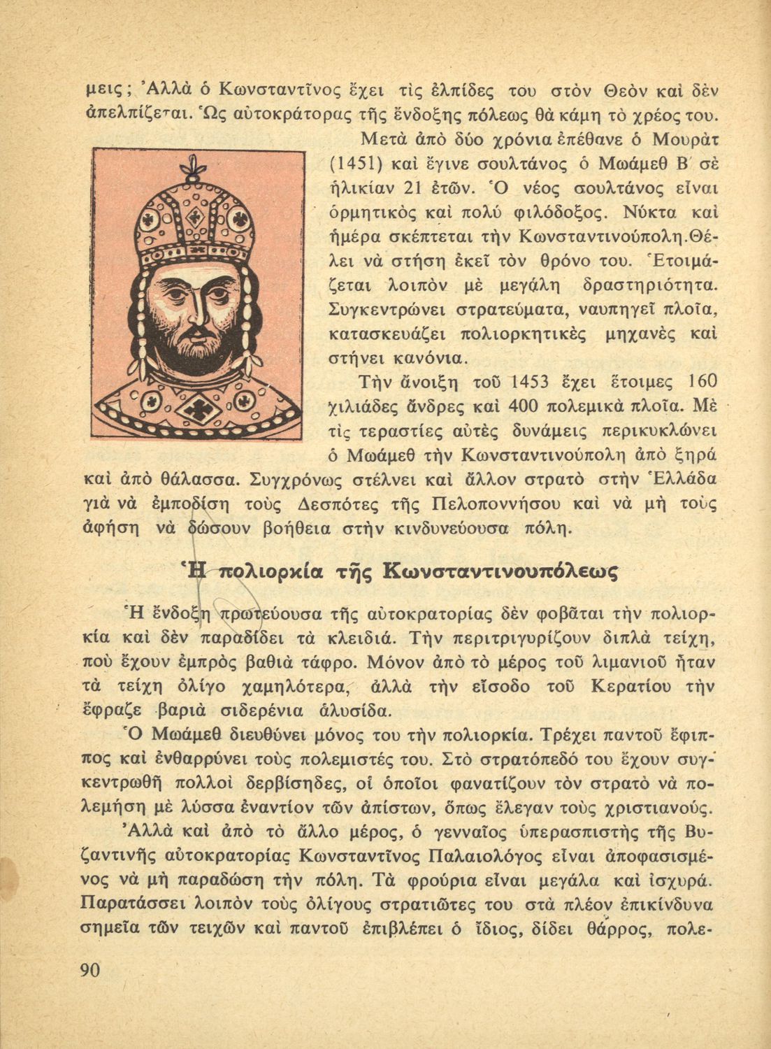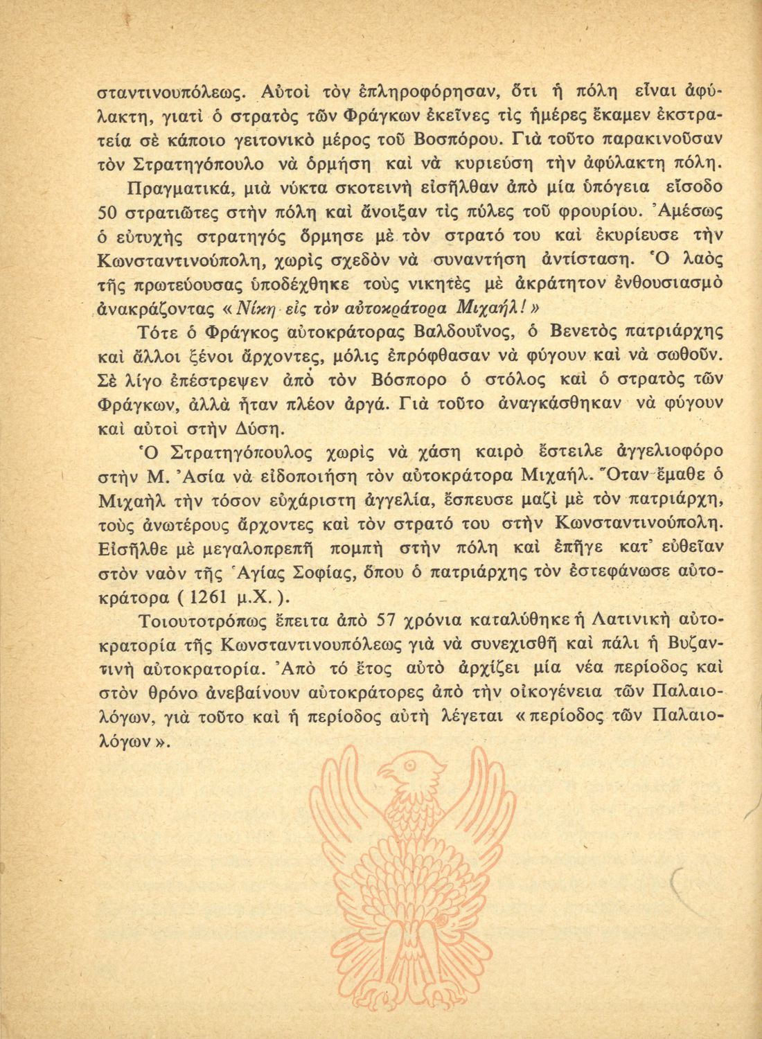 Σχολικό εγχειρίδιο για το μάθημα της Ιστορίας στους μαθητές του Δημοτικού. Αναφέρεται στα χρόνια της Βυζαντινής Αυτοκρατορίας μέχρι και την άλωση της Πόλης. Το τελευταίο κεφάλαιο αναφέρεται στα επιτεύγματα της