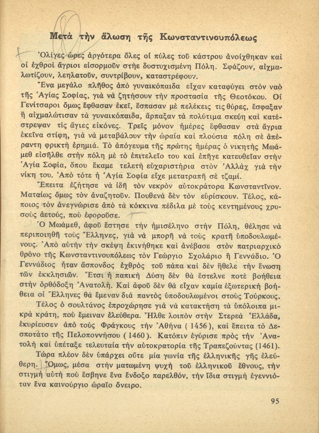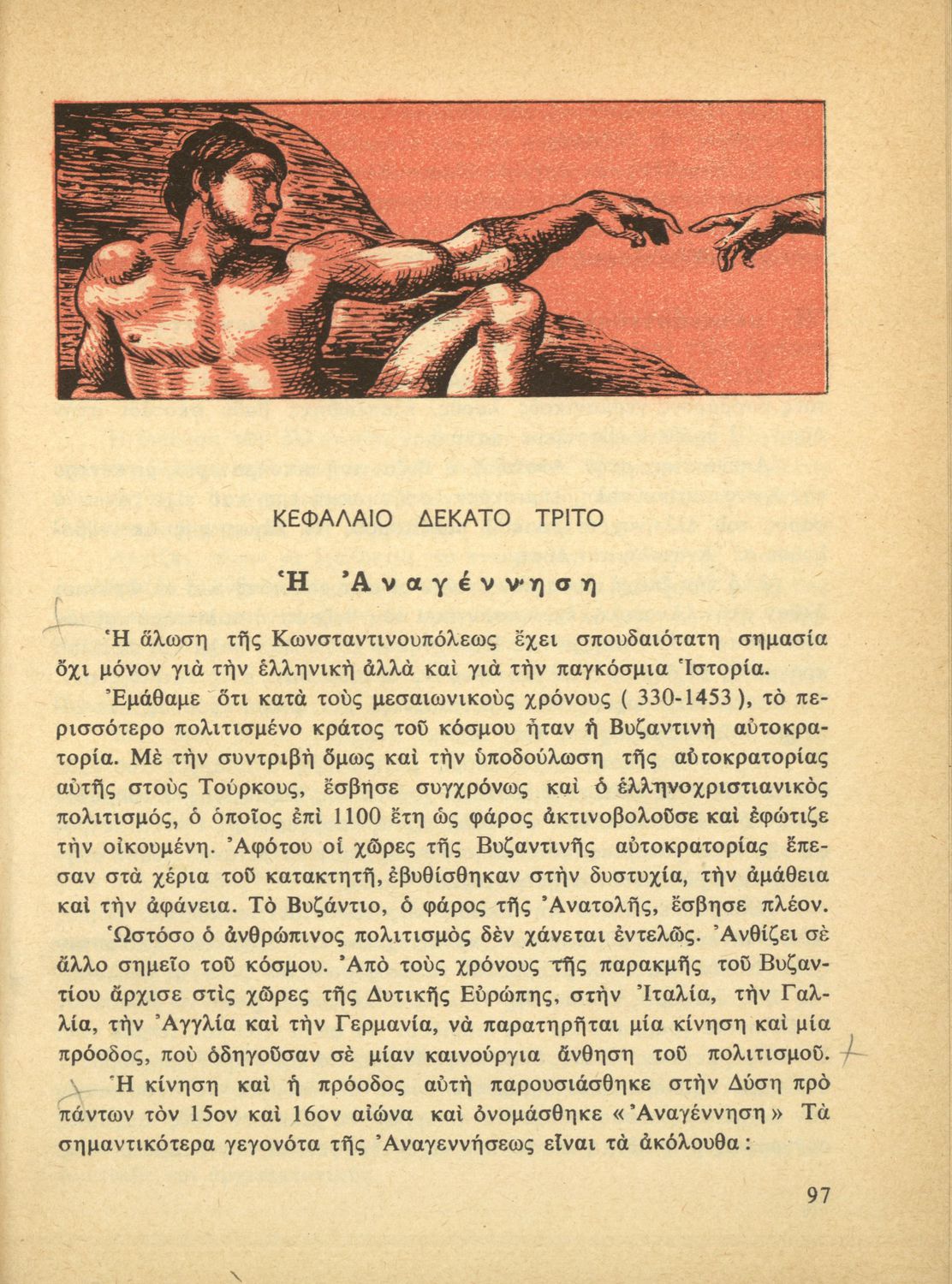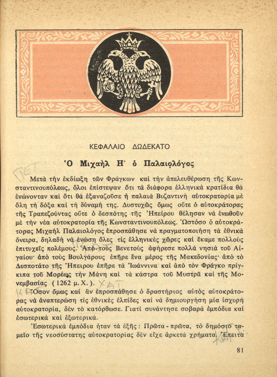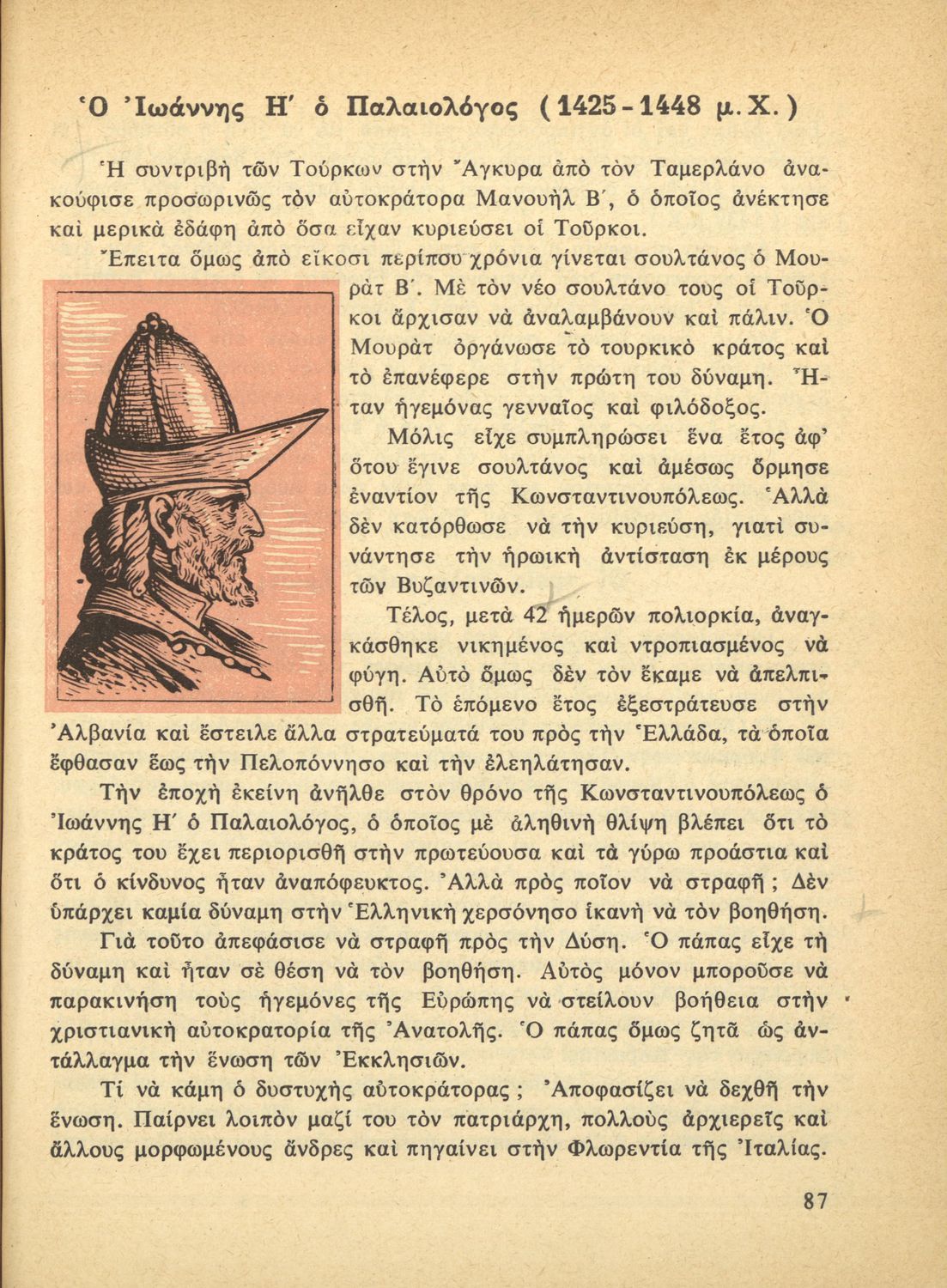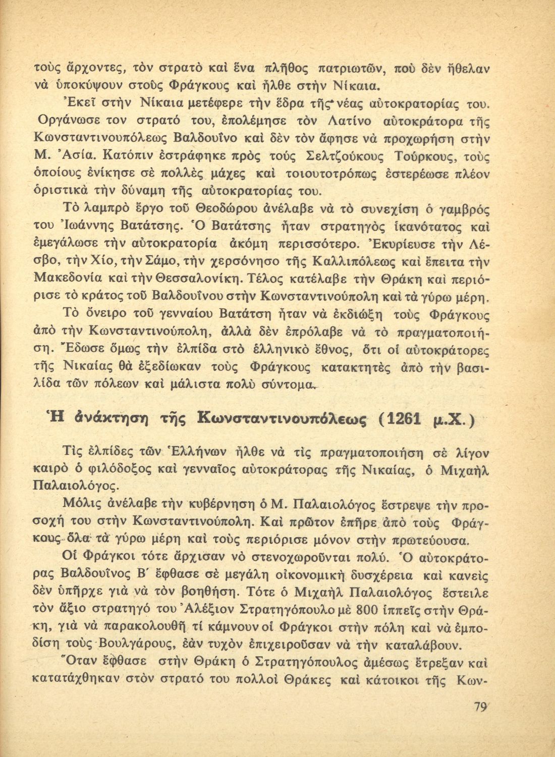 Σχολικό εγχειρίδιο για το μάθημα της Ιστορίας στους μαθητές του Δημοτικού. Αναφέρεται στα χρόνια της Βυζαντινής Αυτοκρατορίας μέχρι και την άλωση της Πόλης. Το τελευταίο κεφάλαιο αναφέρεται στα επιτεύγματα της