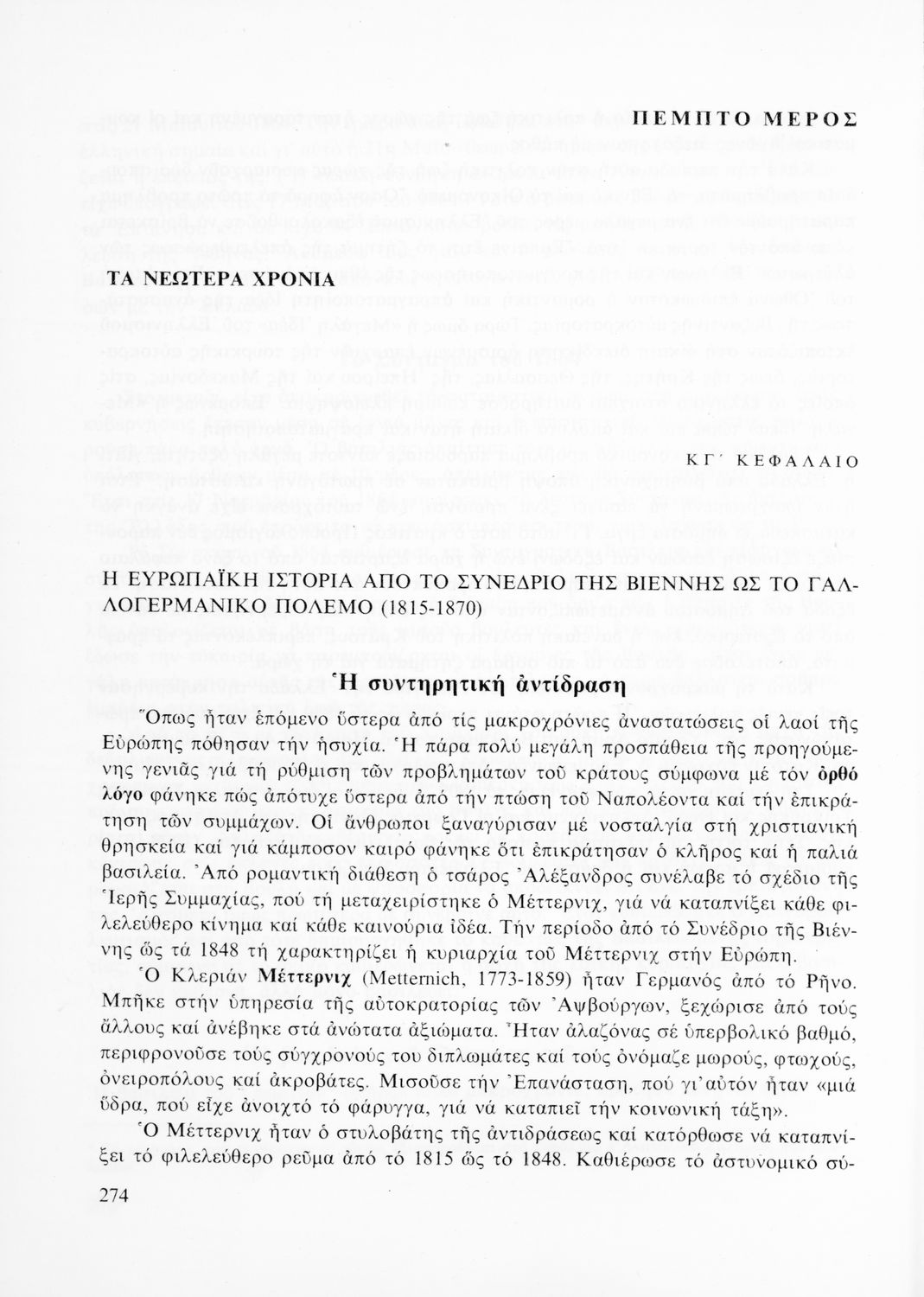 Σχολικό εγχειρίδιο Ιστορίας Γ΄ Λυκείου που αποτελεί μια συνοπτική επισκόπηση της ιστορία της Ευρώπης και καλύπτει το διάστημα από την Συνθήκη της Βεστφαλίας ως τον Α΄ Παγκόσμιο Πόλεμο.
