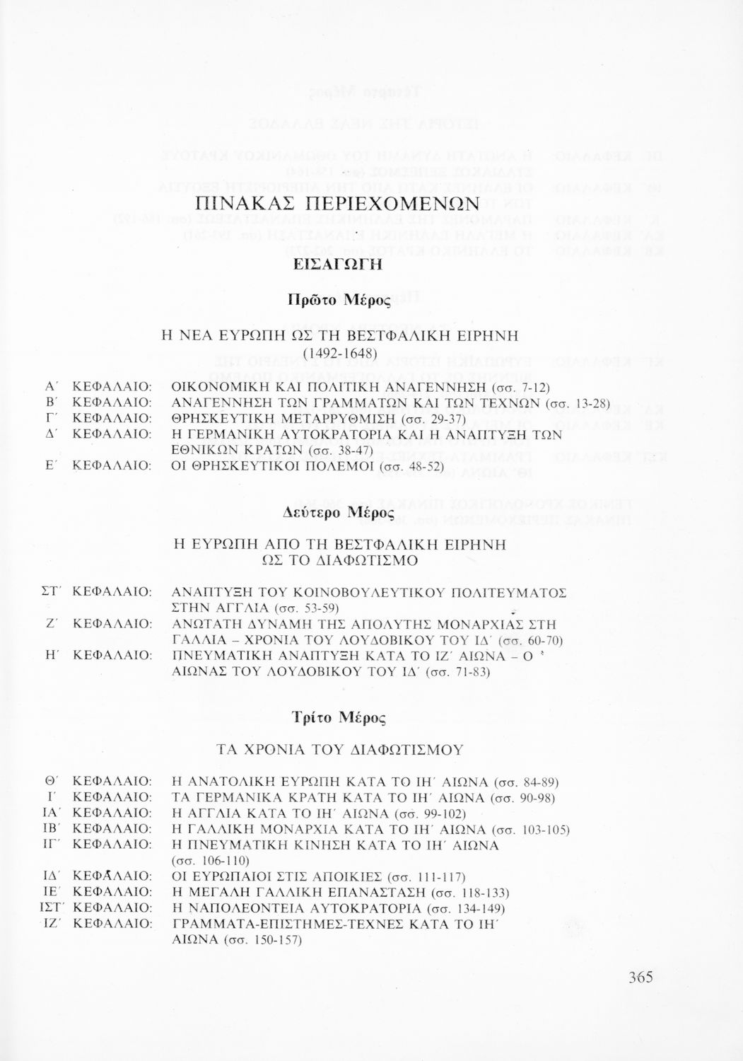 Σχολικό εγχειρίδιο Ιστορίας Γ΄ Λυκείου που αποτελεί μια συνοπτική επισκόπηση της ιστορία της Ευρώπης και καλύπτει το διάστημα από την Συνθήκη της Βεστφαλίας ως τον Α΄ Παγκόσμιο Πόλεμο.