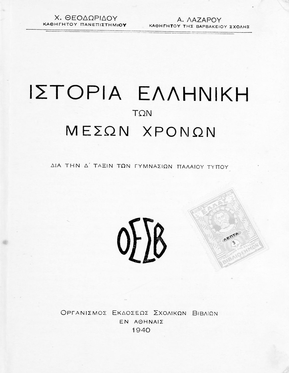 Εκδότης: Οργανισμός Εκδόσεως Σχολικών Βιβλίων