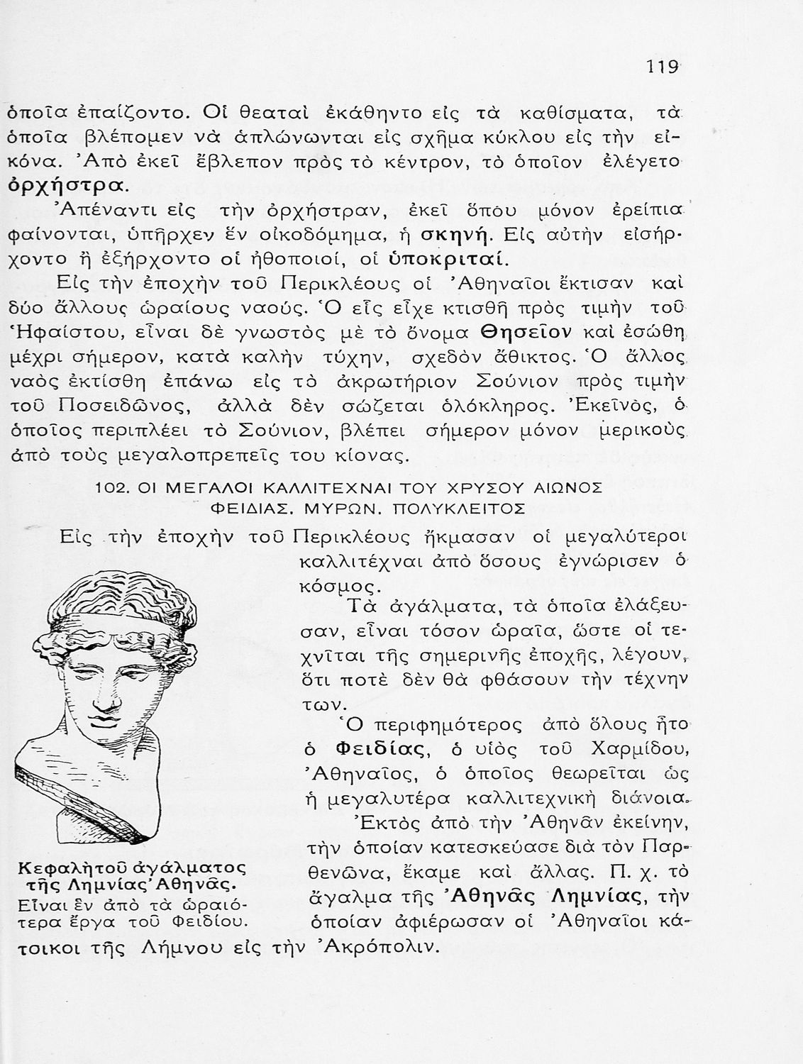 Σχολικό εγχειρίδιο Ιστορίας Α΄ Ελληνικού και Παρθεναγωγείου που καλύπτει την περίοδο από τους μυθικούς και ηρωικούς χρόνους μέχρι την μάχη της Μαντινείας και τον θάνατο του Επαμεινώνδα.