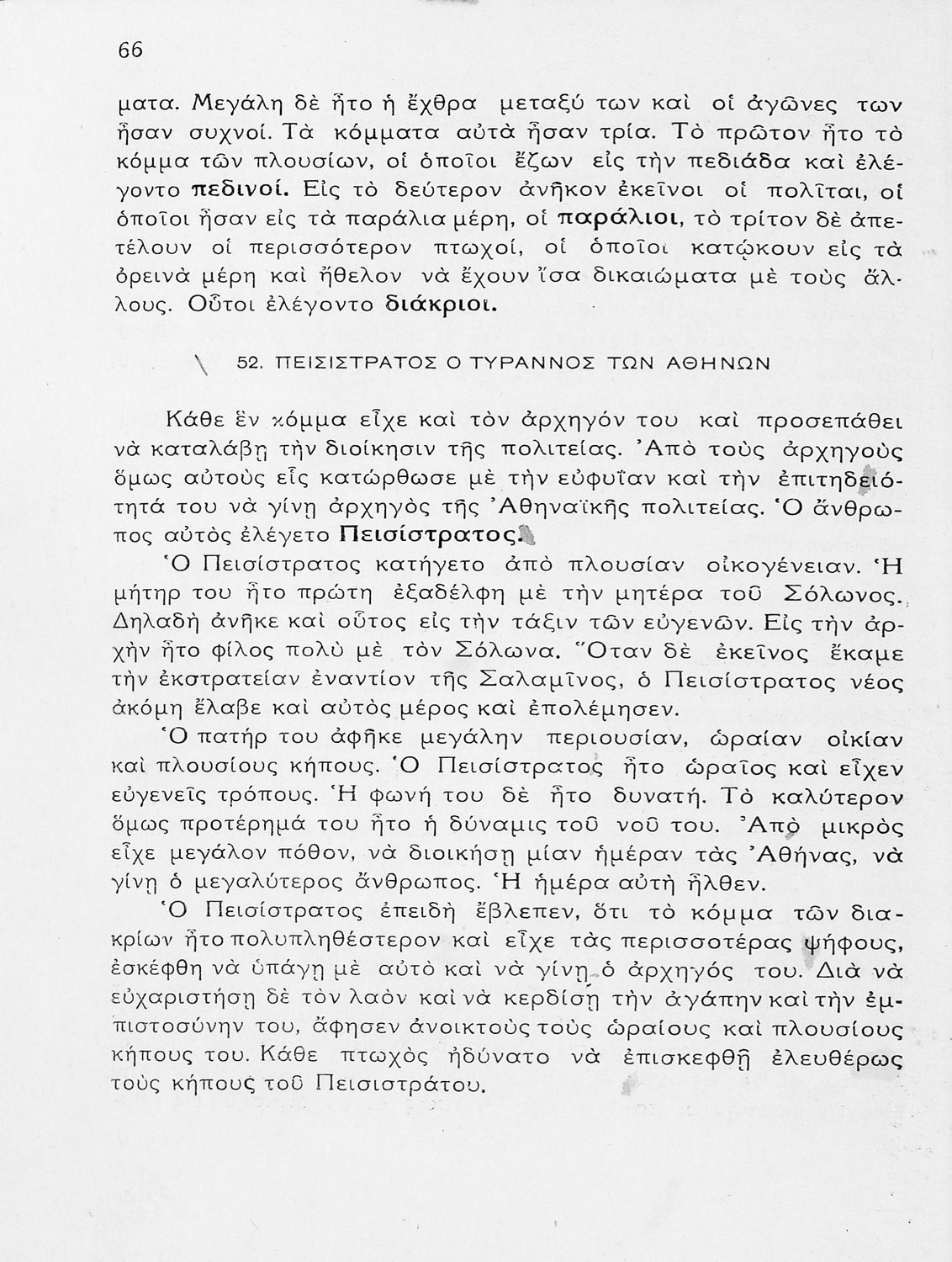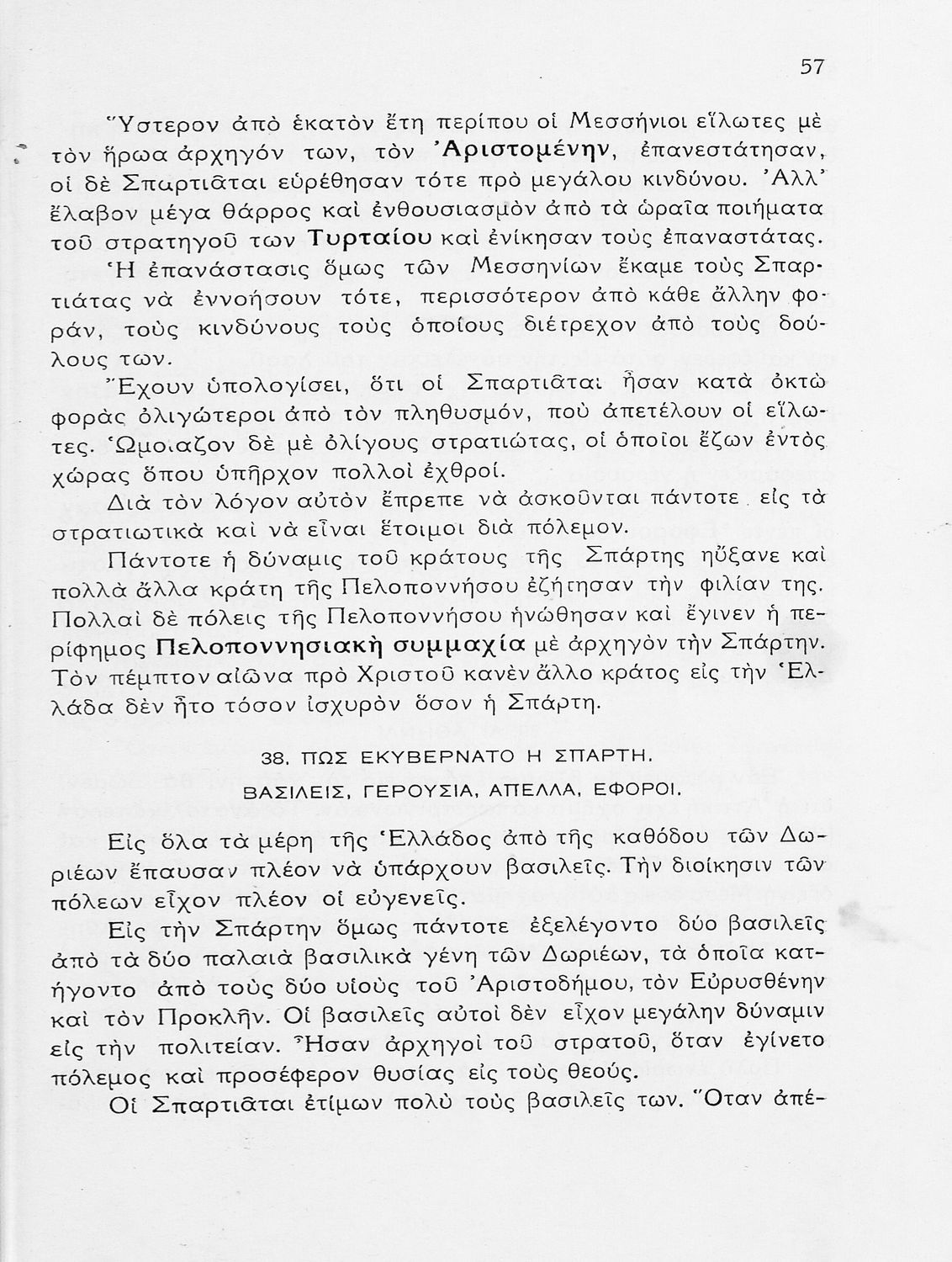 Σχολικό εγχειρίδιο Ιστορίας Α΄ Ελληνικού και Παρθεναγωγείου που καλύπτει την περίοδο από τους μυθικούς και ηρωικούς χρόνους μέχρι την μάχη της Μαντινείας και τον θάνατο του Επαμεινώνδα.