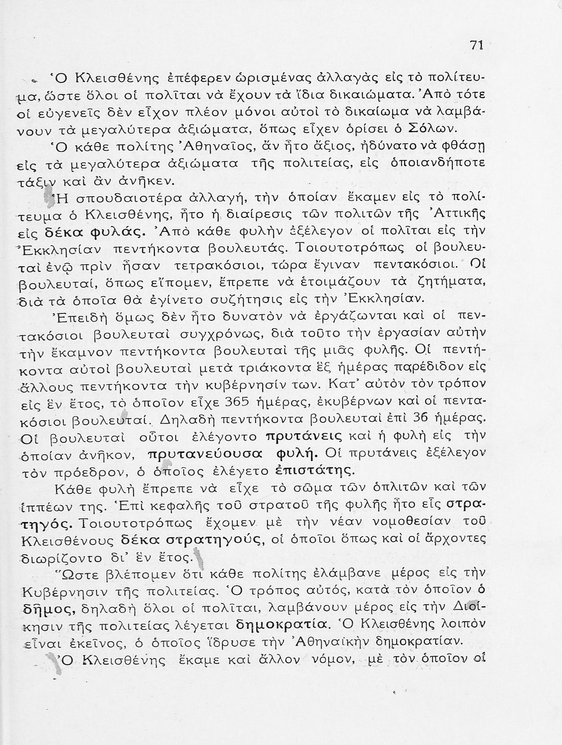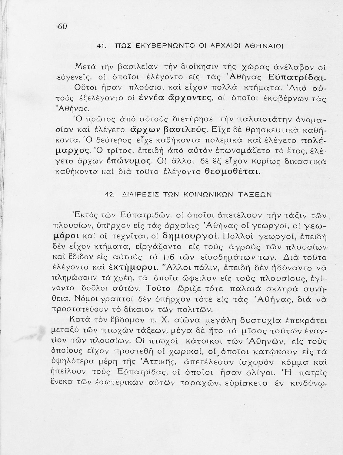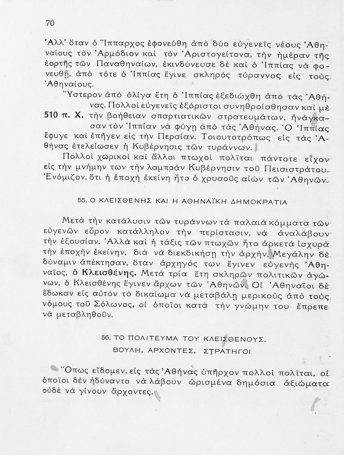 Σχολικό εγχειρίδιο Ιστορίας Α΄ Γυμνασίου που καλύπτει την περίοδο από τους προϊστορικούς χρόνους ως τις μεταρρυθμίσεις του Κλεισθένη. Περιέχει και εκτενή αναφορά στην ανάπτυξη των γραμμάτων, των τεχνών και του