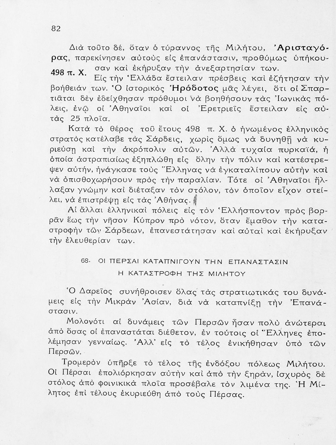 Σχολικό εγχειρίδιο Ιστορίας Α΄ Ελληνικού και Παρθεναγωγείου που καλύπτει την περίοδο από τους μυθικούς και ηρωικούς χρόνους μέχρι την μάχη της Μαντινείας και τον θάνατο του Επαμεινώνδα.