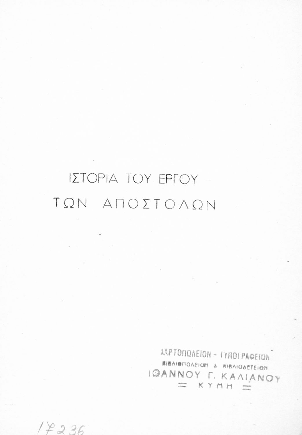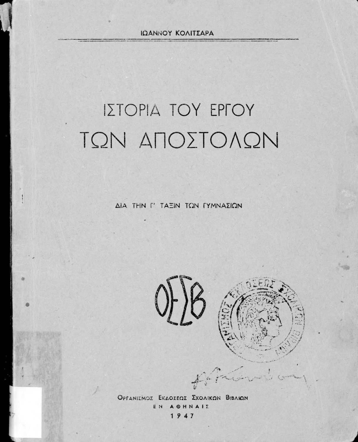 Τίτλος: Ιστορία του έργου των Αποστόλων δια την Γ΄ τάξιν των Γυμνασίων
