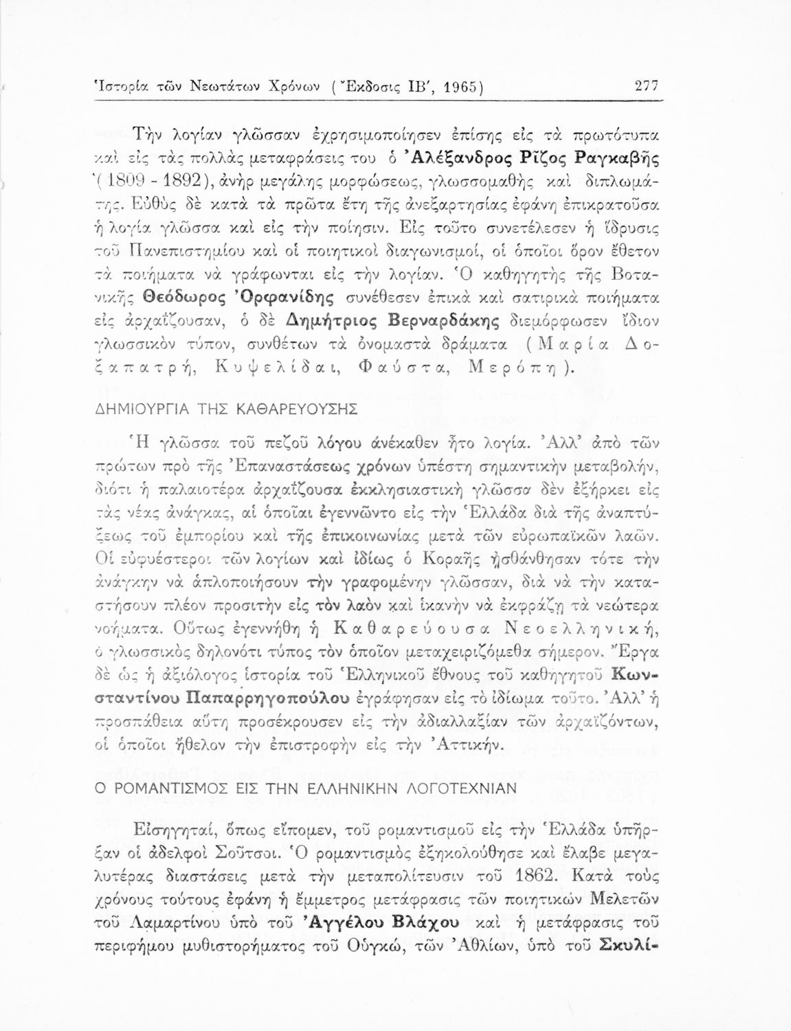 Σχολικό εγχειρίδιο Ιστορίας Β΄ Γυμνασίου που καλύπτει την περίοδο από την κατάληψη της Ελλάδας από τους Ρωμαίους ως την πτώση της Βυζαντινής Αυτοκρατορίας. Γίνεται ιδιαίτερη μνεία στο χριστιανικό και ελληνικό στοιχείο του Βυζαντίου. Προτείνει μια υλιστική ανάγνωση της Ιστορίας την οποία διαβάζει από την οπτική των κοινωνικών συγκρούσεων.