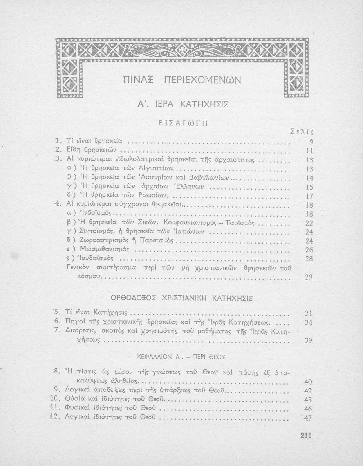 Βαθμίδα εκπαίδευσης: Δευτεροβάθμια Τάξη: Ε' Γυμνασίου Μάθημα: Θρησκευτικά Γλώσσα: Καθαρεύουσα Παρουσίαση περιεχομένου: Σχολικό εγχειρίδιο Θρησκευτικών Ε' Γυμνασίου που αναλύει την έννοια της κατήχησης στις διάφορες θρησκείες με έμφαση στο ορθόδοξο χριστιανικό δόγμα, το οποίο εξετάζει από δογματική και ηθική σκοπιά. Περιλαμβάνει και στοιχεία λειτουργικής της Ορθόδοξης Εκκλησίας. |